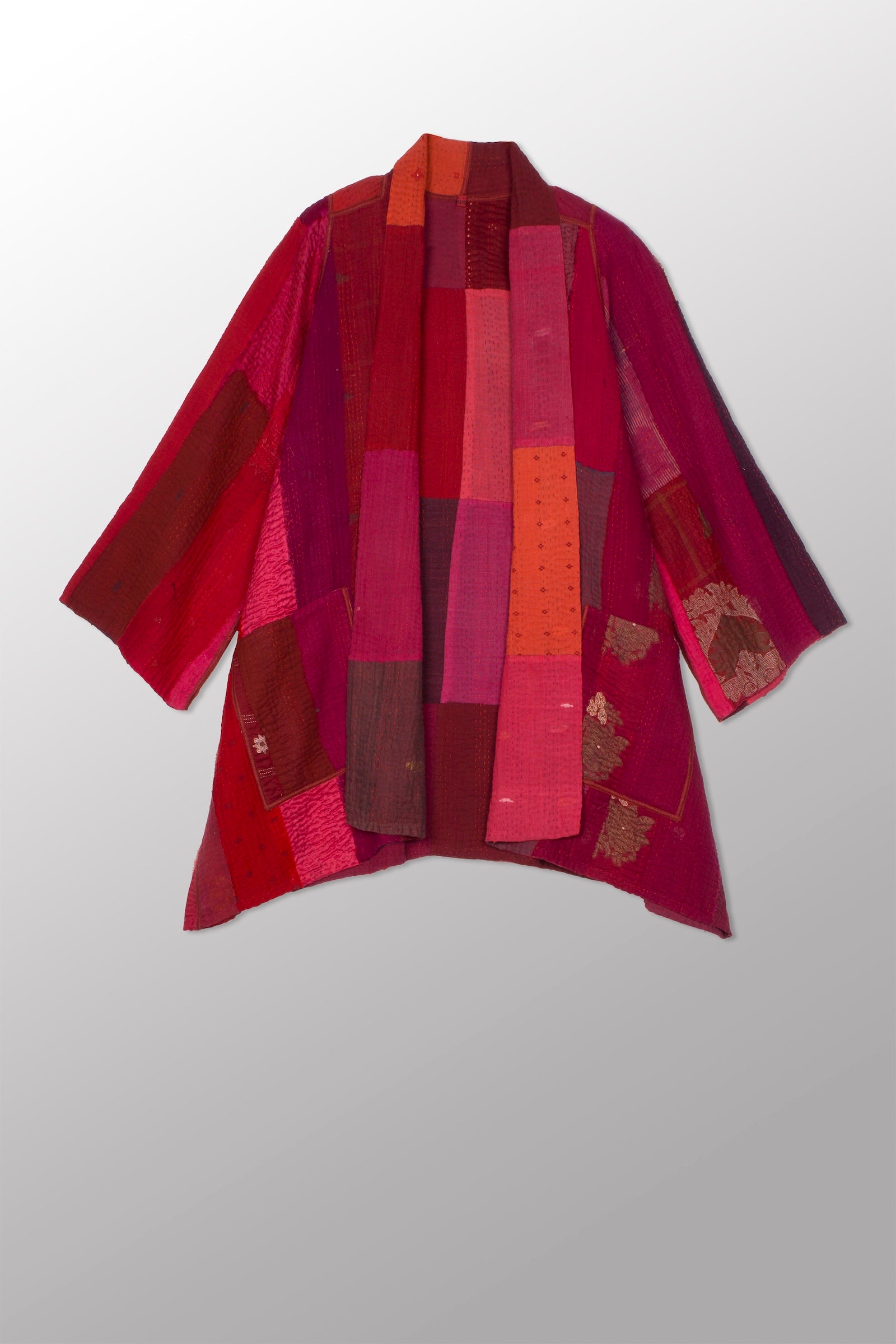 4 Layer Vintage Saris with Hand Stitches on Entire Garment - Reversible