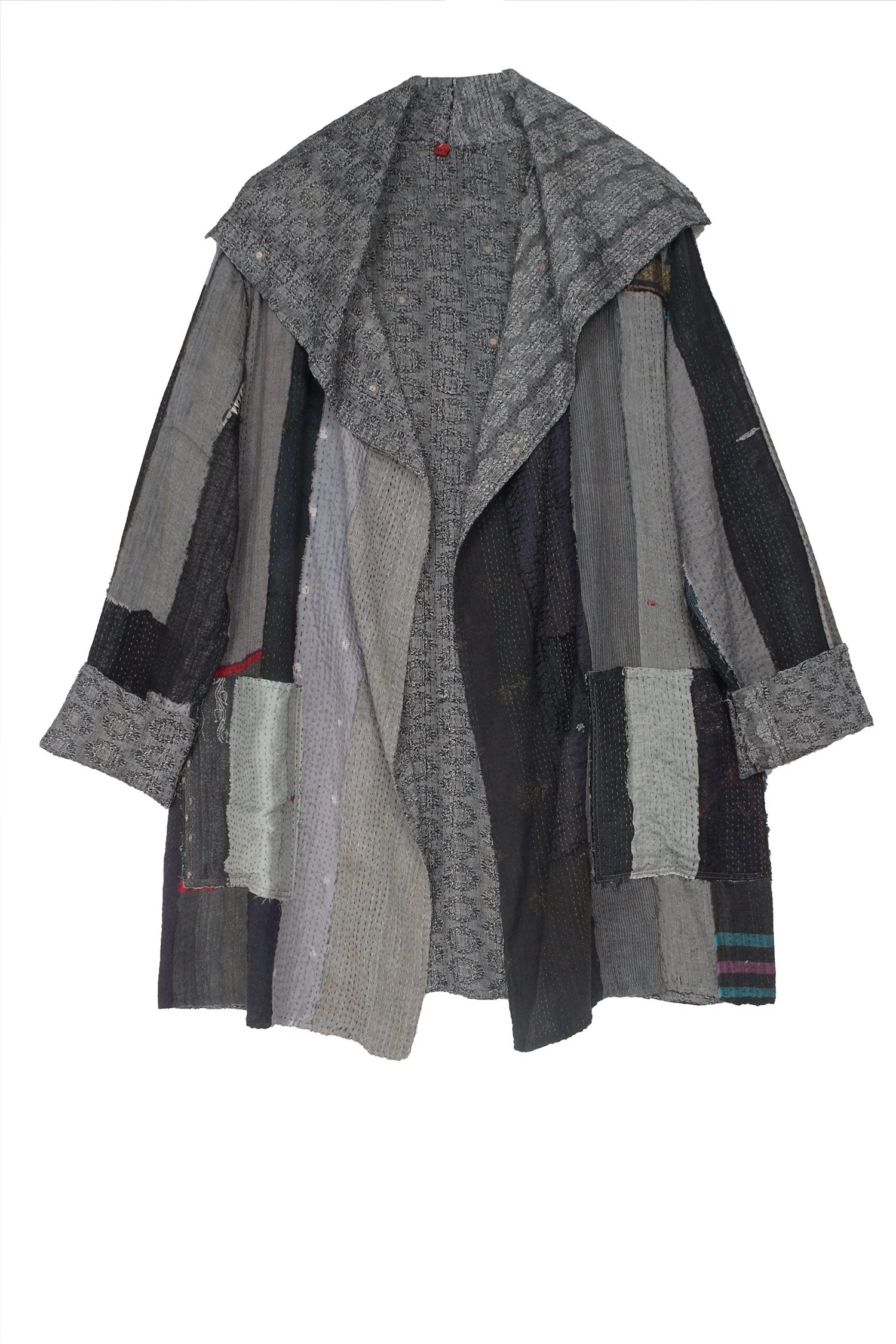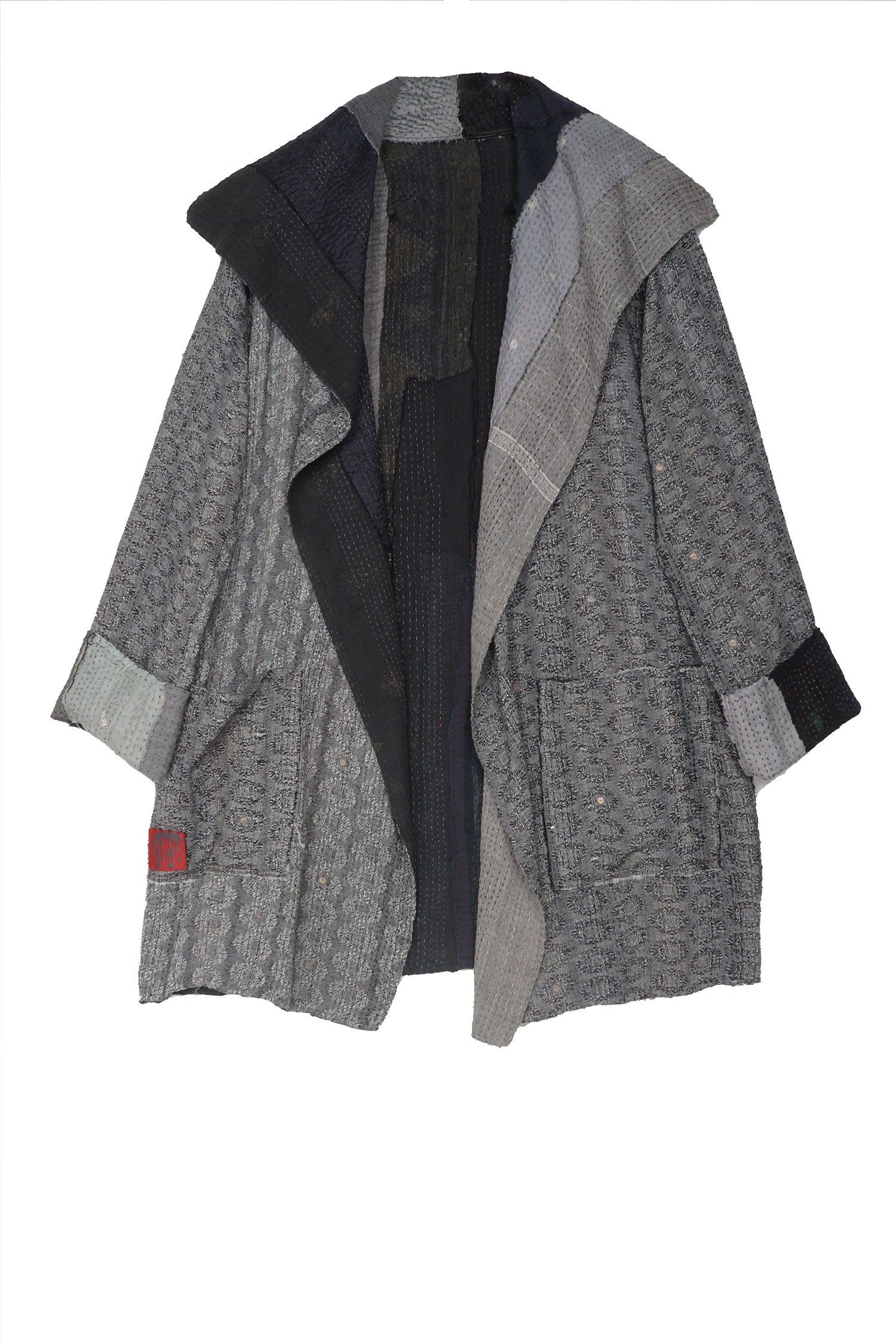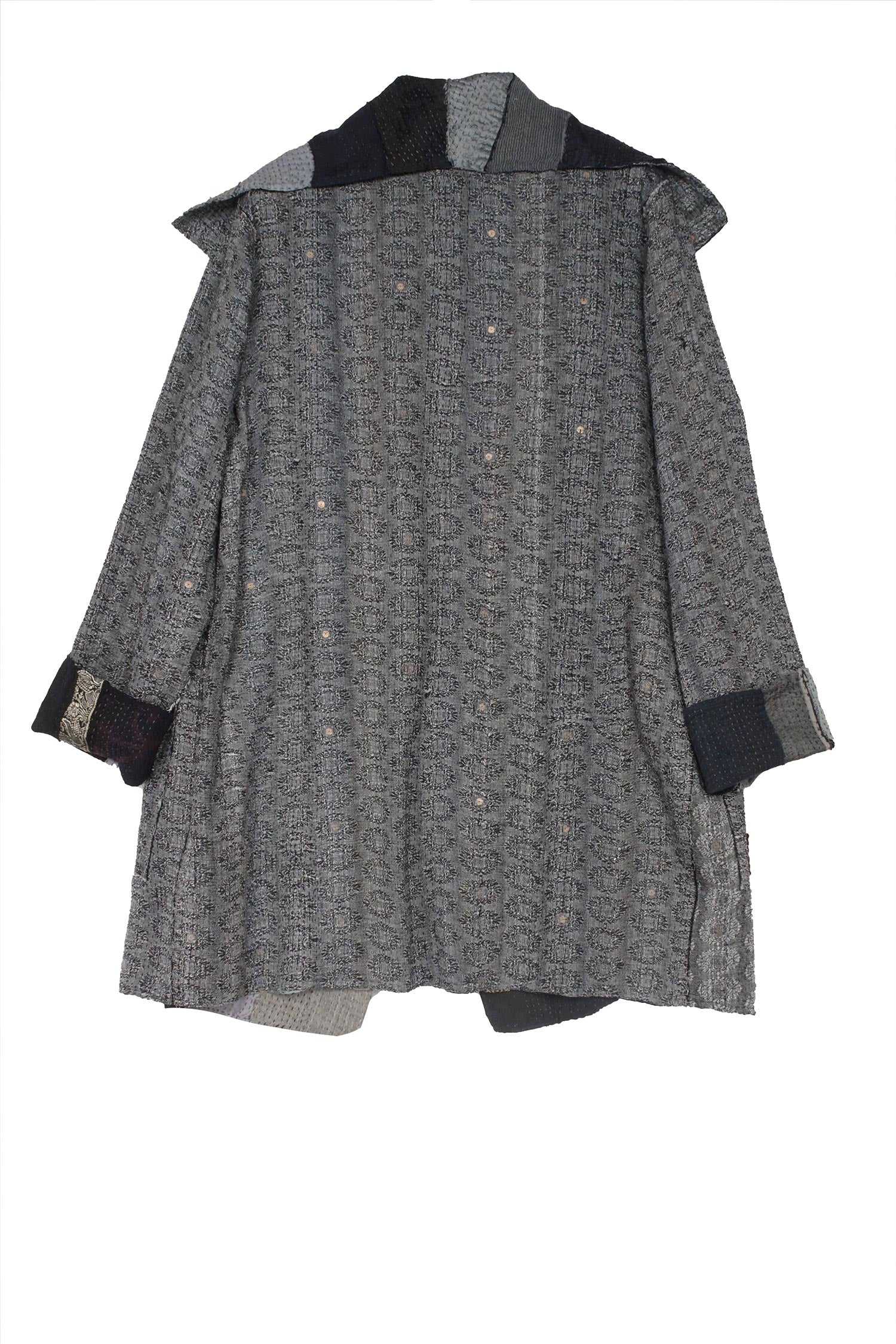 STRIPE FRAYED & HANDWOVEN KANTHA POCKET JKT - ft2002-blk -