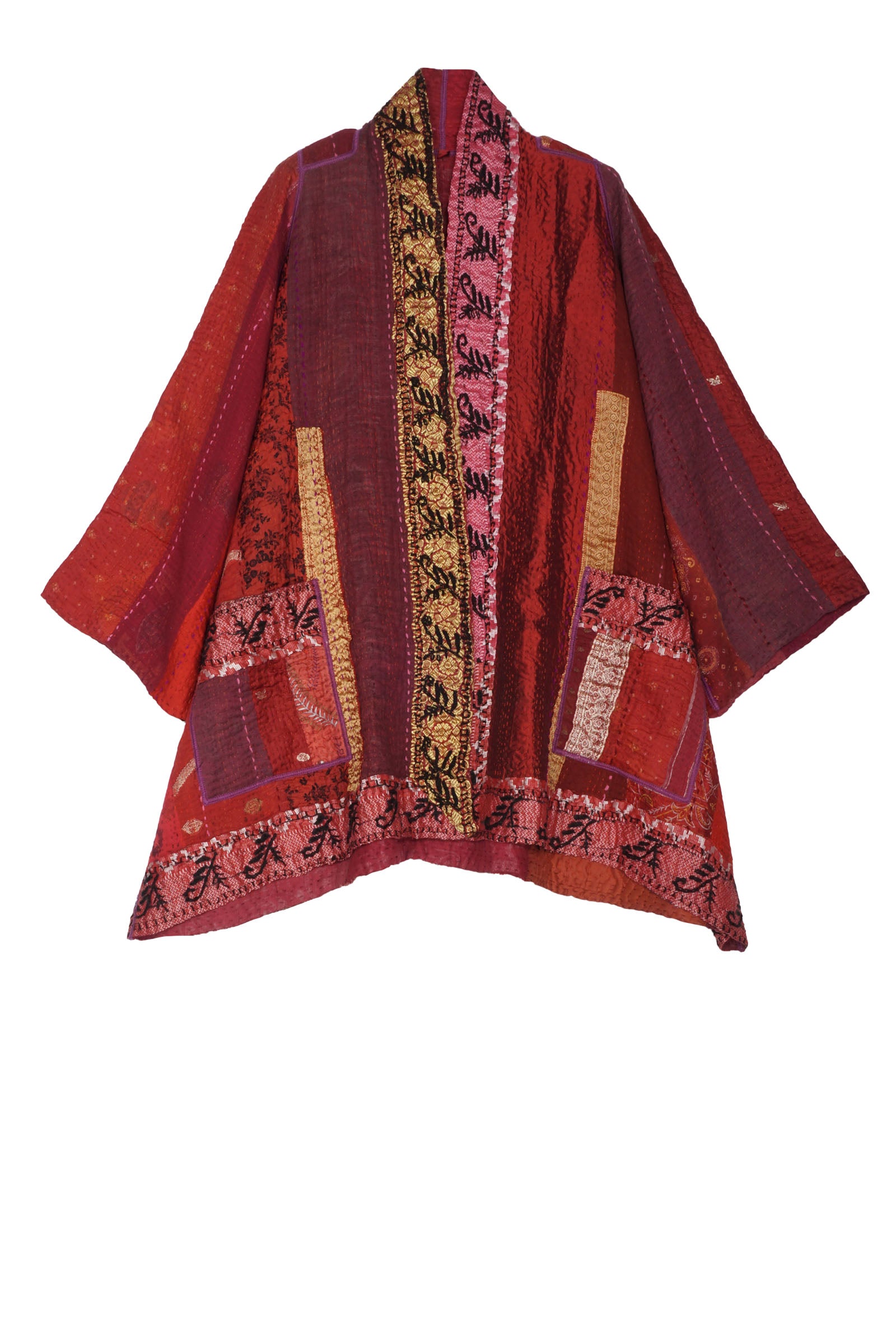 4 Layer Vintage Saris with Hand Stitches on Entire Garment - Reversible