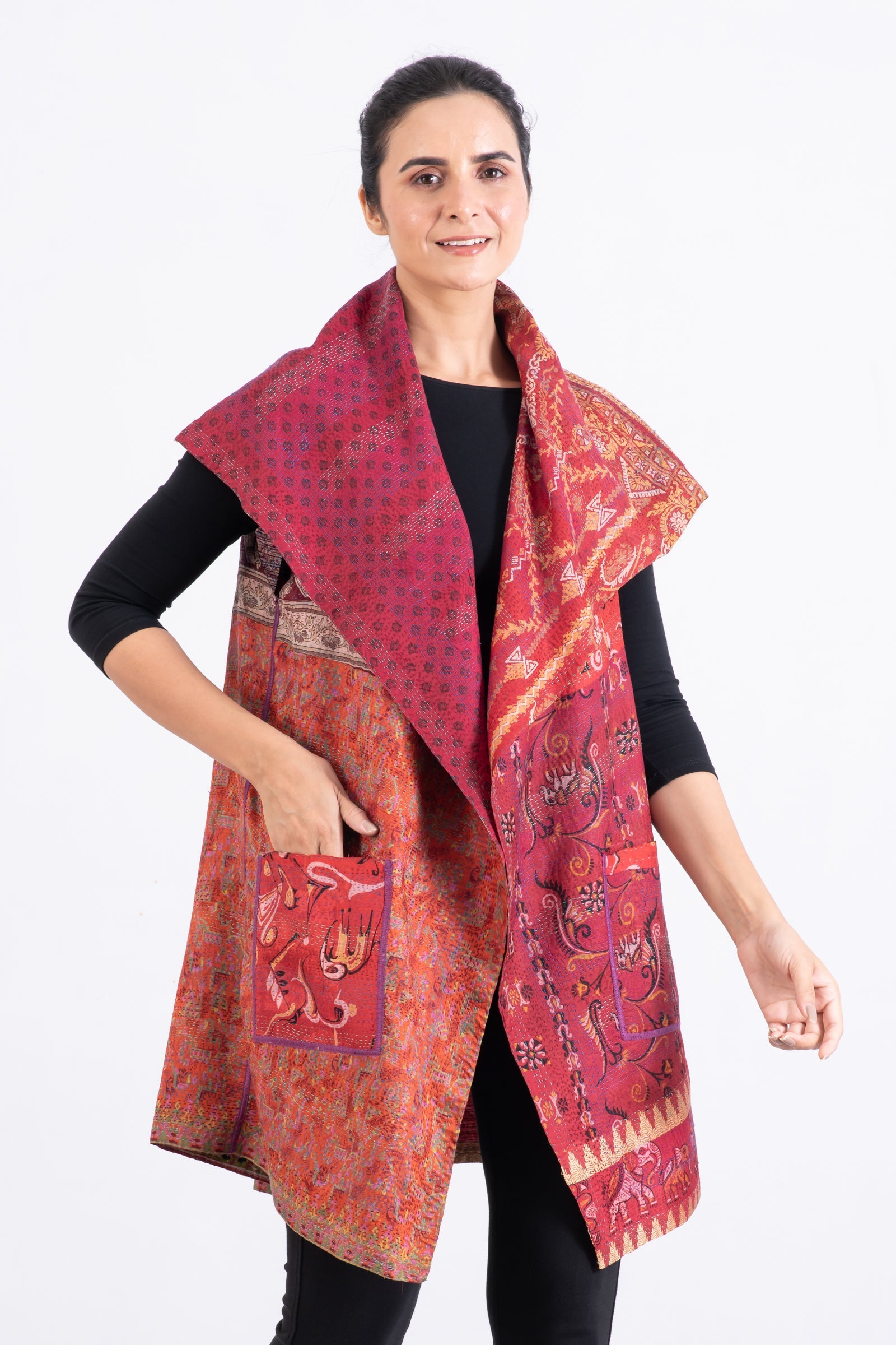 VINTAGE SILK KANTHA CIRCULAR VEST - sv2201-0090a -