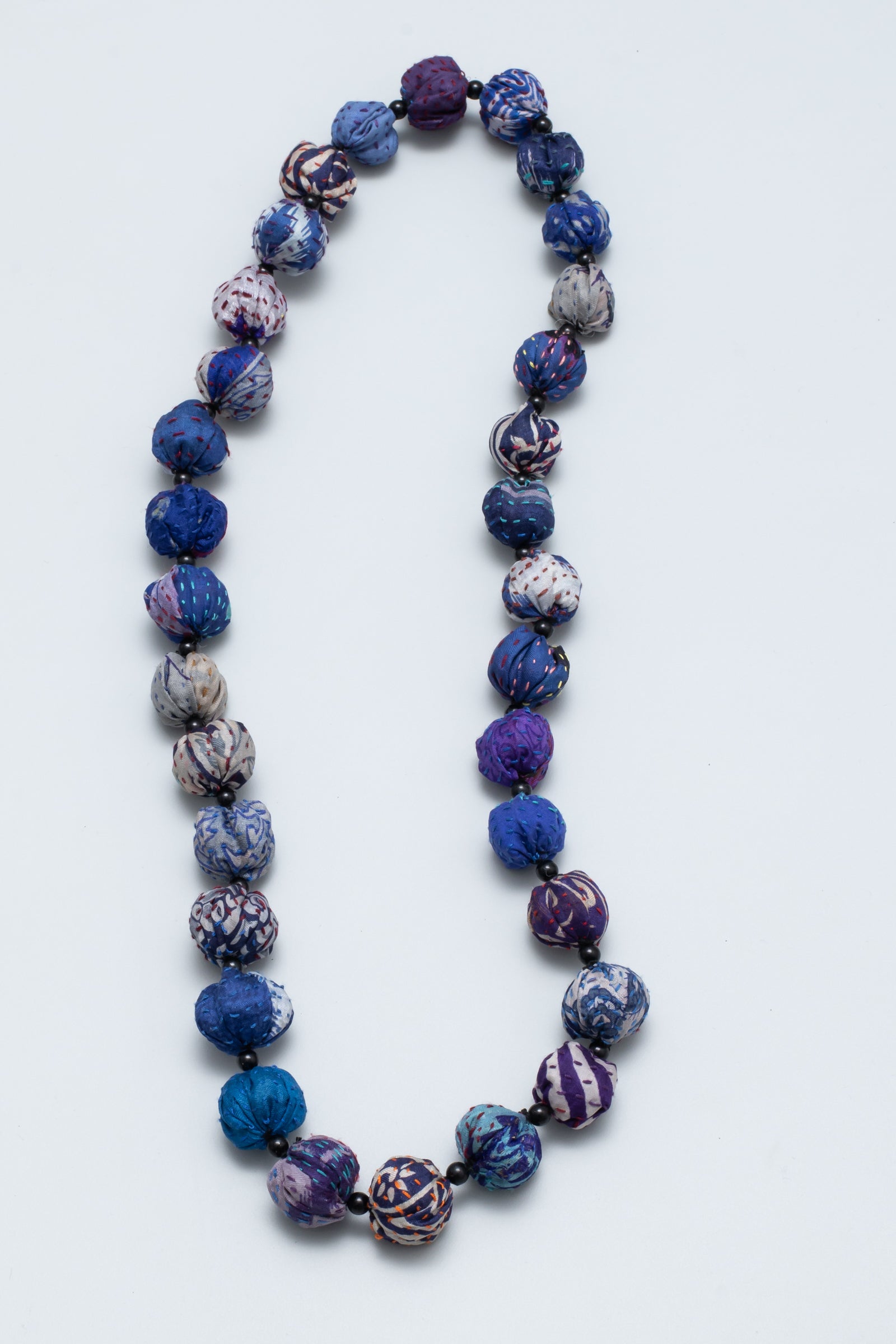 VINTAGE SILK KANTHA SMALL NUTS MEDIUM NECKLACE - sv2705-blu -