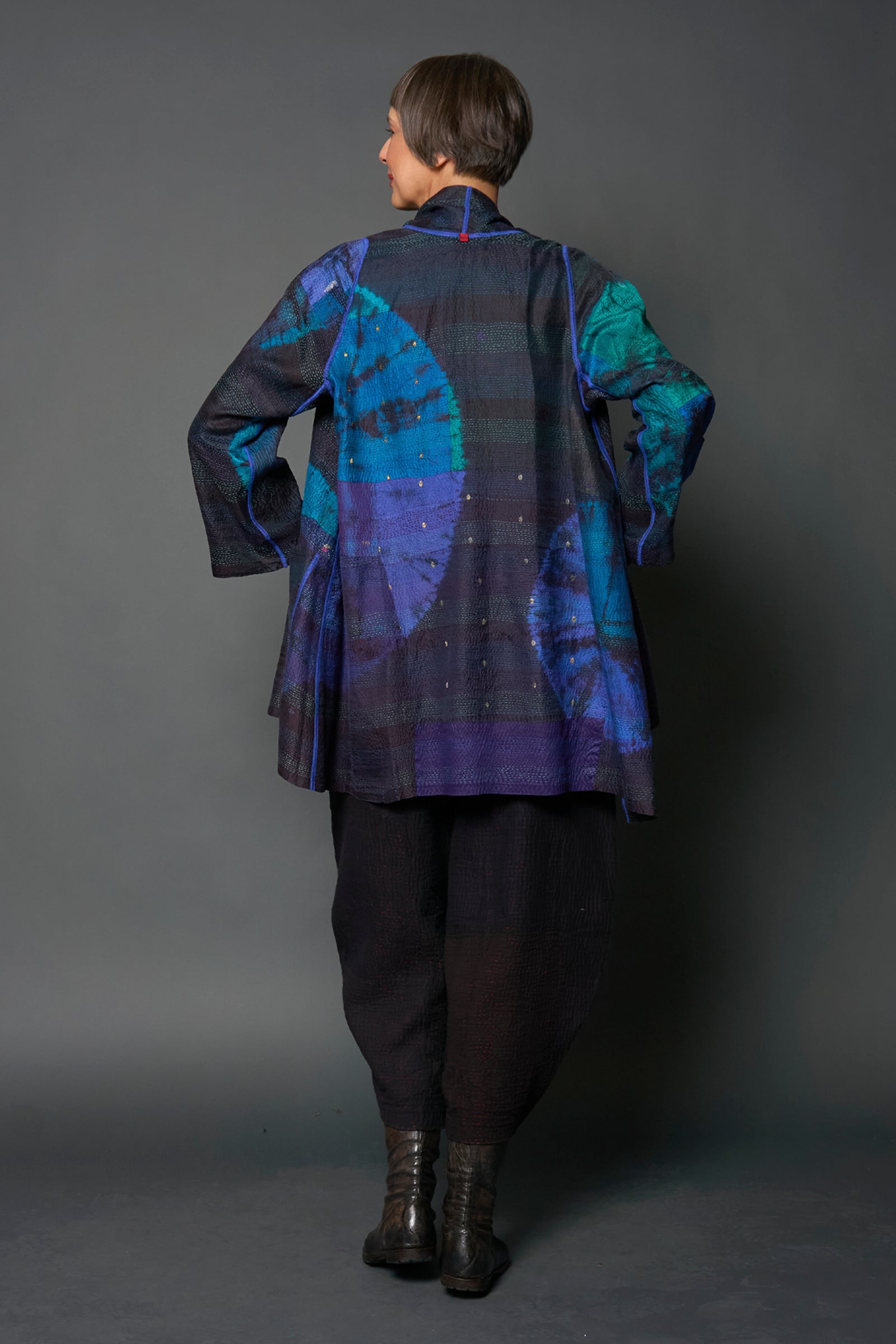TIE DYE CIRCLE SHIBORI KANTHA A-LINE JACKET - td2003-blu -