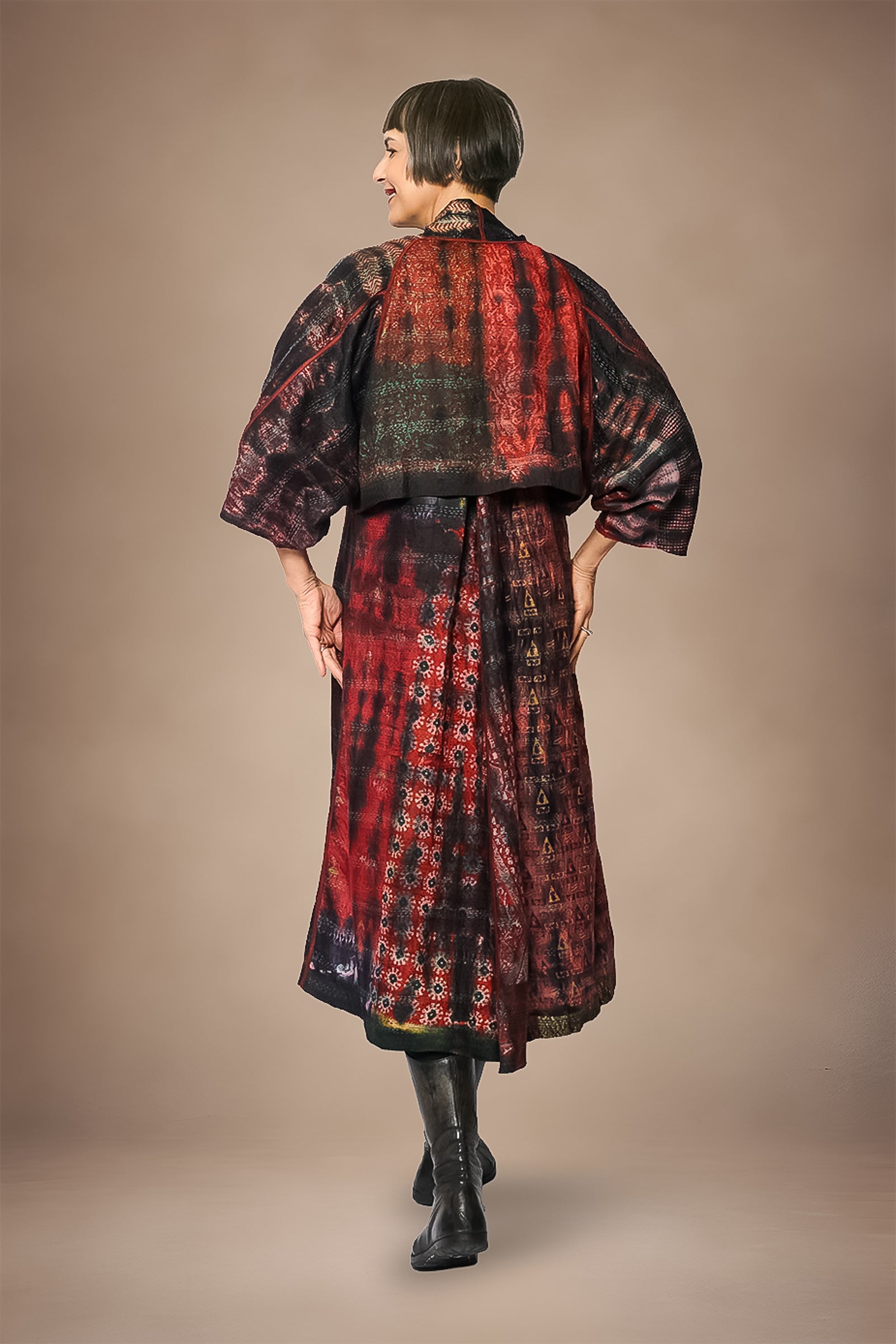 2 Layer Vintage Saris with Hand Stitches on Entire Garment - Reversible