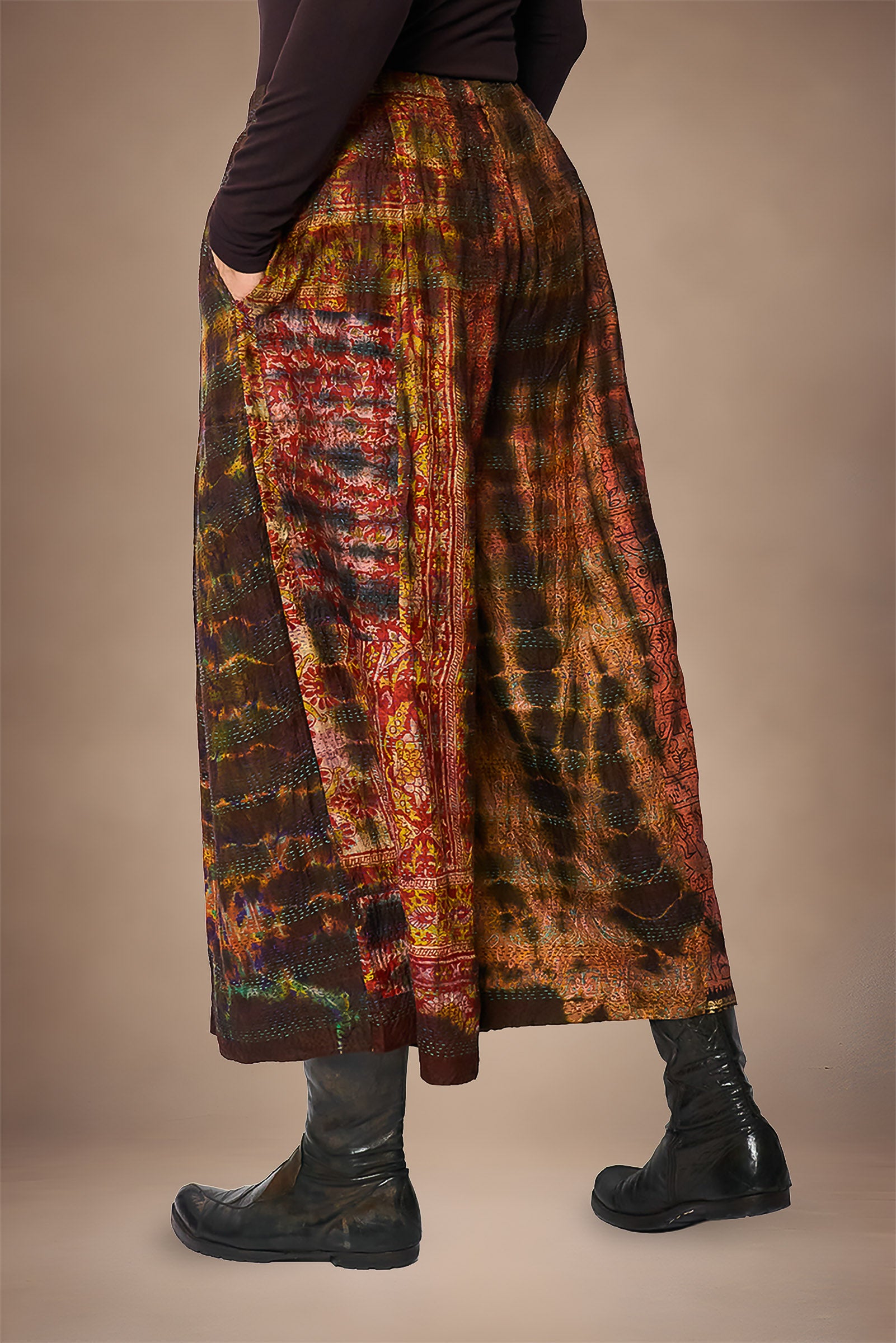 TIE DYE VINTAGE SILK KANTHA WIDE LEG LANTERN PANTS - st-sv2646-brn -