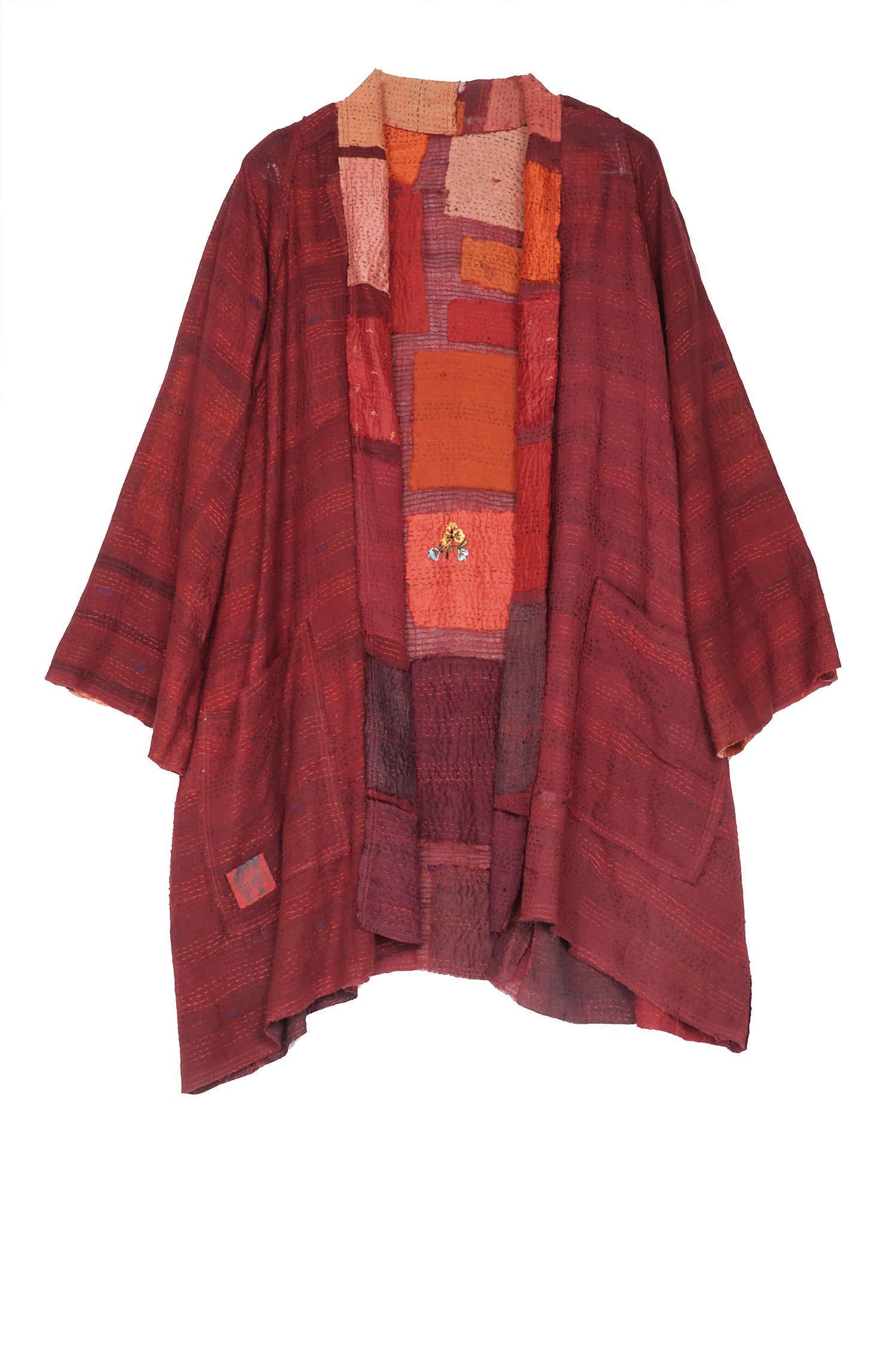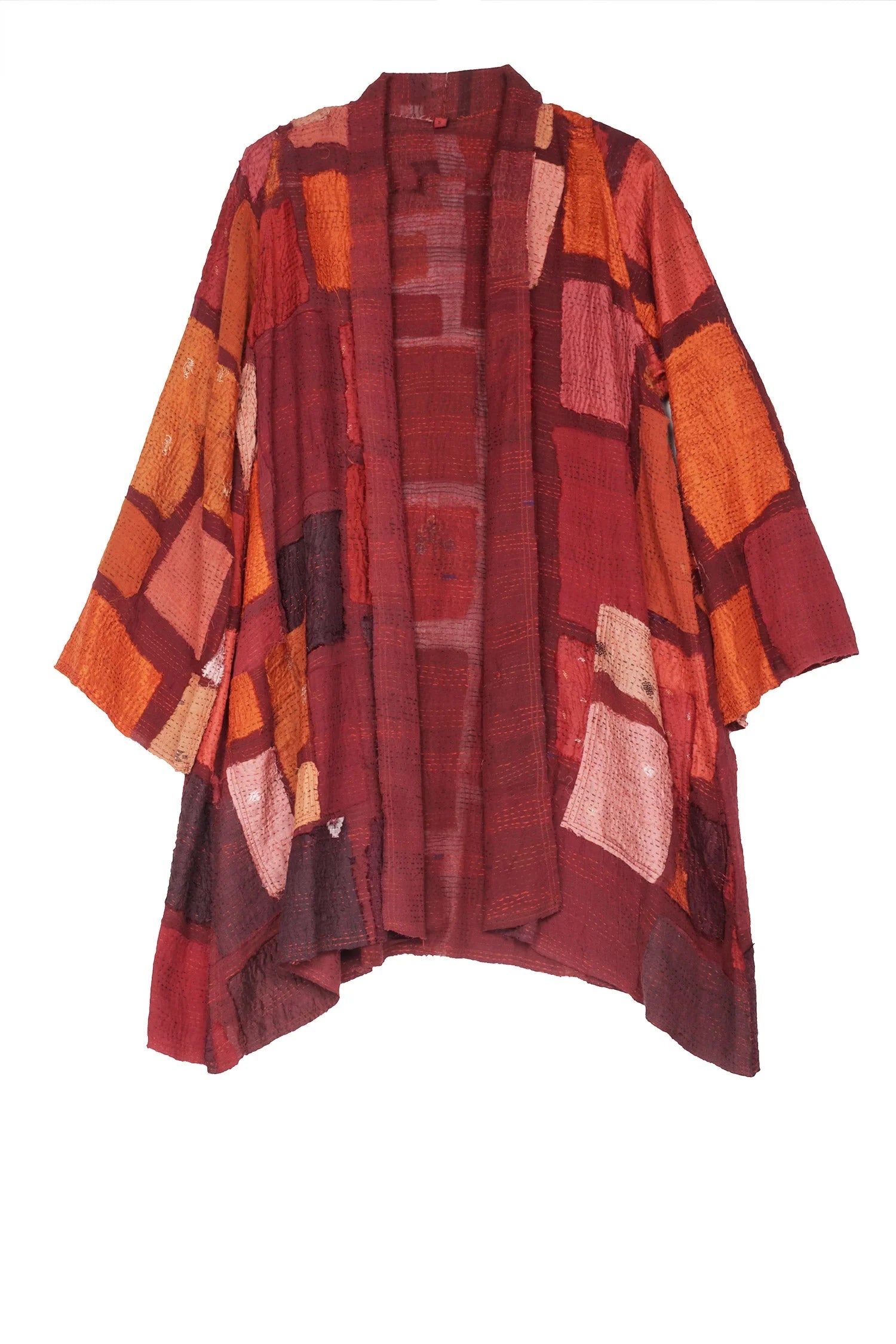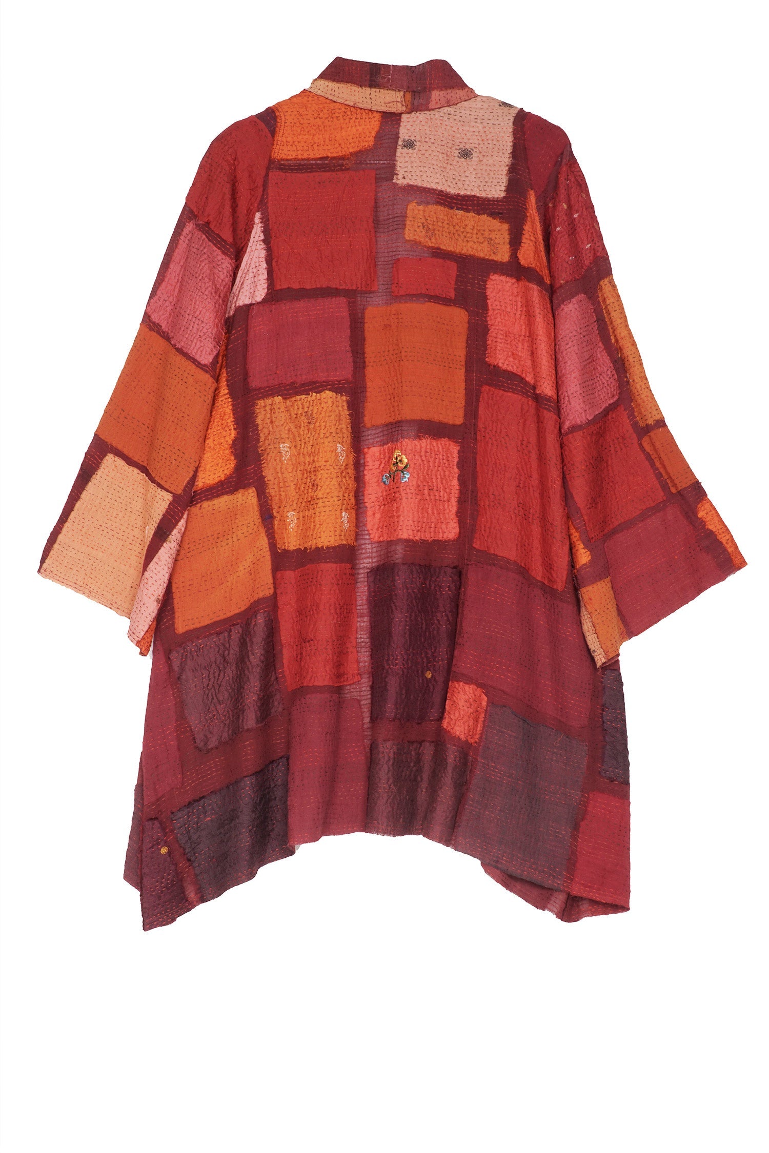 TONAL TILE PATCH KANTHA A-LINE JKT - tt2003-red -
