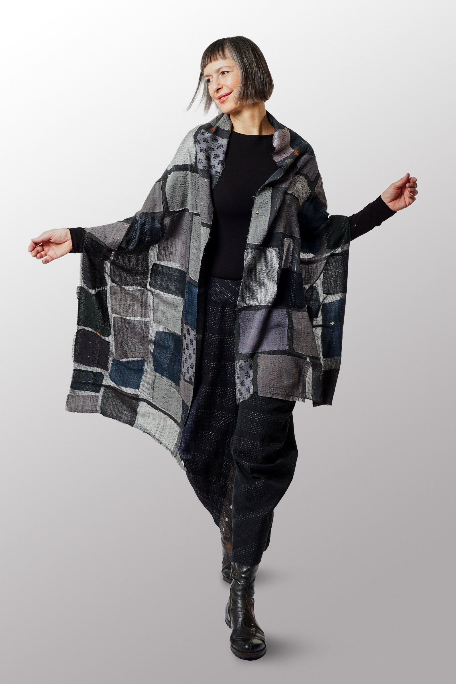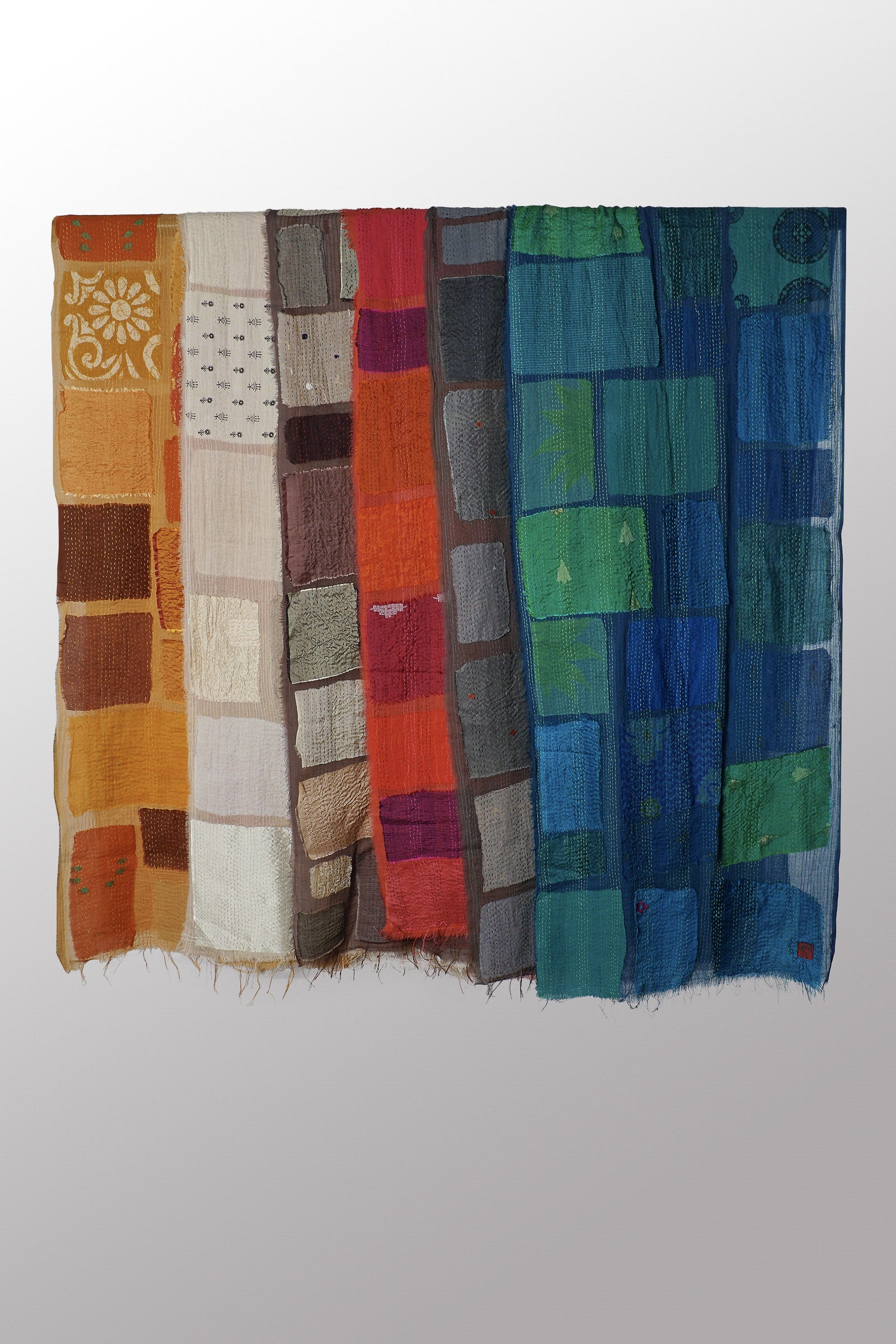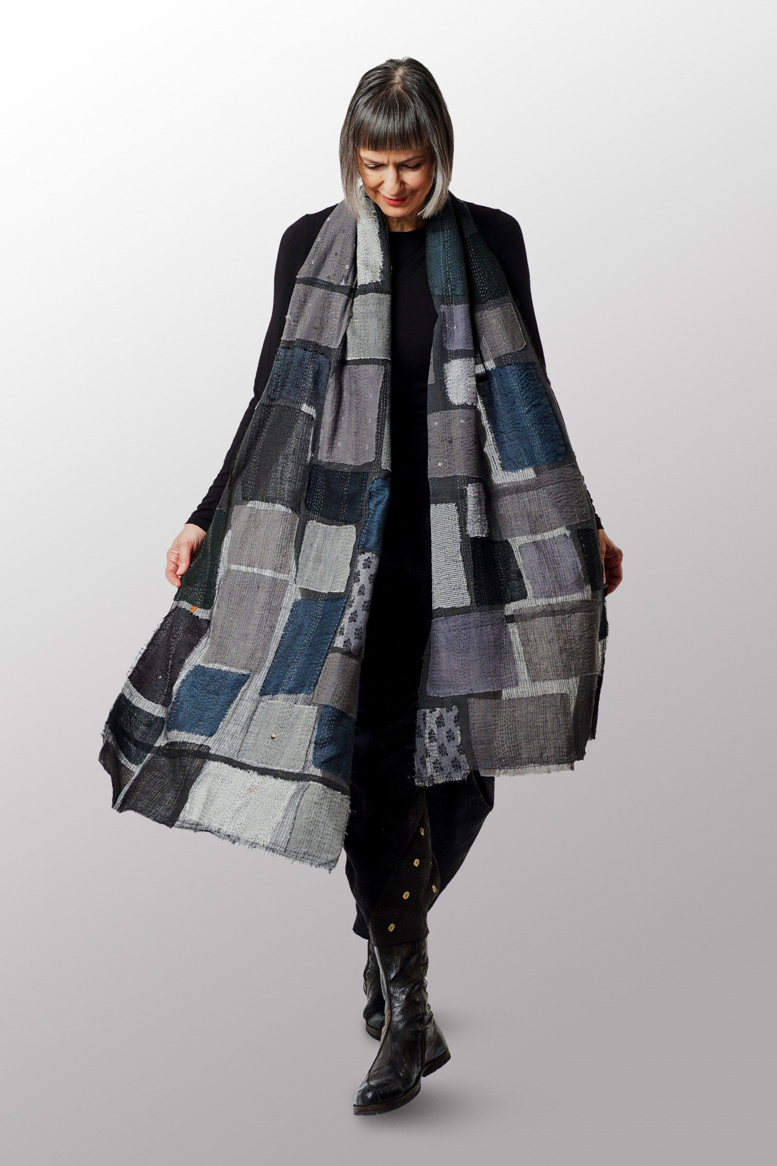 TONAL TILE PATCH KANTHA SCARF STANDARD - tt2801-gry -