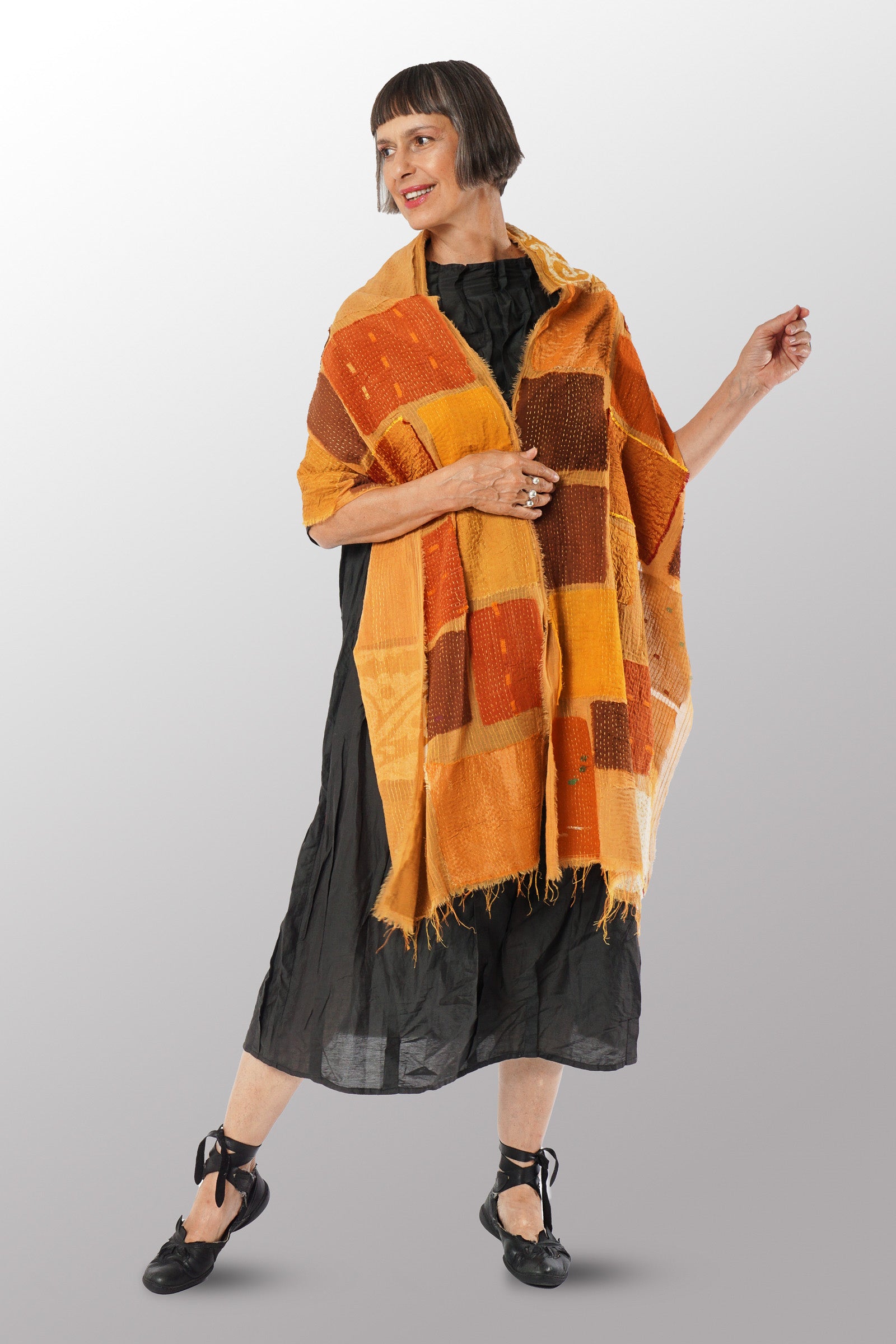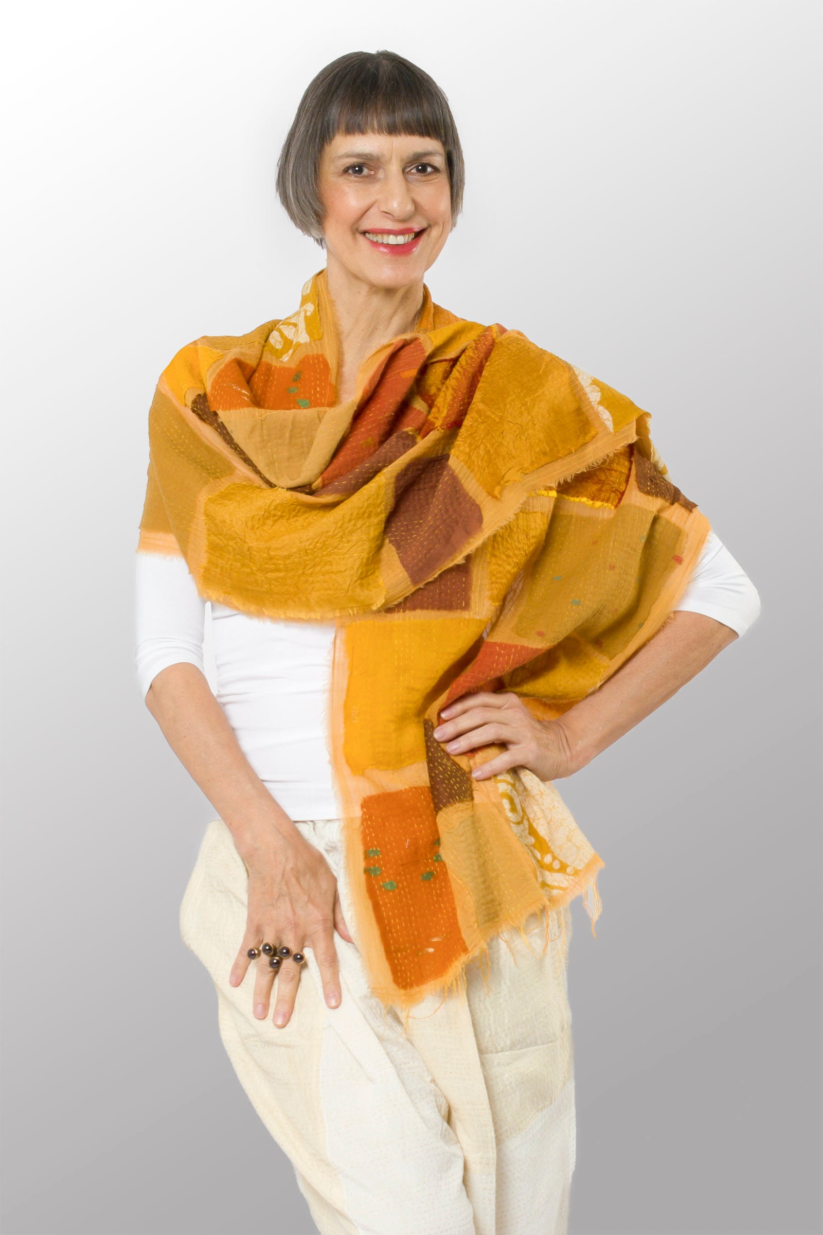 TONAL TILE PATCH KANTHA SCARF STANDARD - tt2801-ylw -