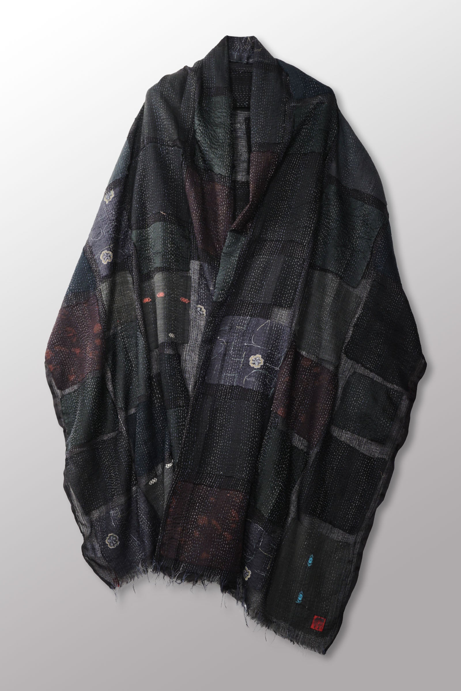 TONAL TILE PATCH KANTHA SHAWL MEDIUM - tt2802-blk -