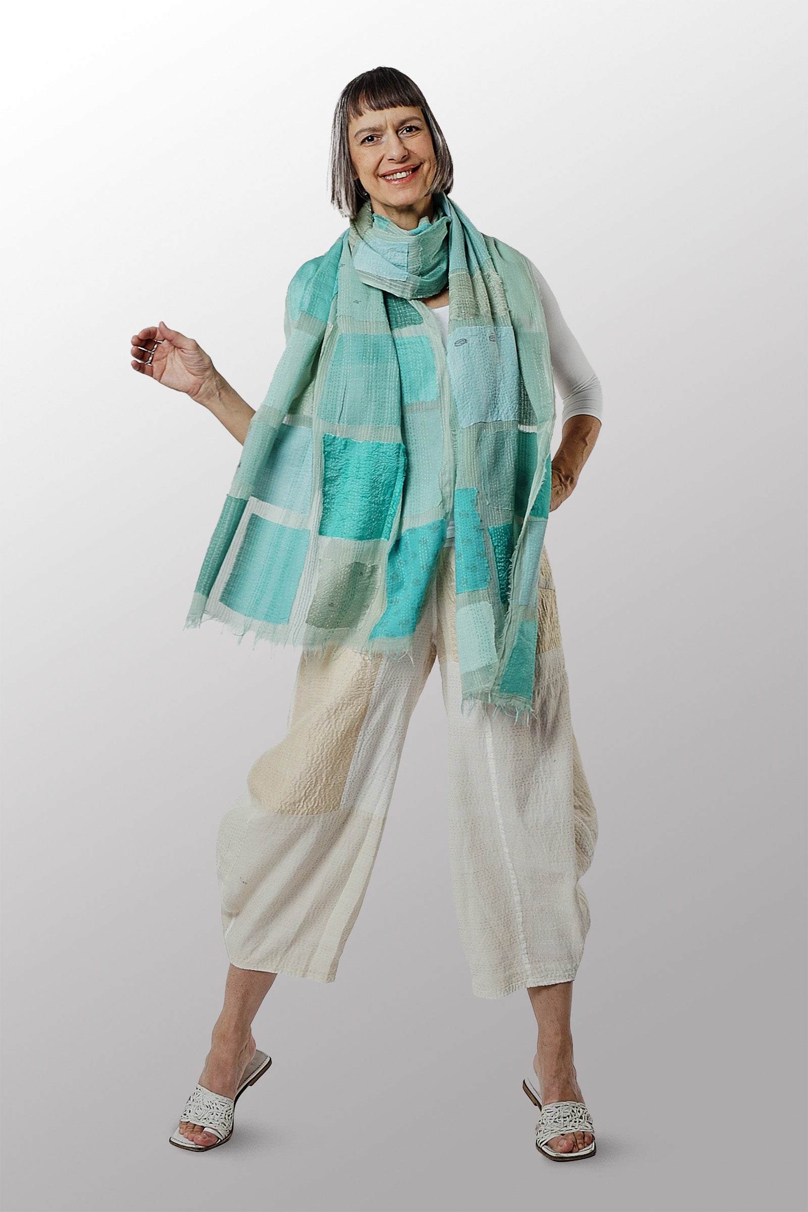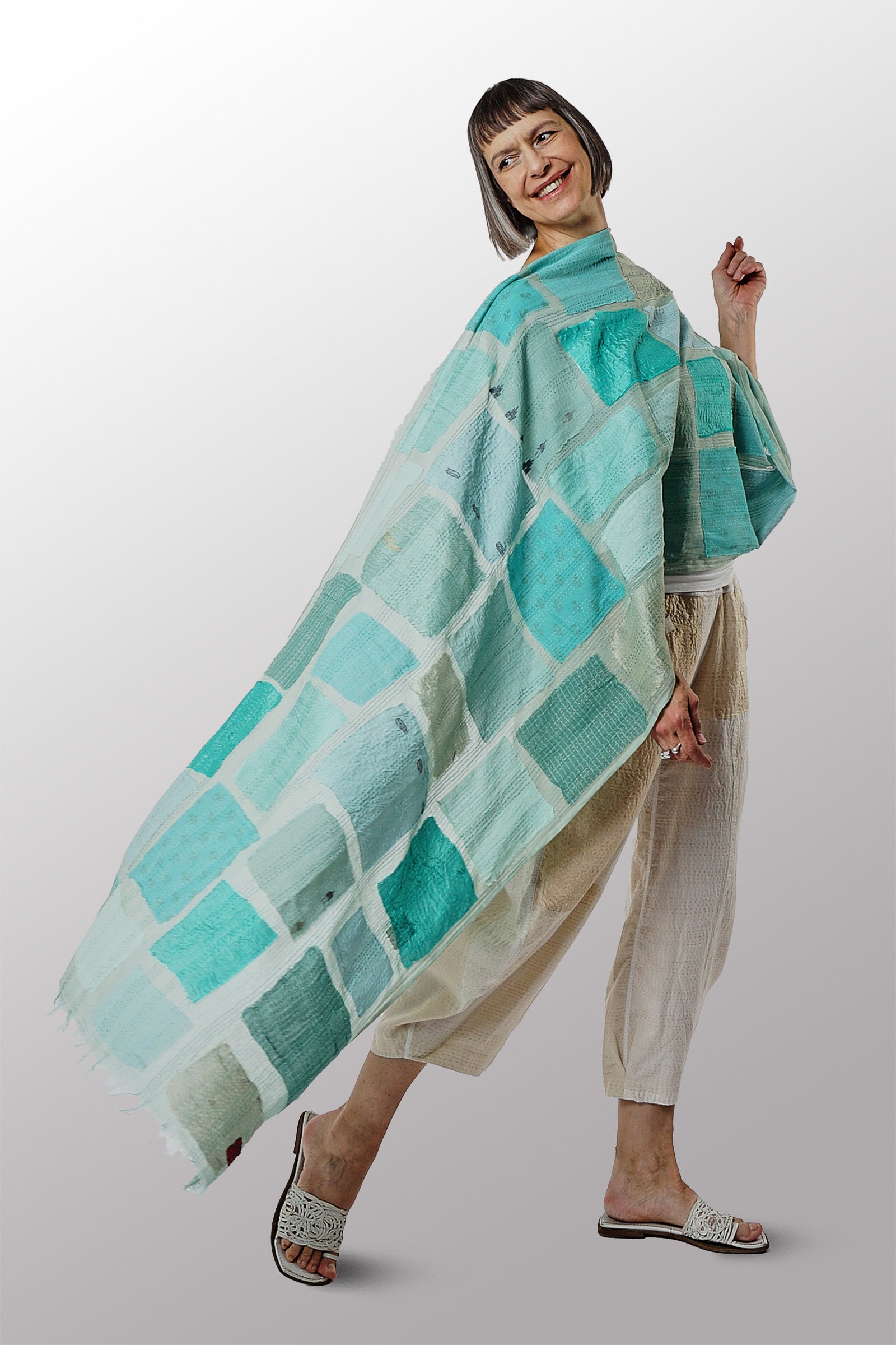 TONAL TILE PATCH KANTHA SHAWL MEDIUM - tt2802-tel -