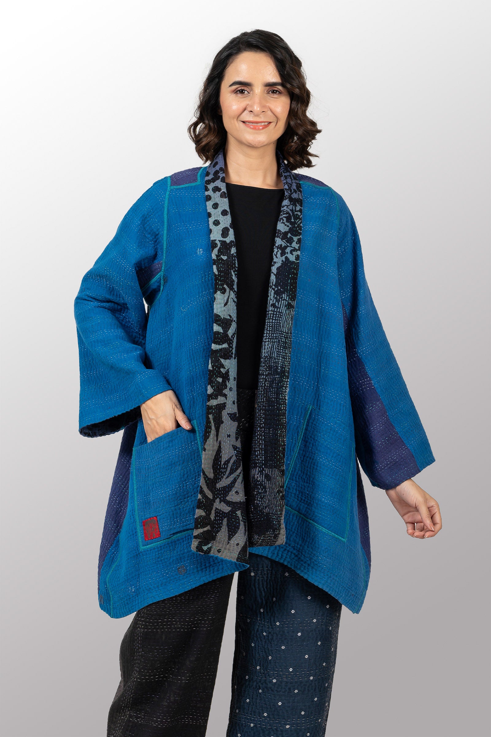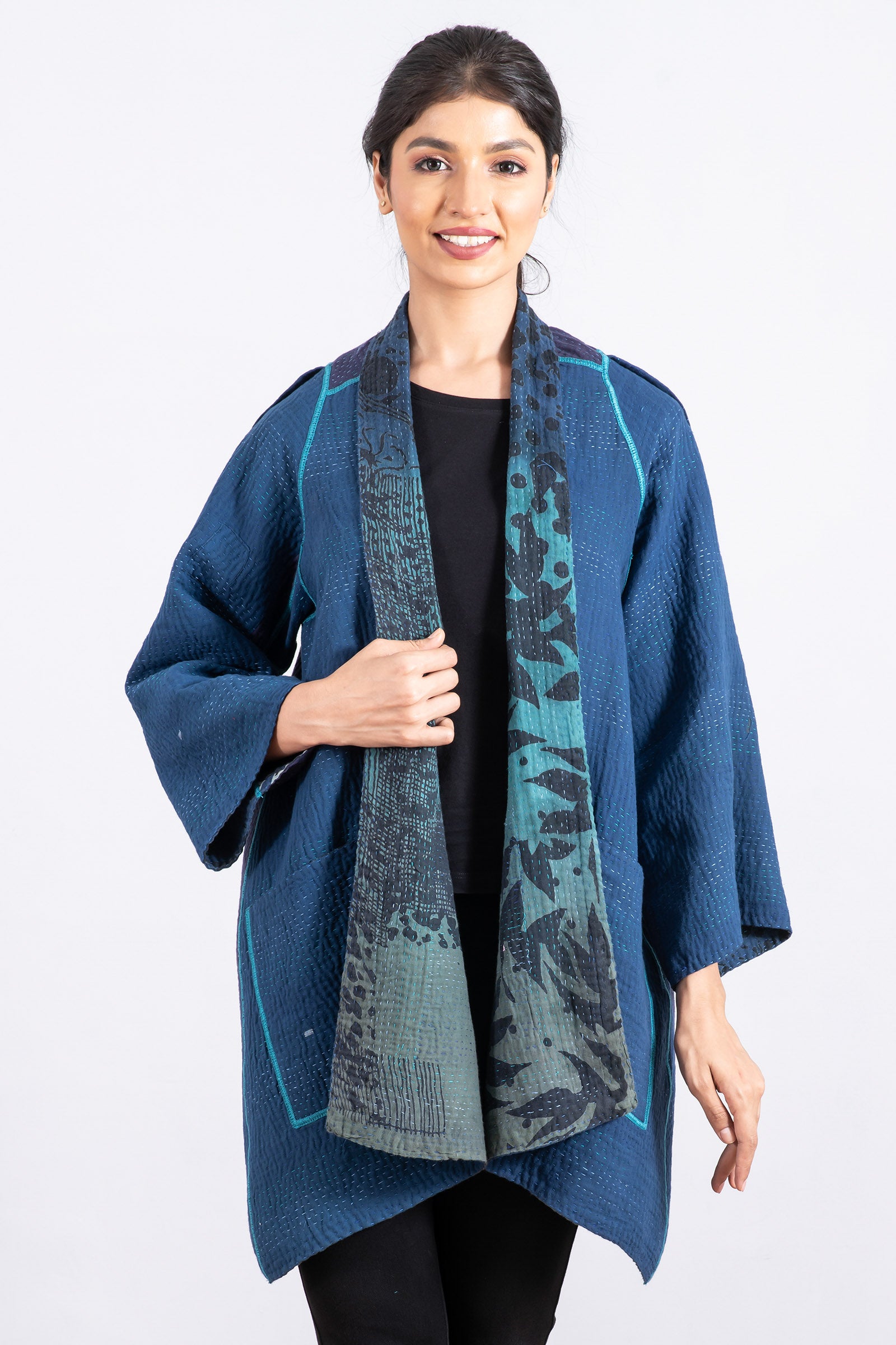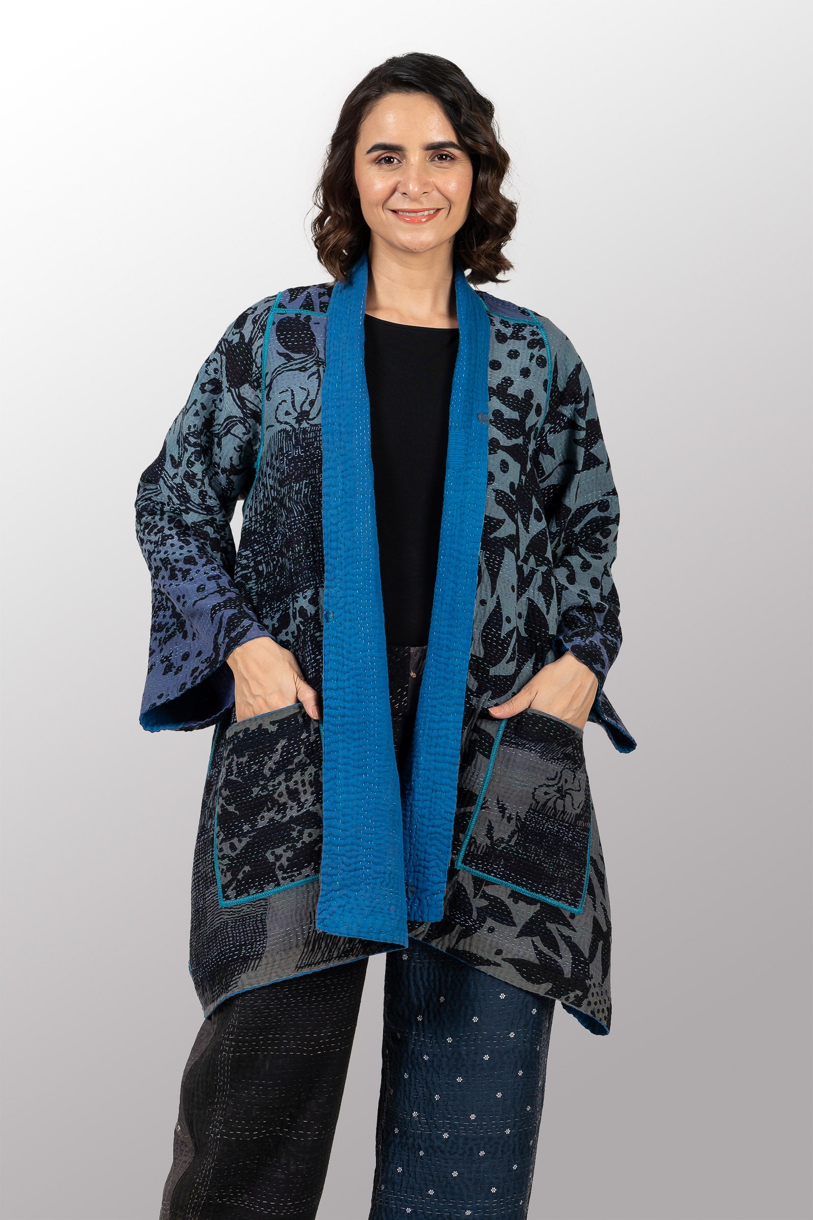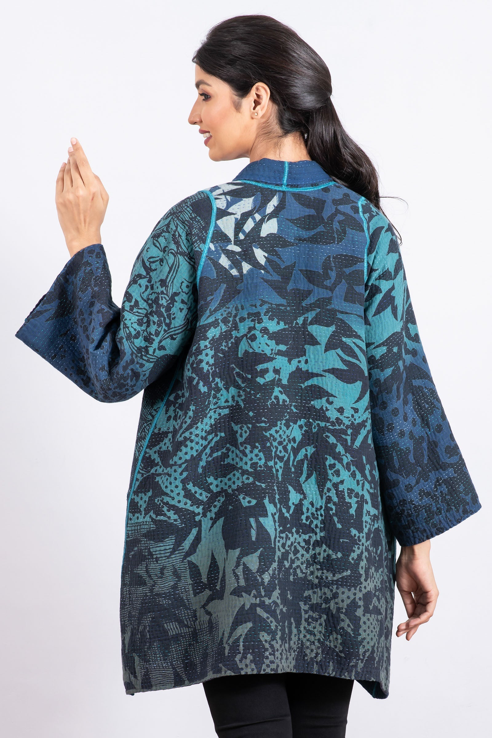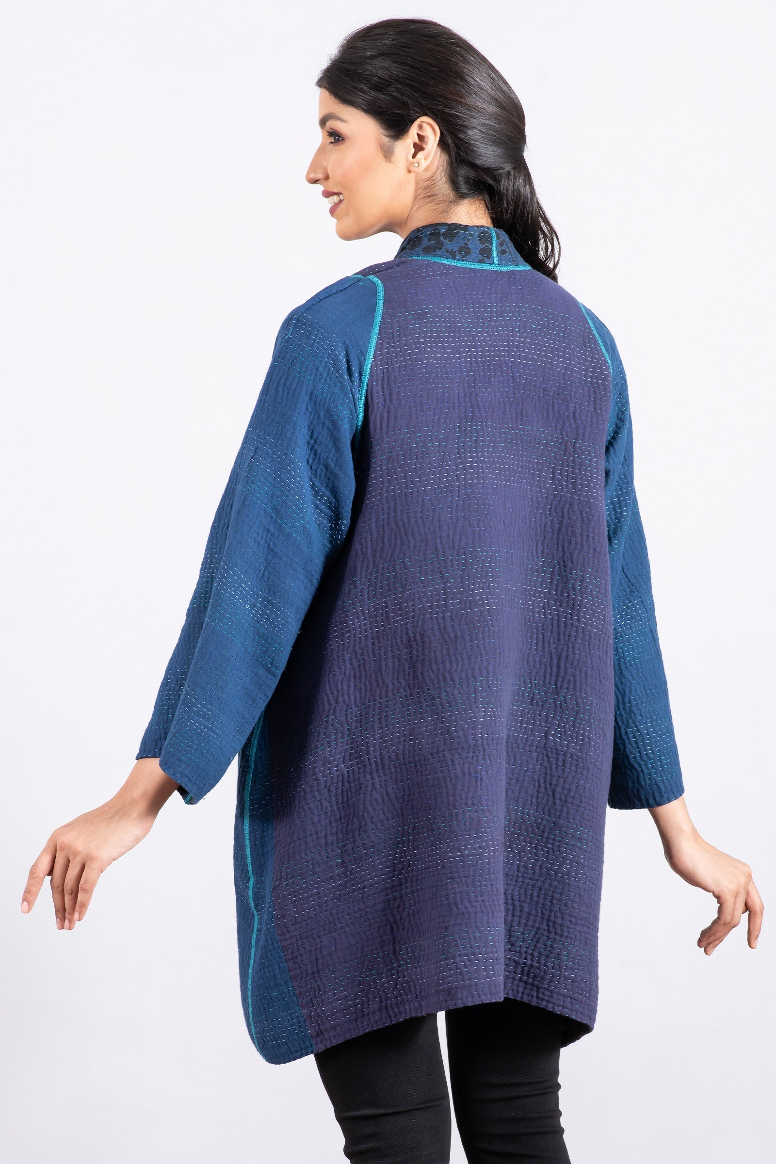 MONOTONE TWILIGHT PRINT KANTHA A-LINE JKT - tp4003-blu -