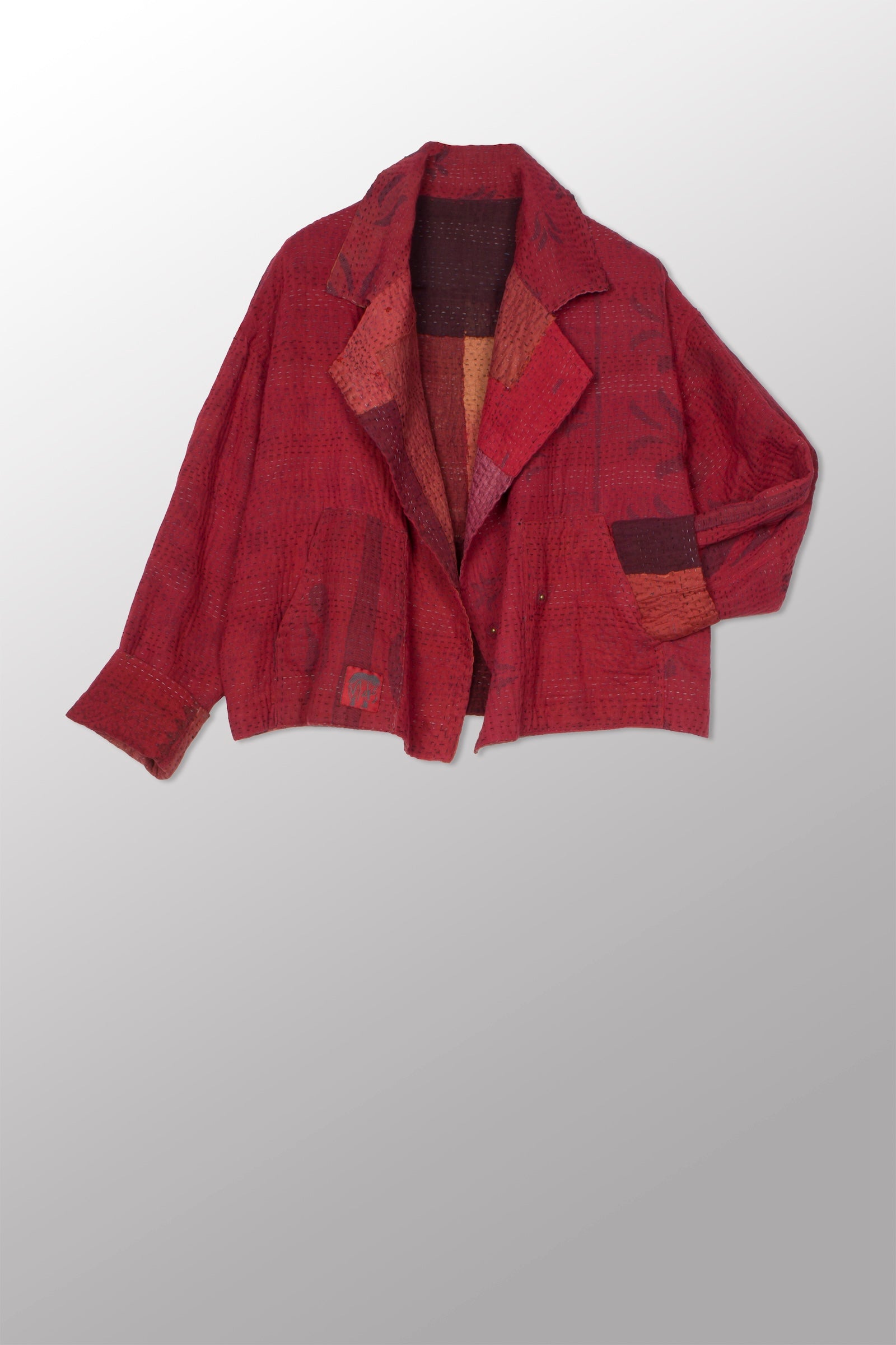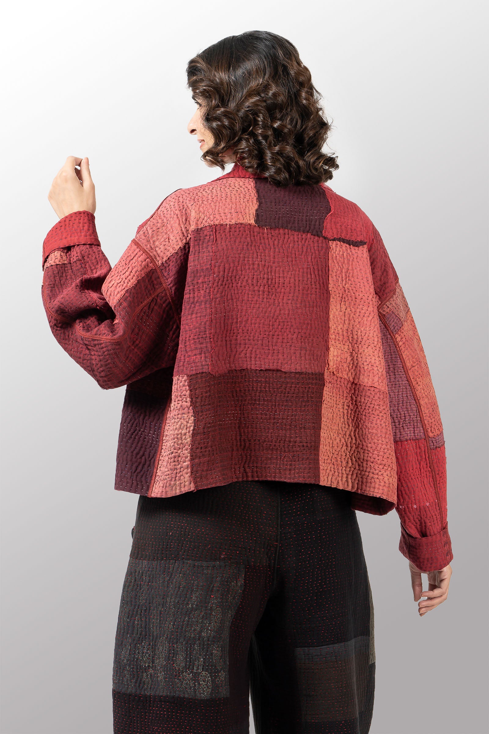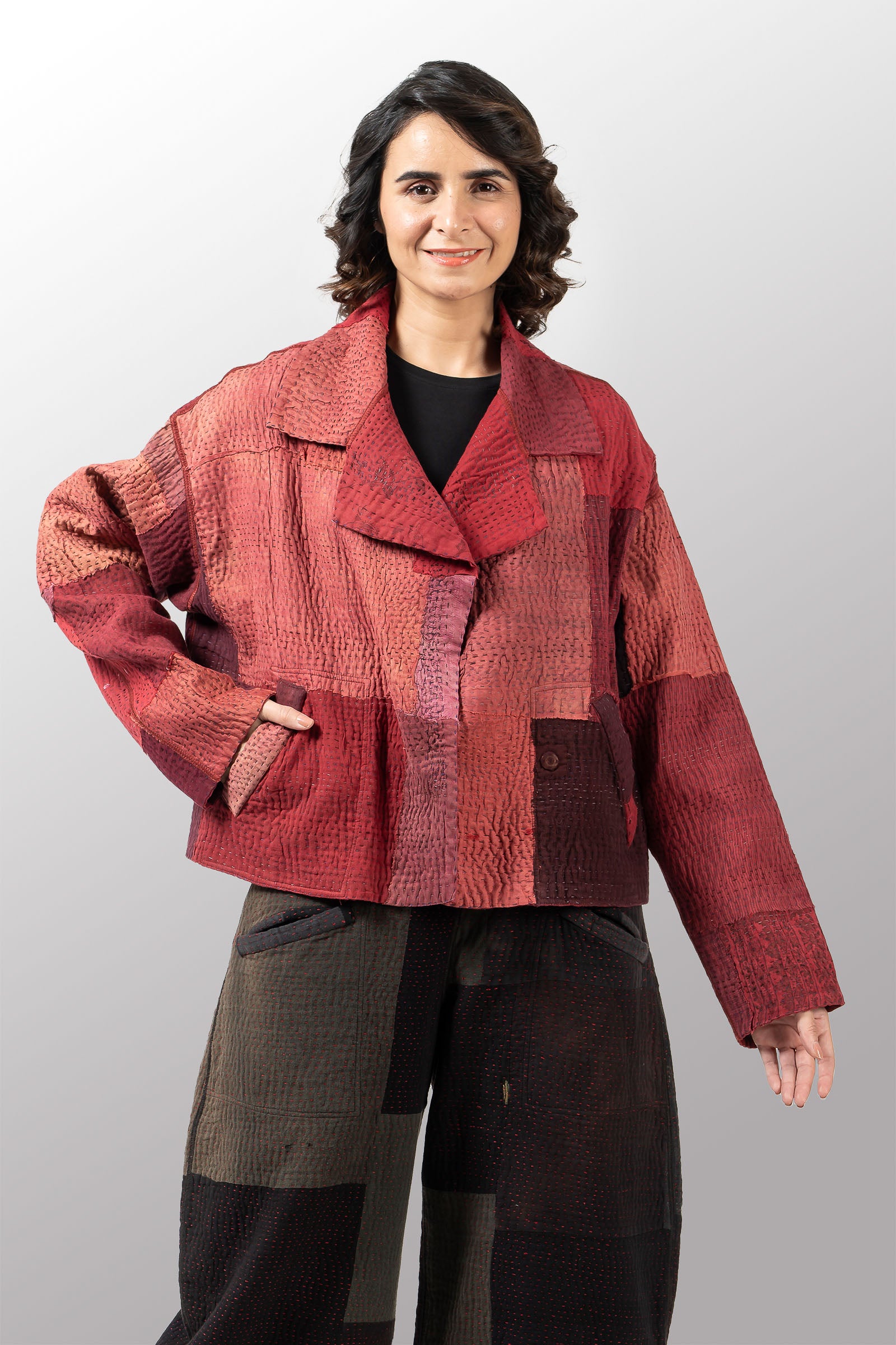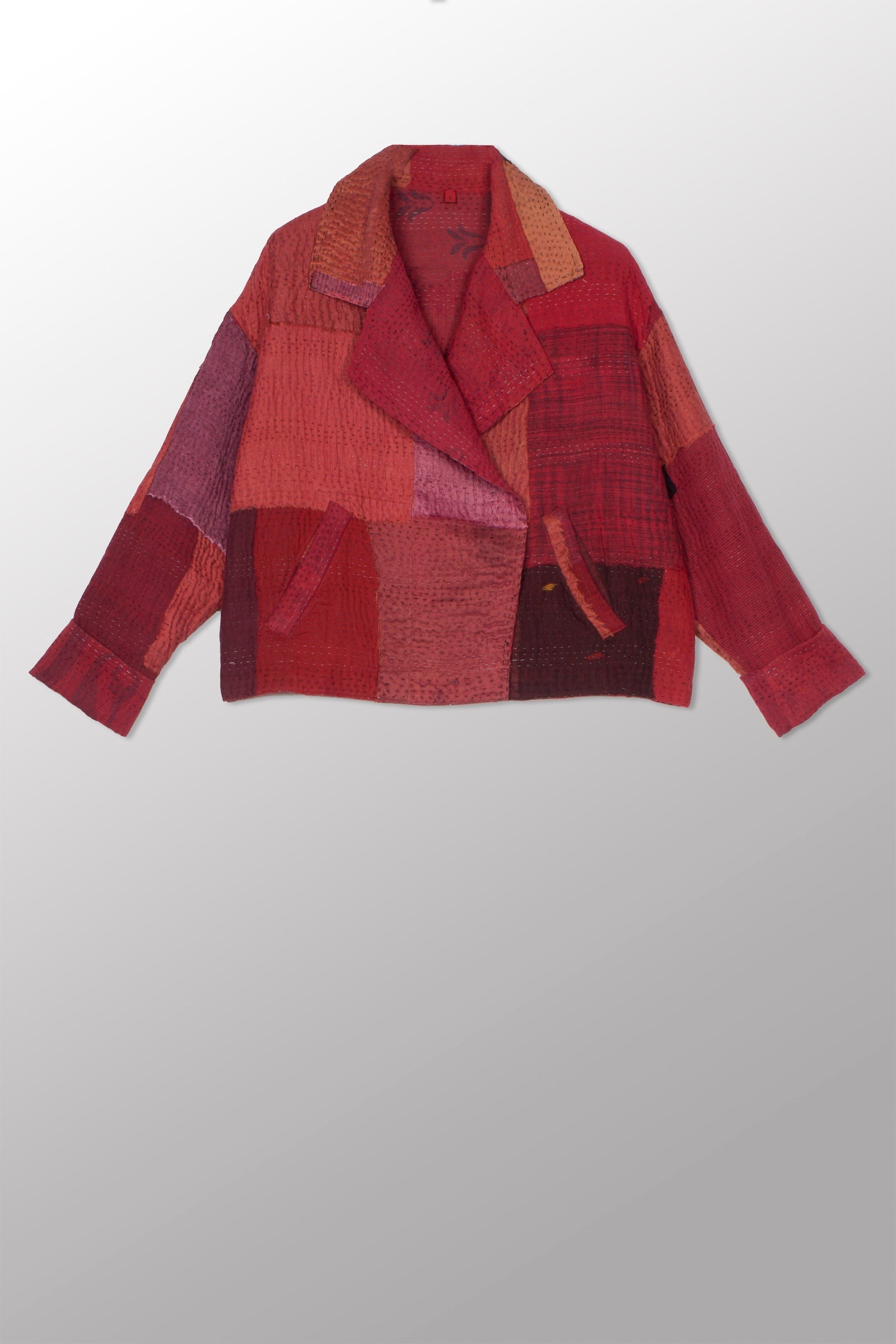 TWO TONE PATCH KANTHA LAPELED SHORT JKT - tn4081-org -