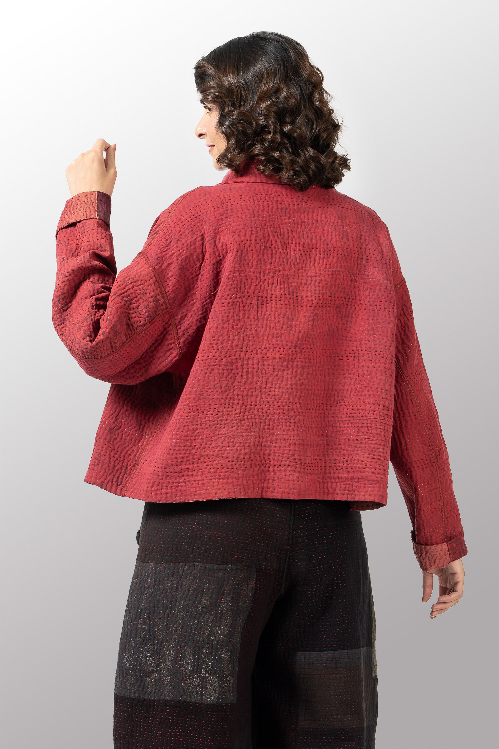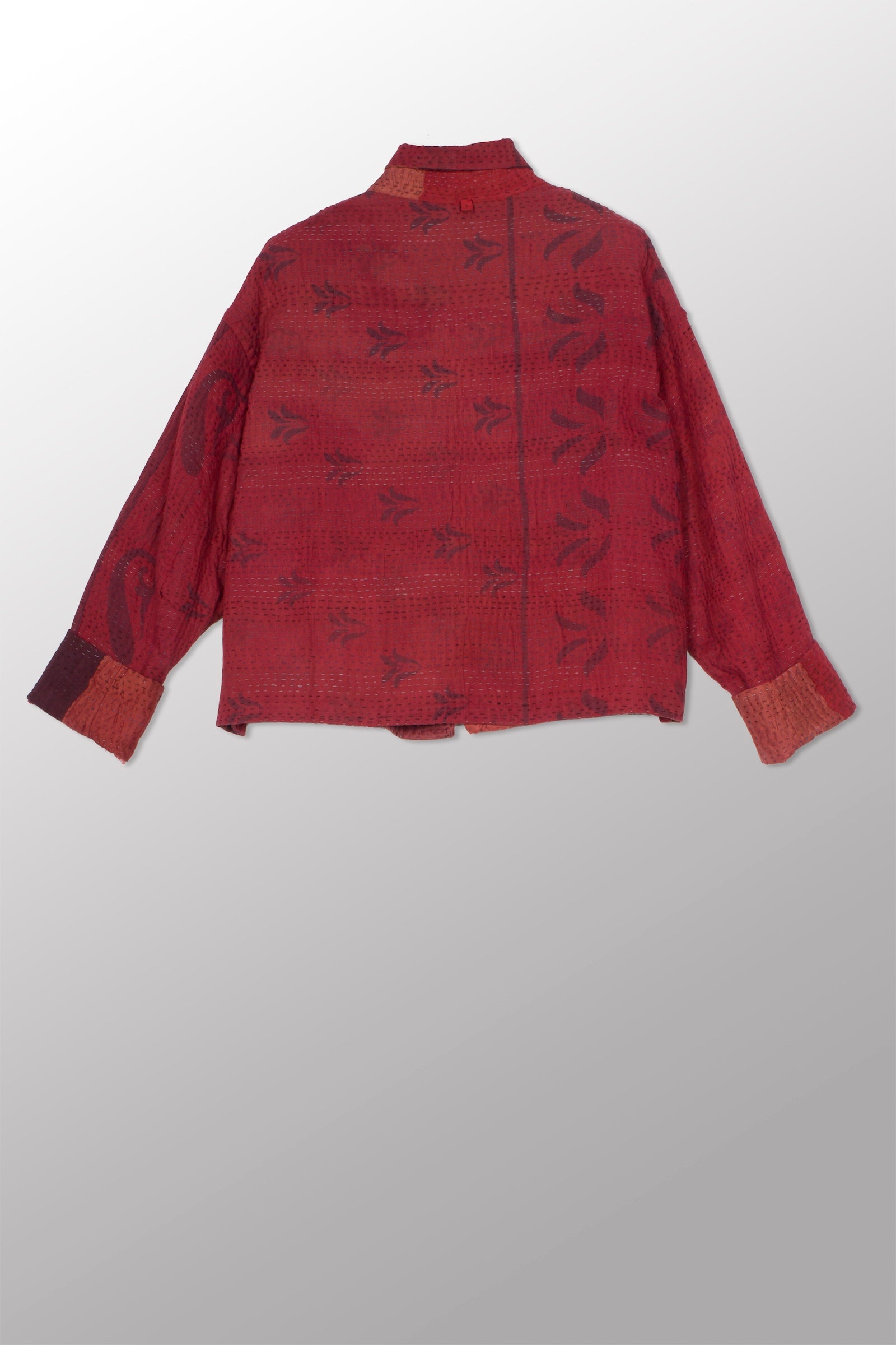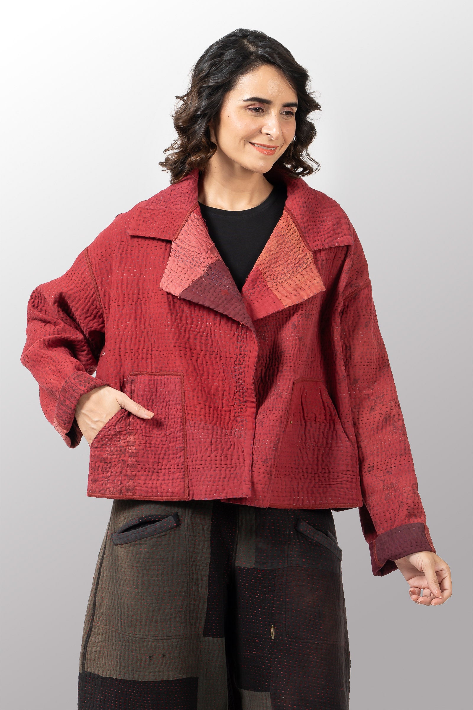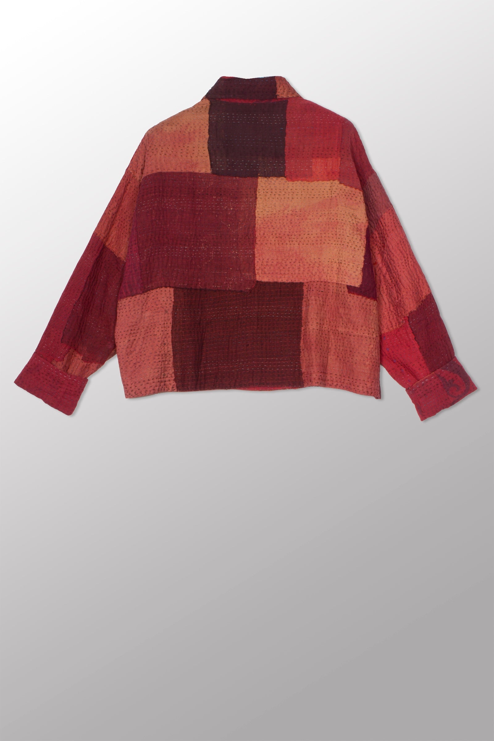 TWO TONE PATCH KANTHA LAPELED SHORT JKT - tn4081-org -