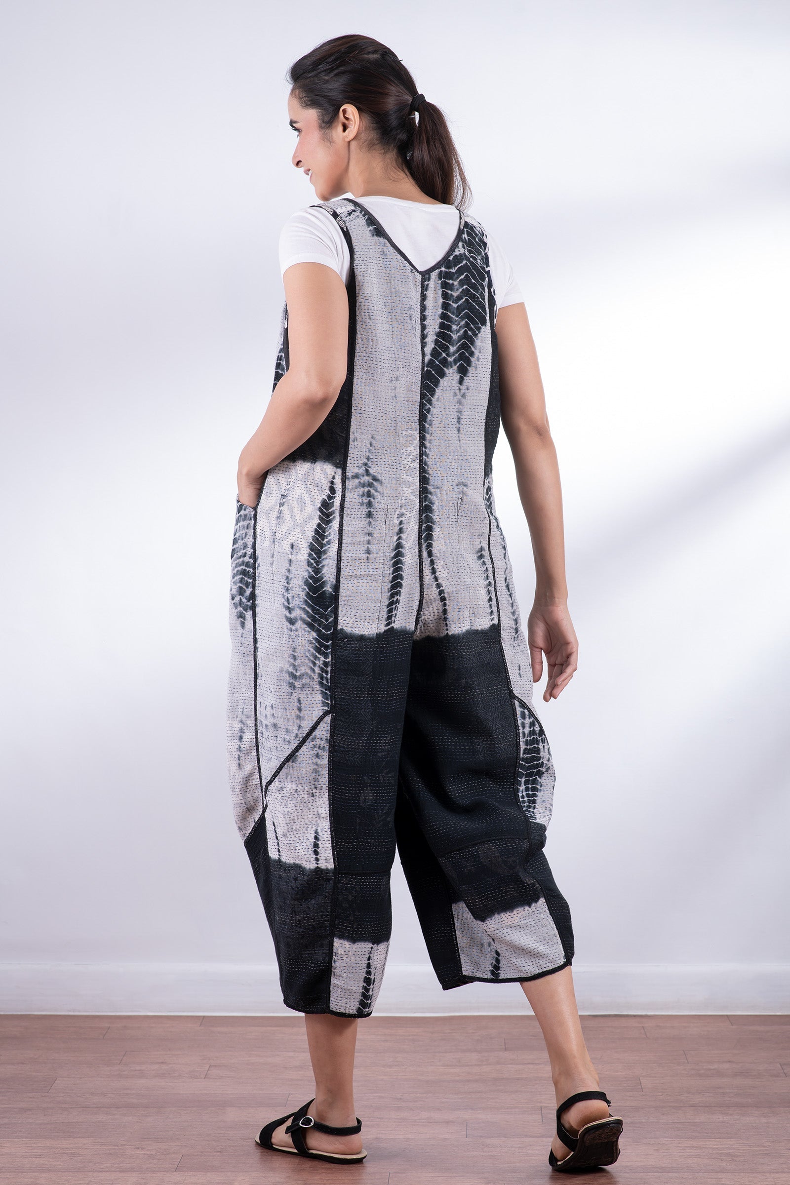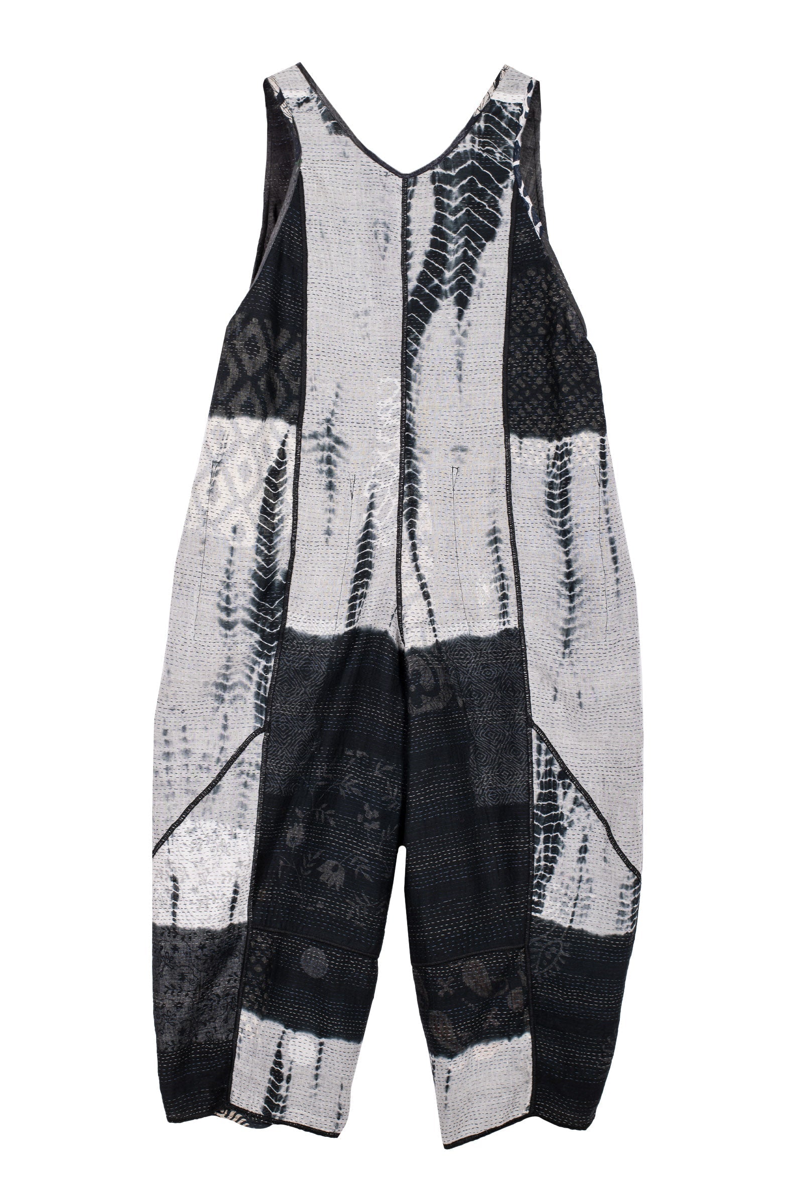 VINTAGE BOTTOM PRINT KANTHA V-NECK JUMPER - vb2622-blk -