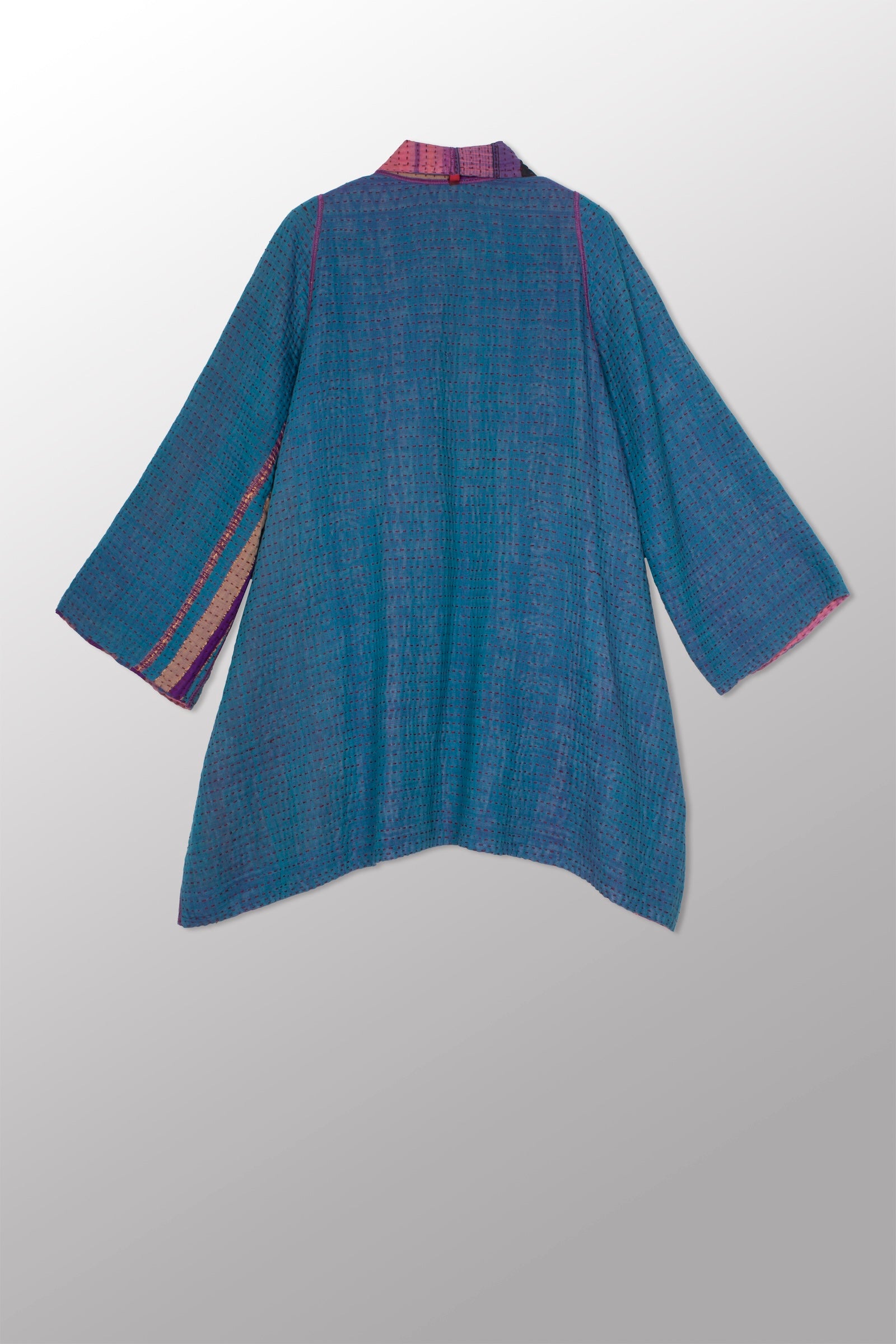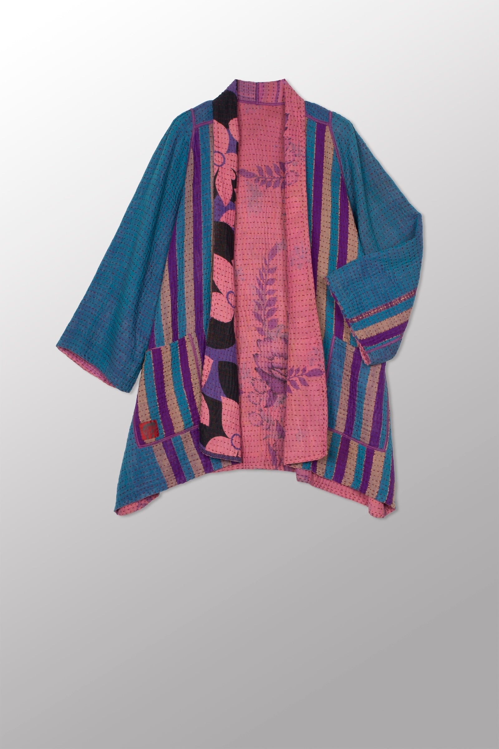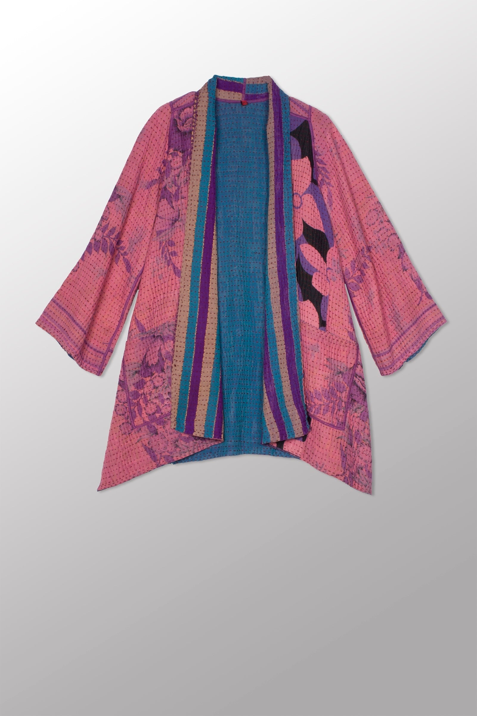 4 Layer Vintage Saris with Hand Stitches on Entire Garment - Reversible