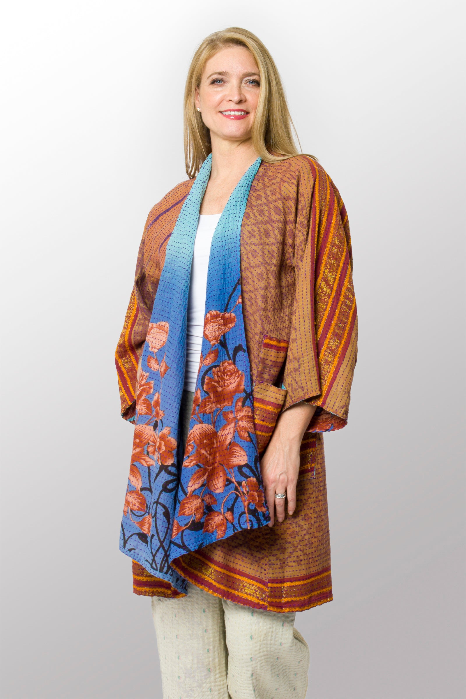 2 Layer Vintage Saris with Hand Stitches on Entire Garment - Reversible