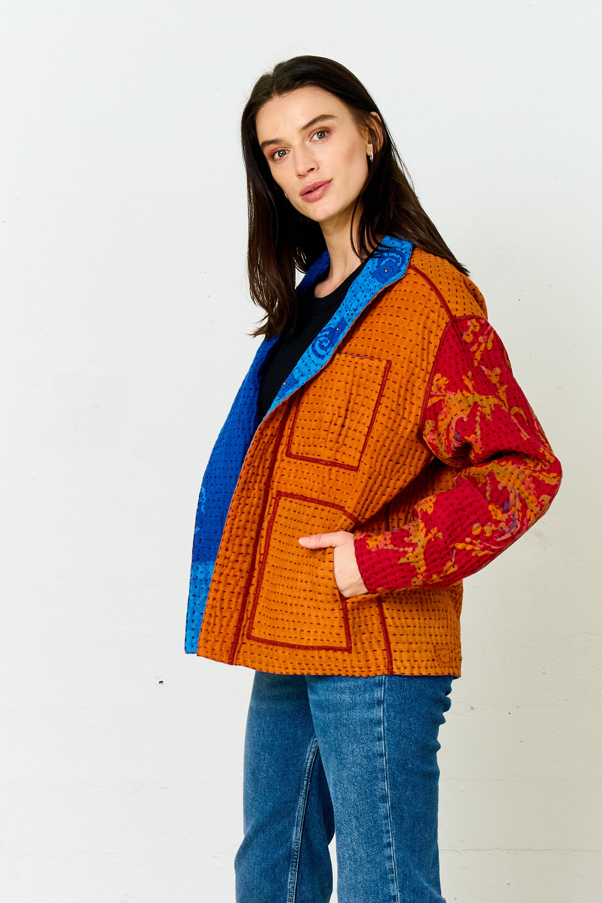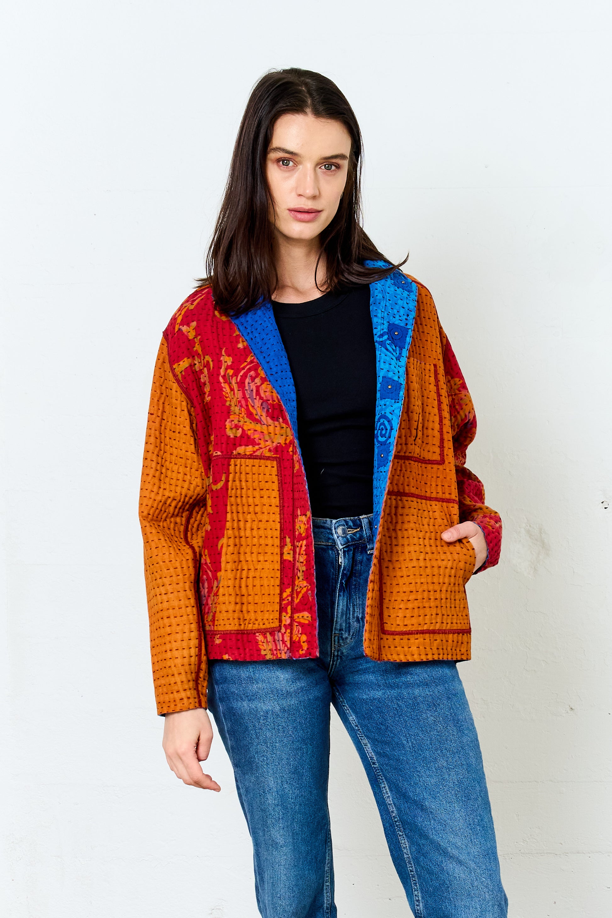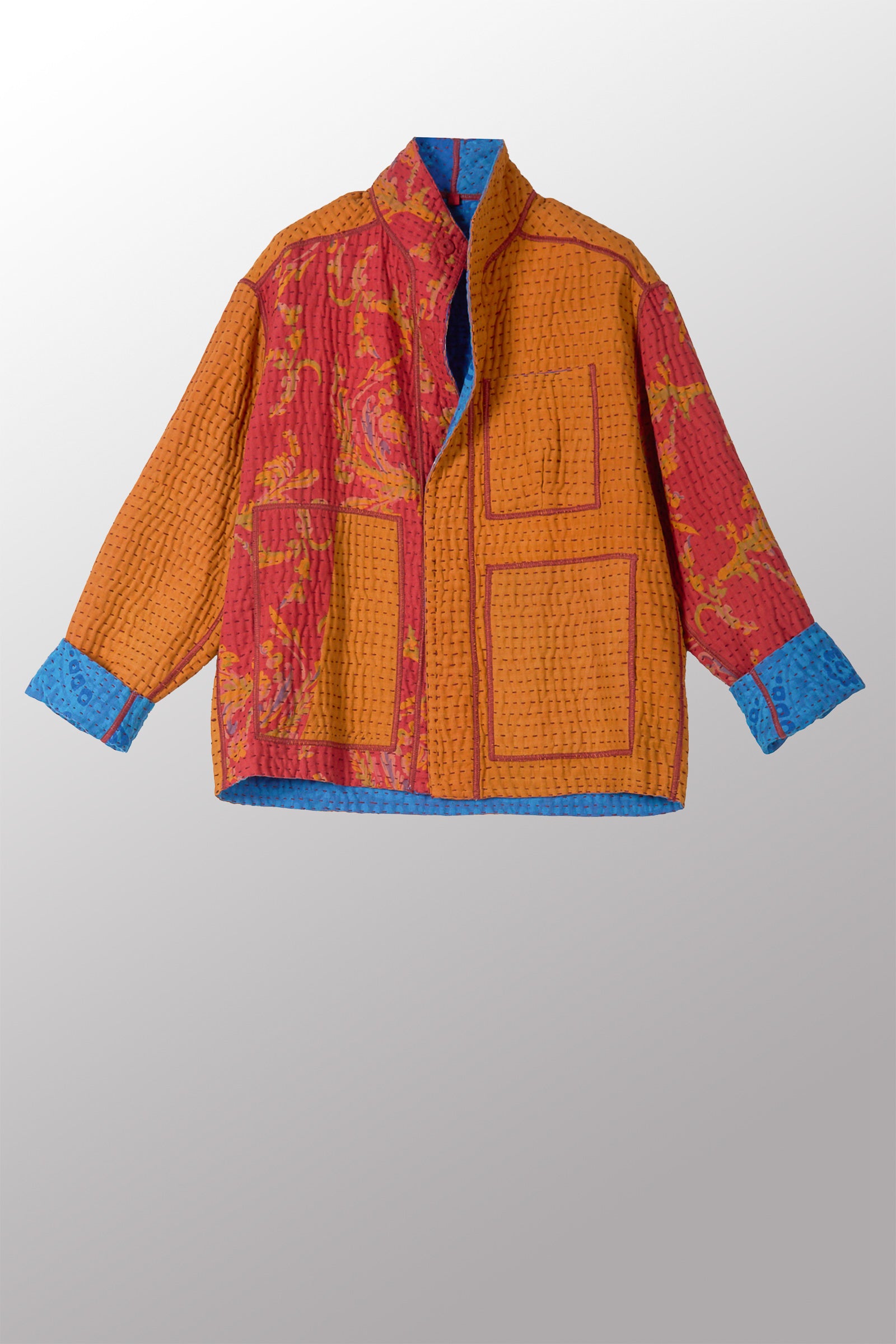 4 Layer Vintage Saris with Hand Stitches on Entire Garment - Reversible