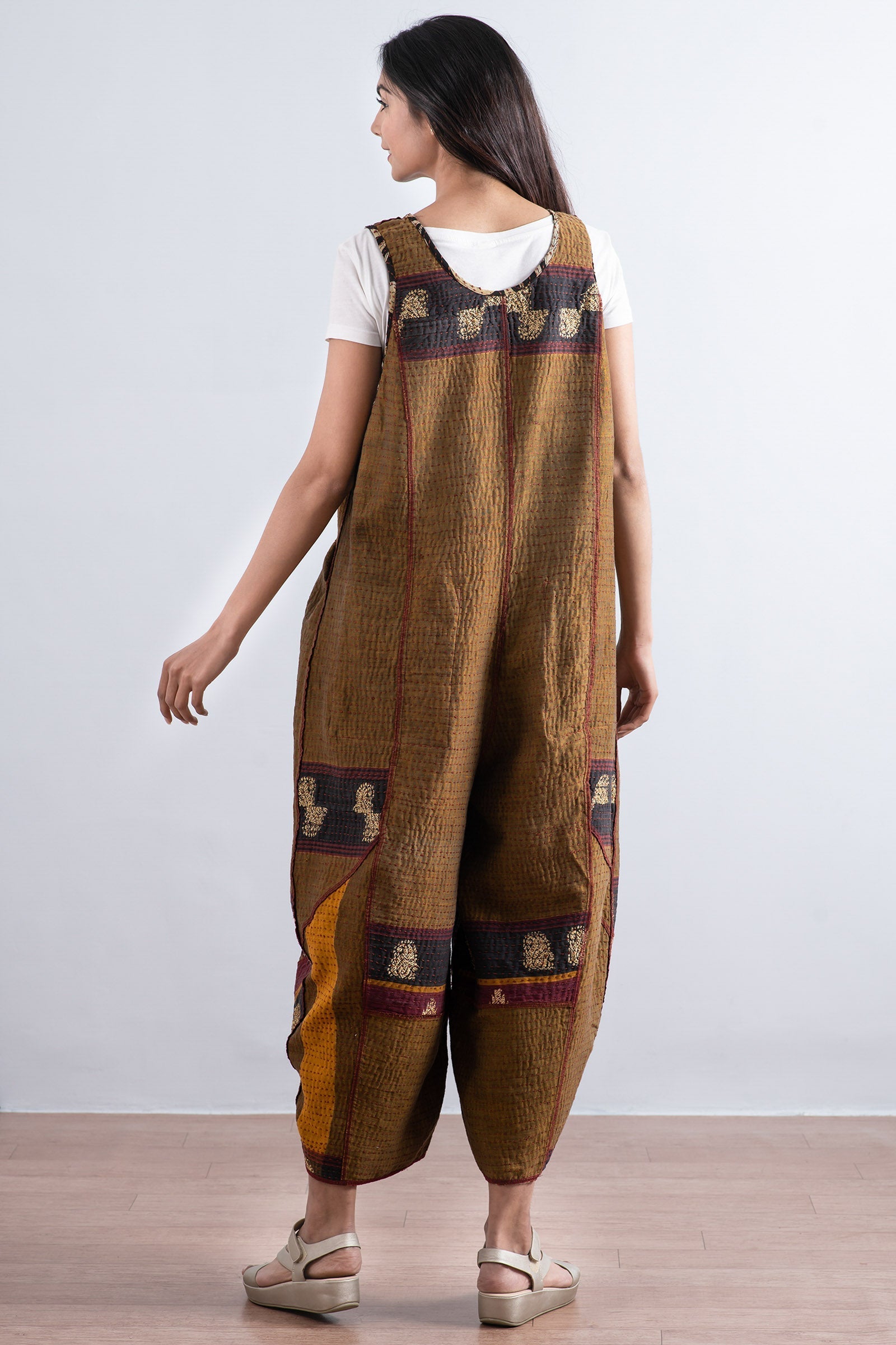 2 Layer Vintage Saris with Hand Stitches on Entire Garment - Reversible