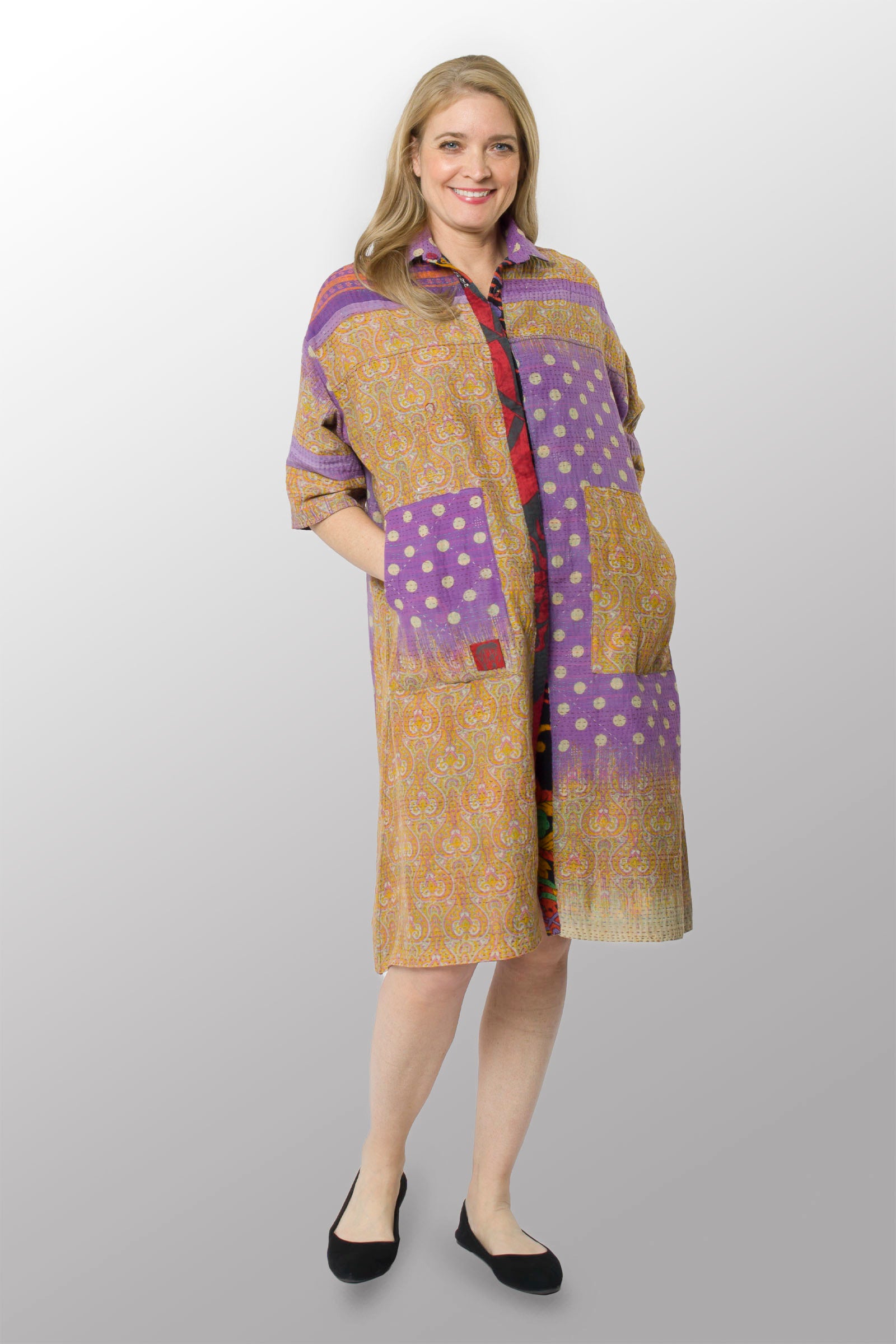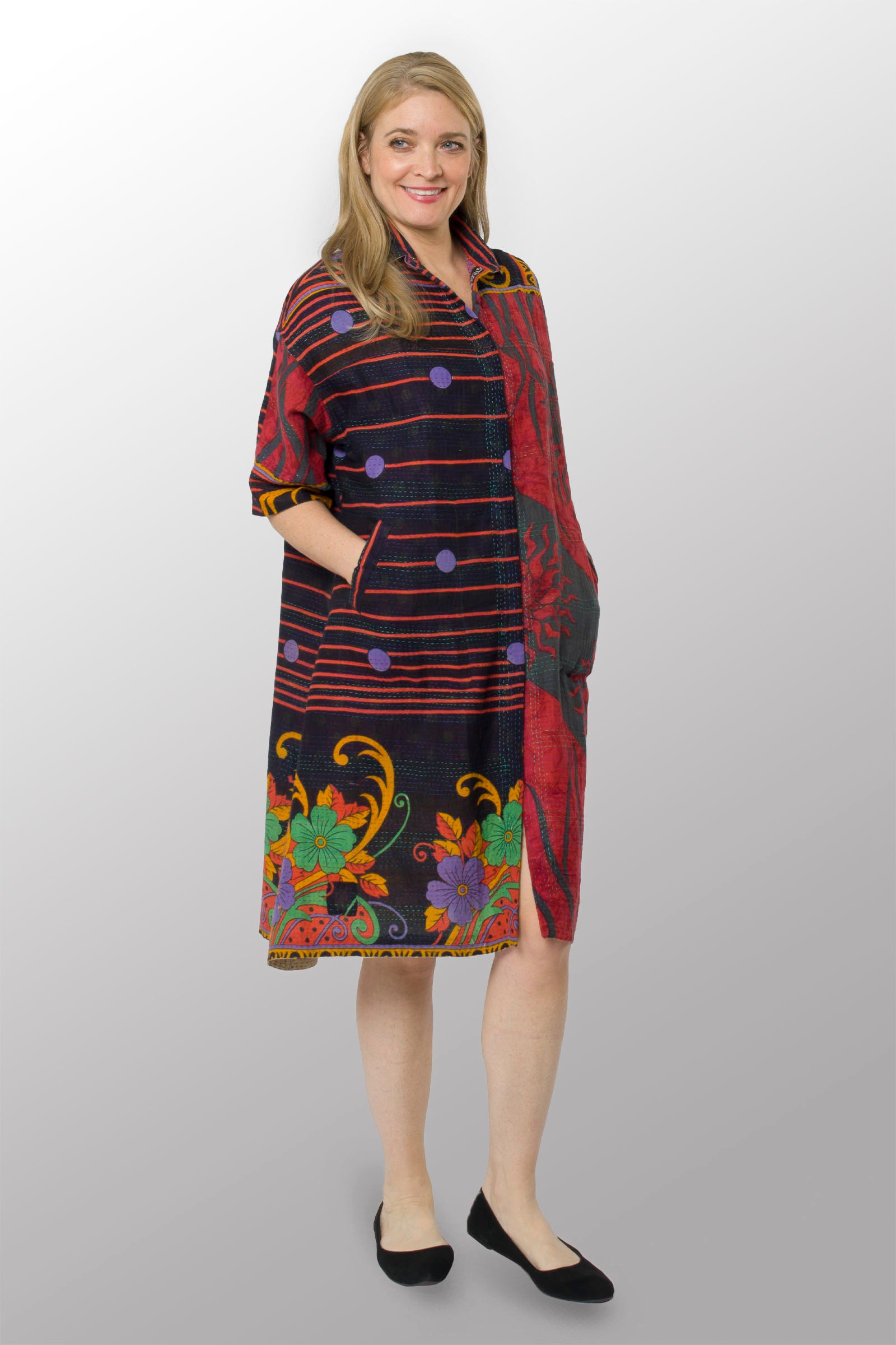 VINTAGE COTTON KANTHA 3/4 SLV. SHIRT DRESS - cv2459-0001s -