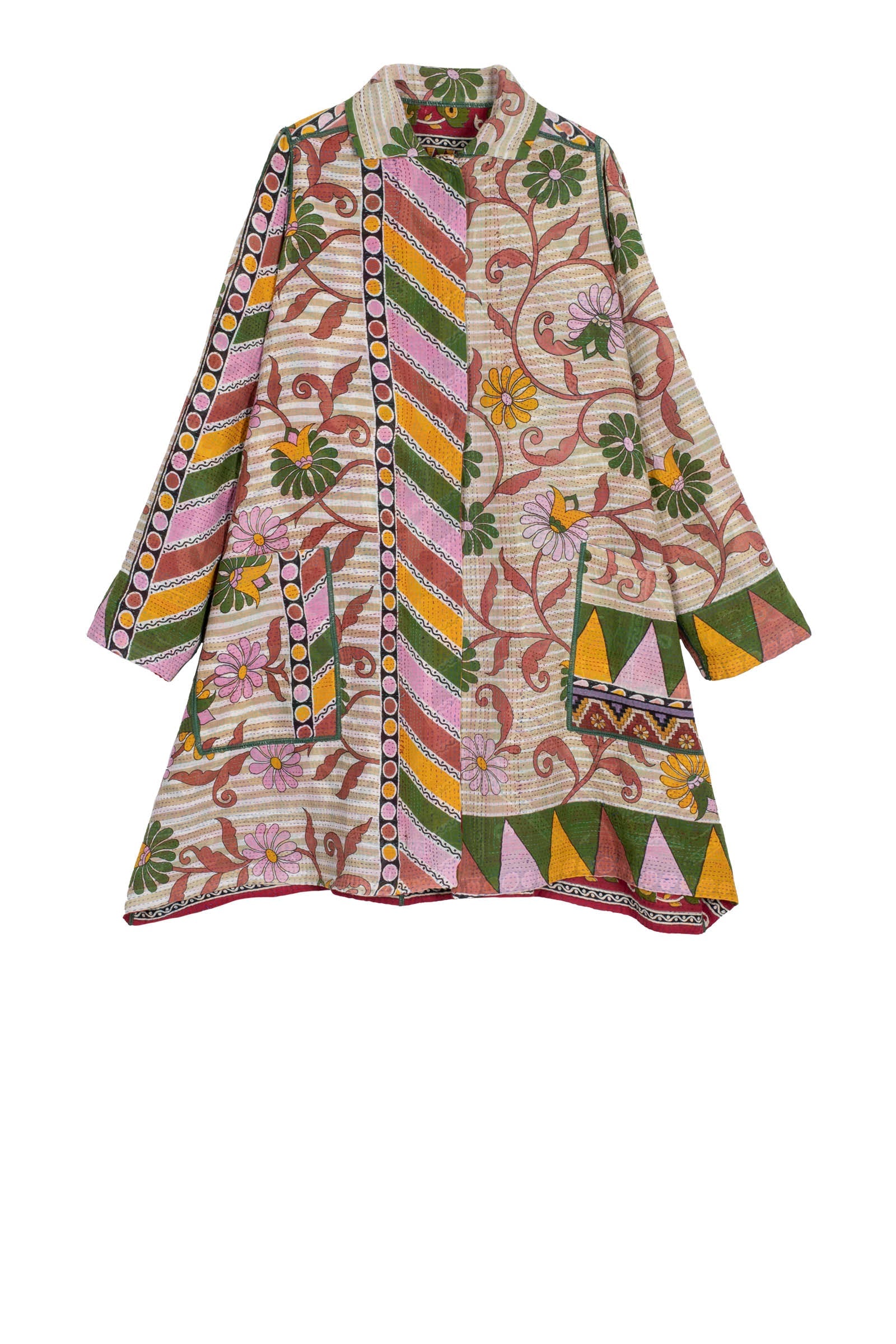 VINTAGE COTTON KANTHA A-LINE DUSTER - cv2311-0023a -