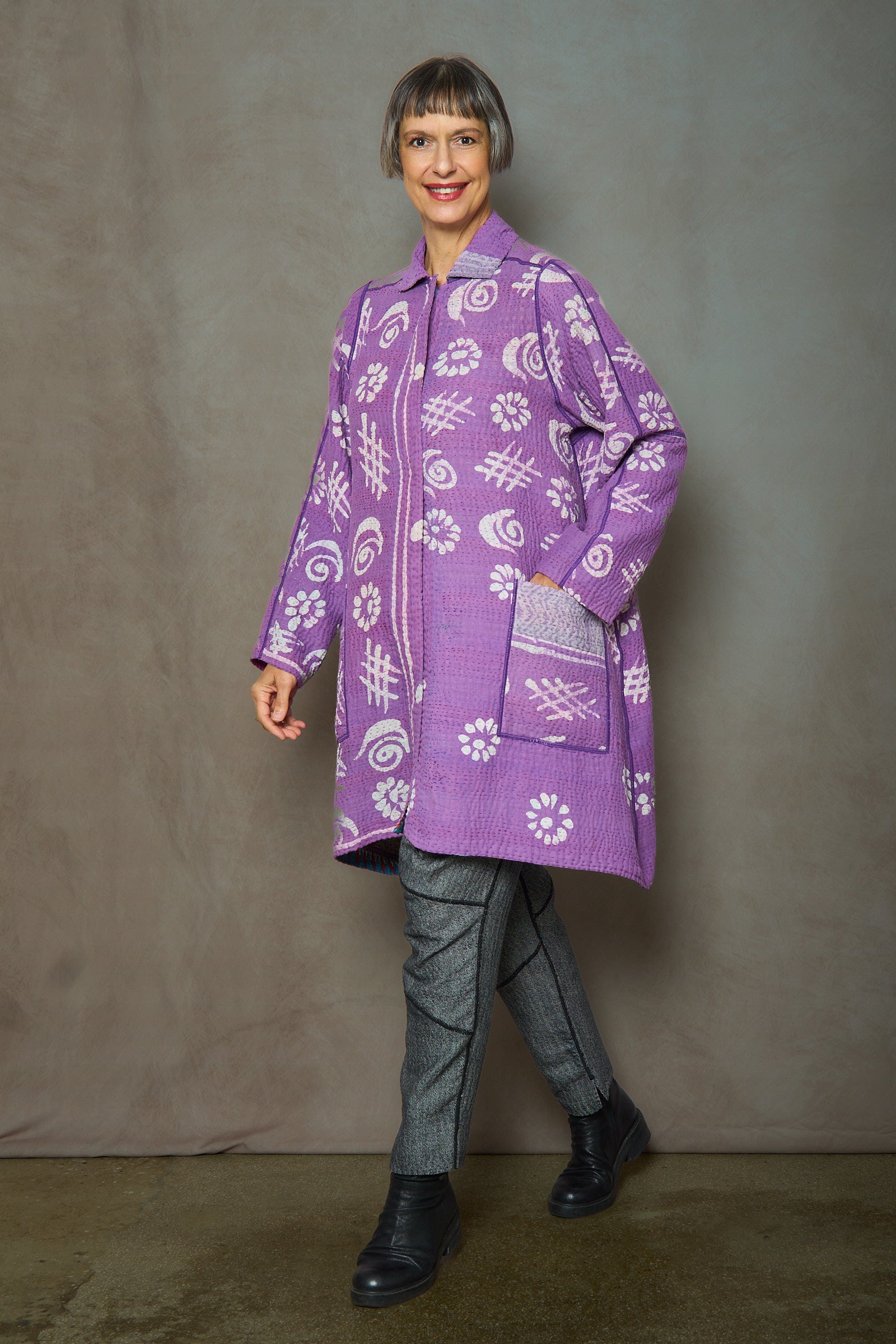 VINTAGE COTTON KANTHA A-LINE DUSTER - cv4311-0077a -