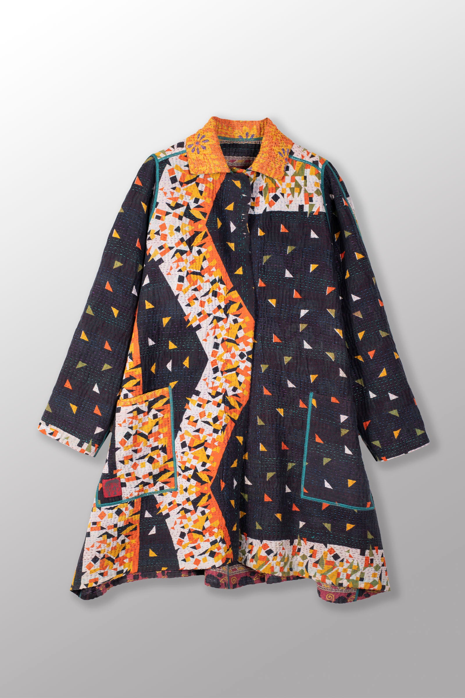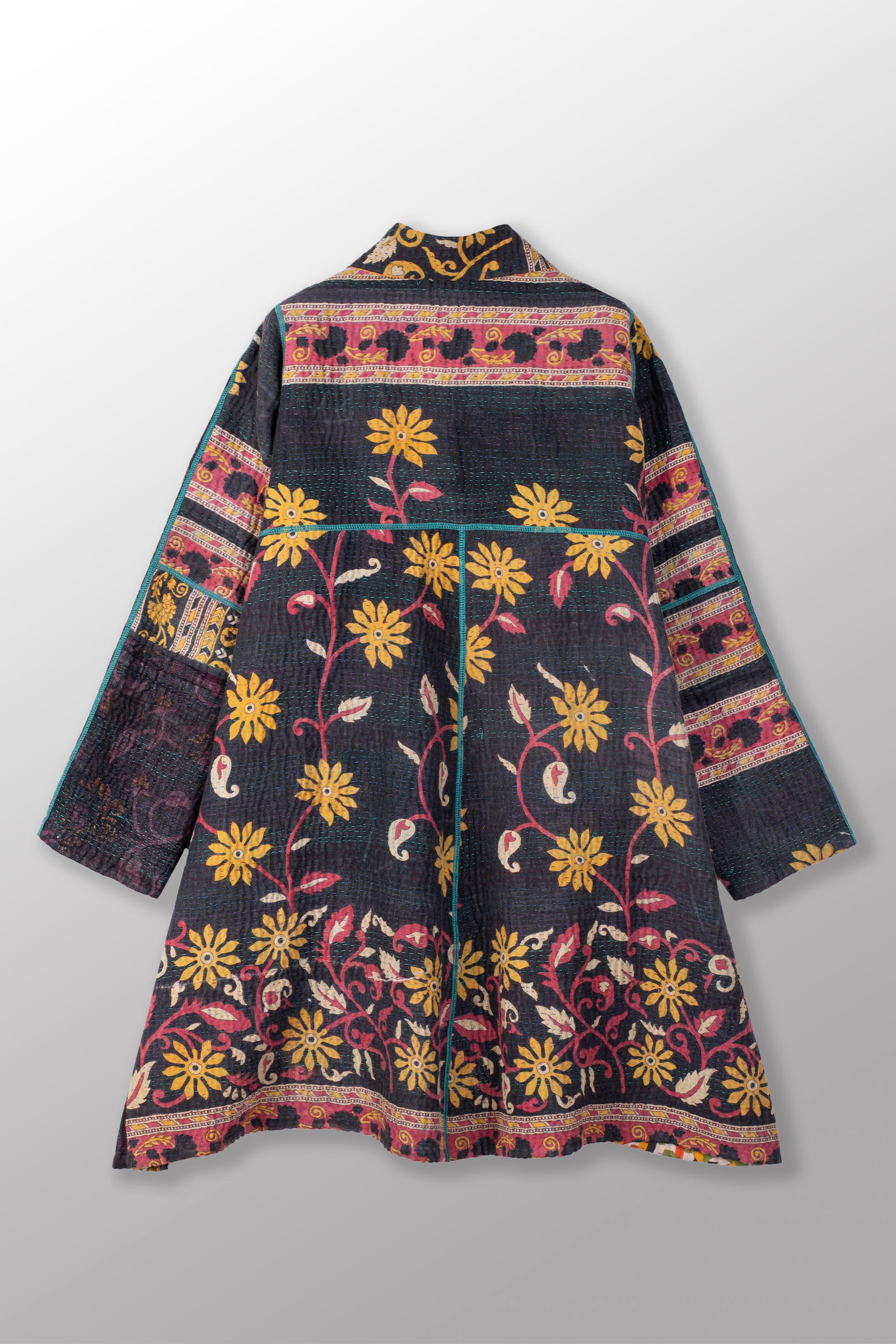 VINTAGE COTTON KANTHA A-LINE DUSTER - cv4311-0101a -