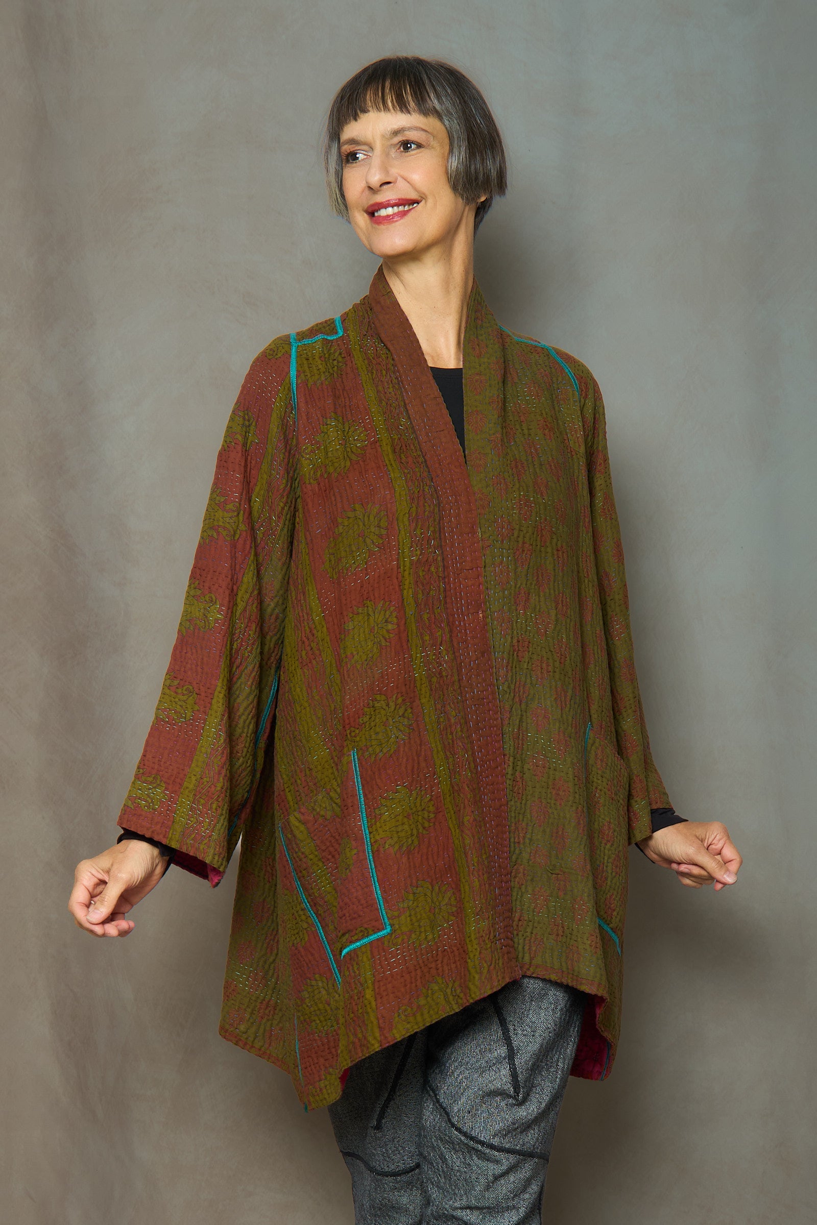 VINTAGE COTTON KANTHA A-LINE JKT - cv4003-0442a -
