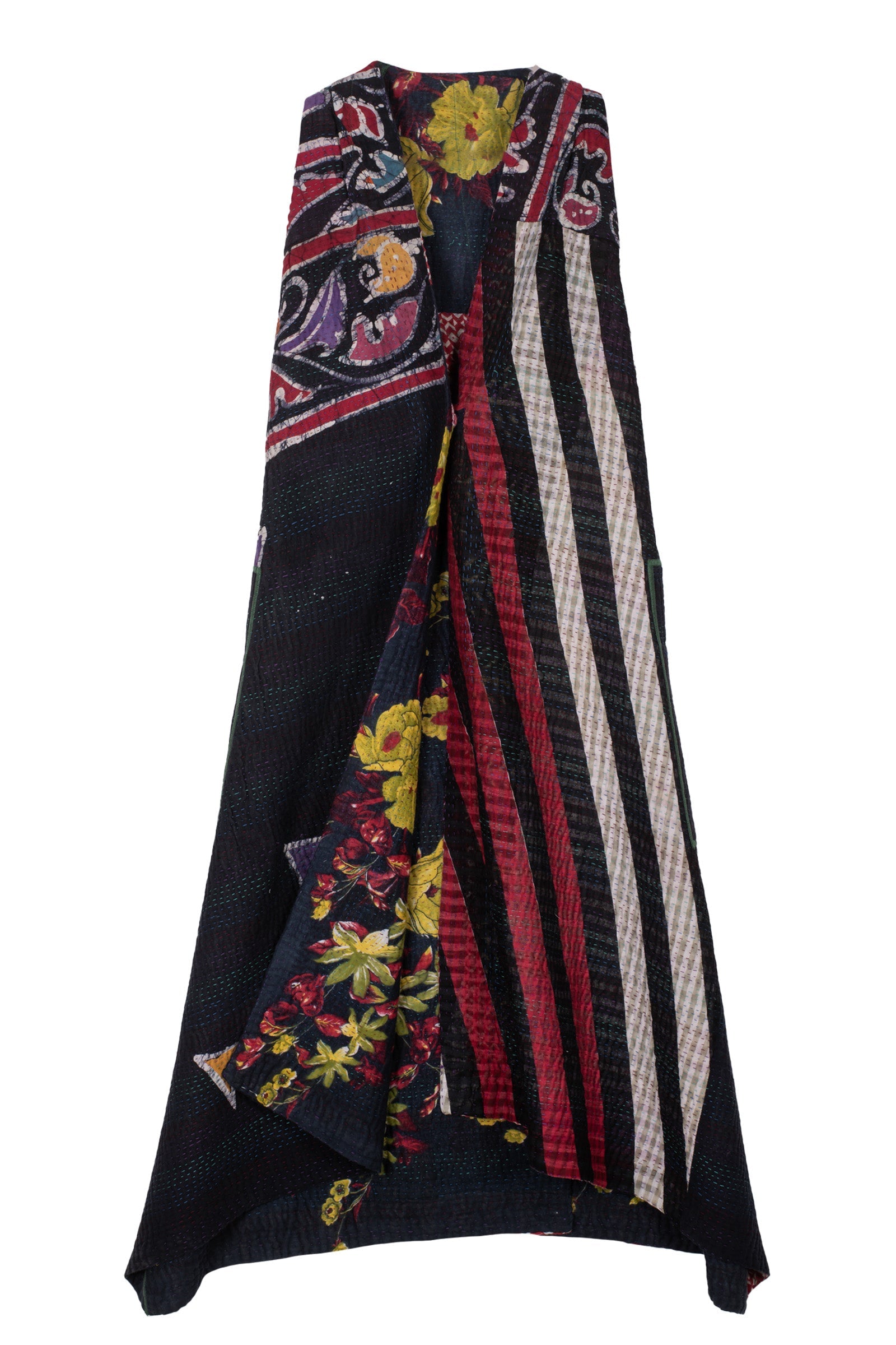 VINTAGE COTTON KANTHA BACK PLEATED VEST MAXI - cv4222-0013a -
