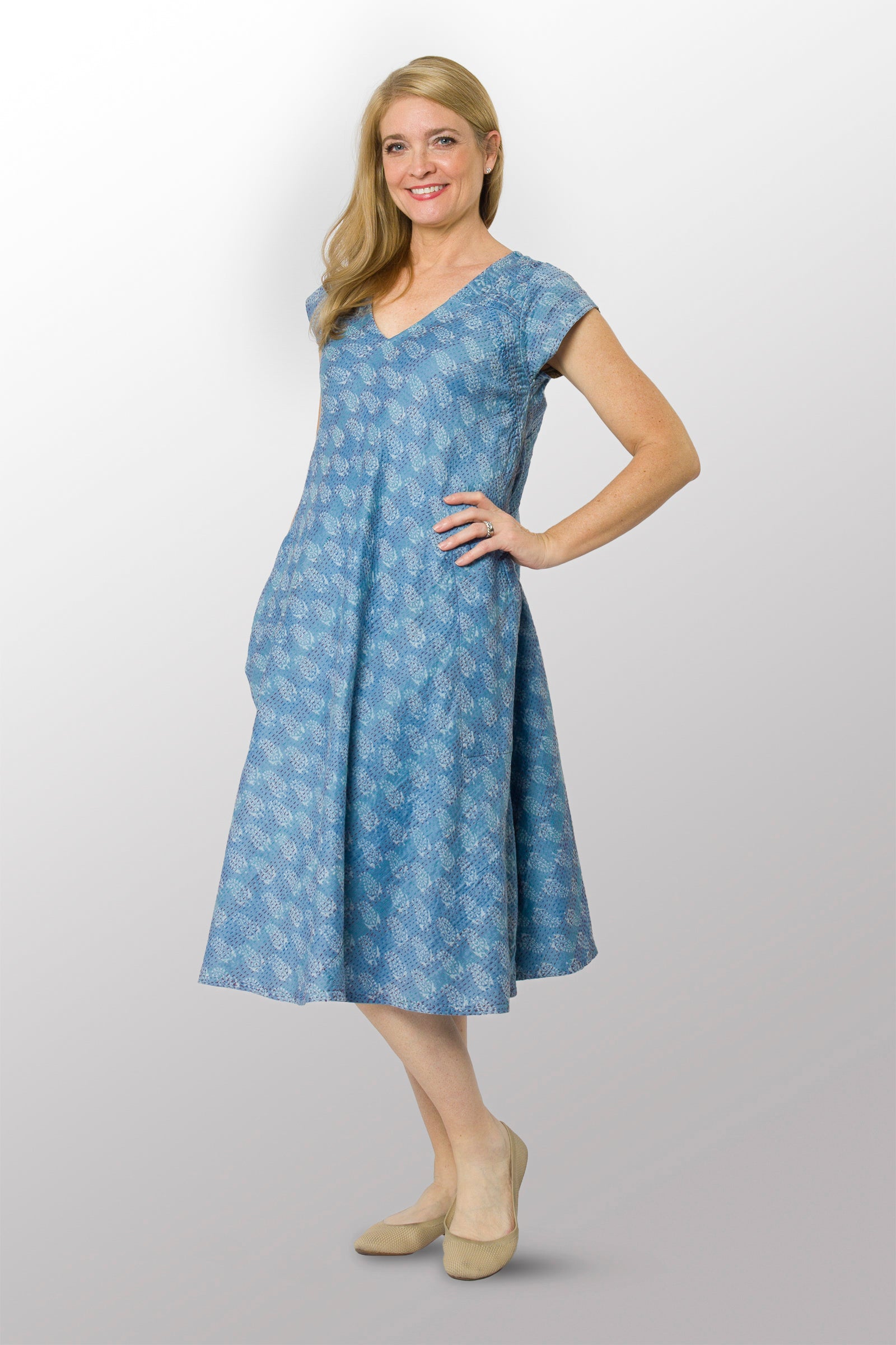VINTAGE COTTON KANTHA CAP SLV. FLARE DRESS - cv2425-0011s -