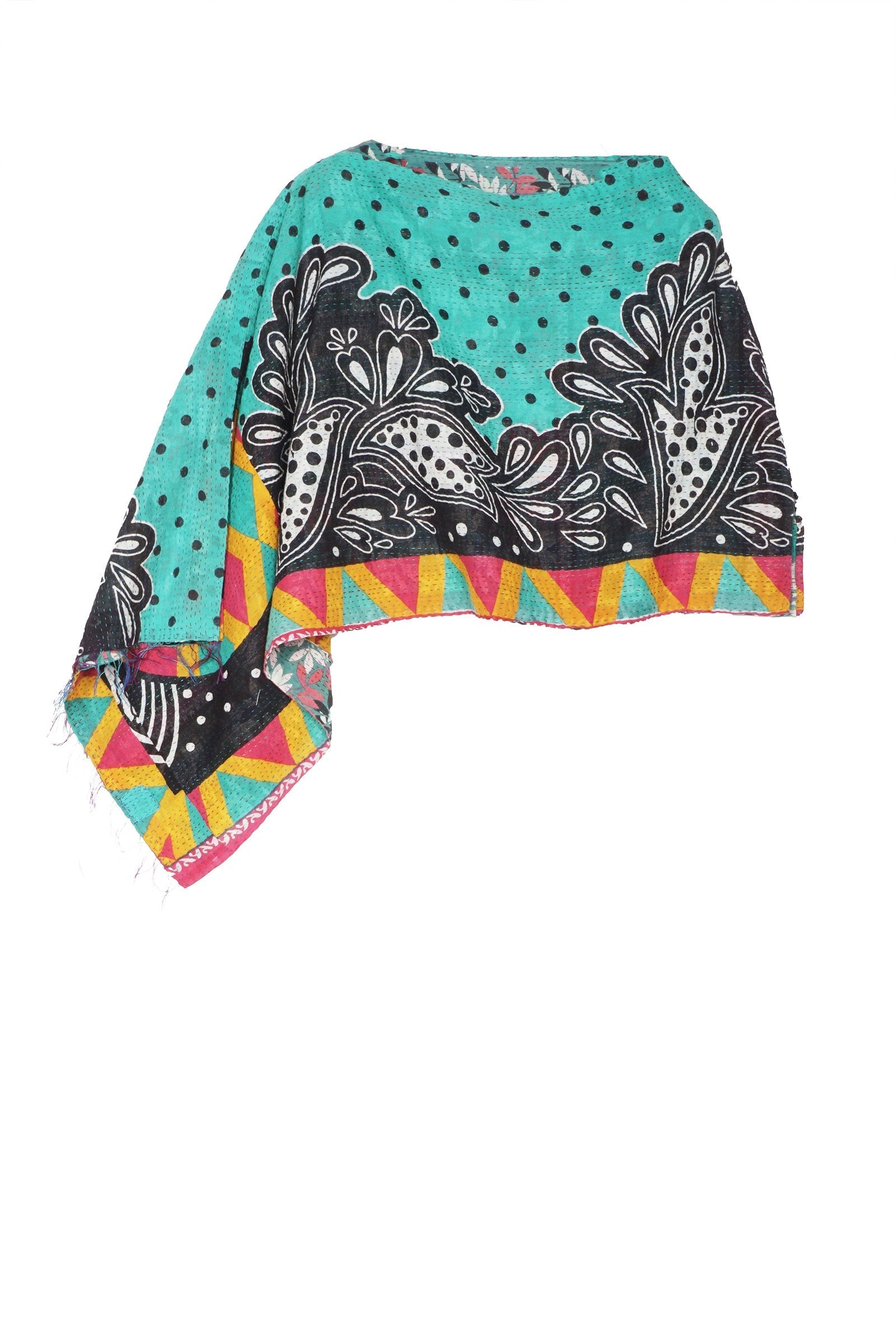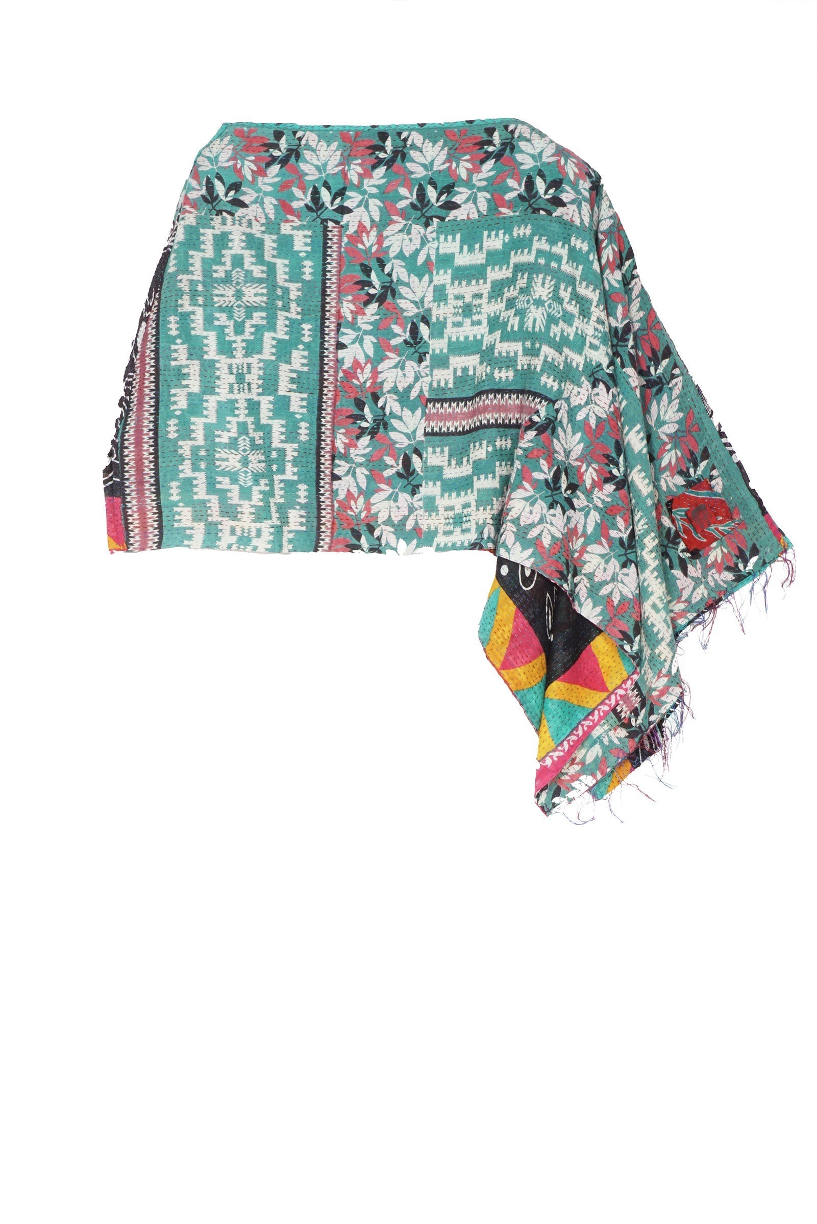 VINTAGE COTTON KANTHA CAPE - cv2806-mlt -