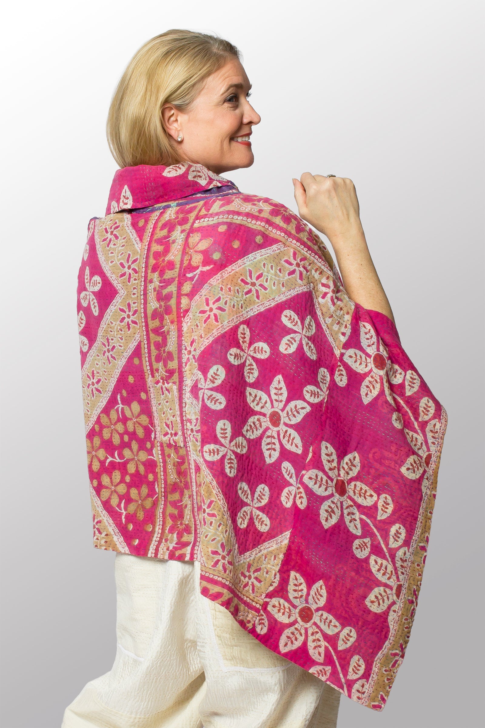 2 Layer Vintage Saris with Hand Stitches on Entire Garment - Reversible
