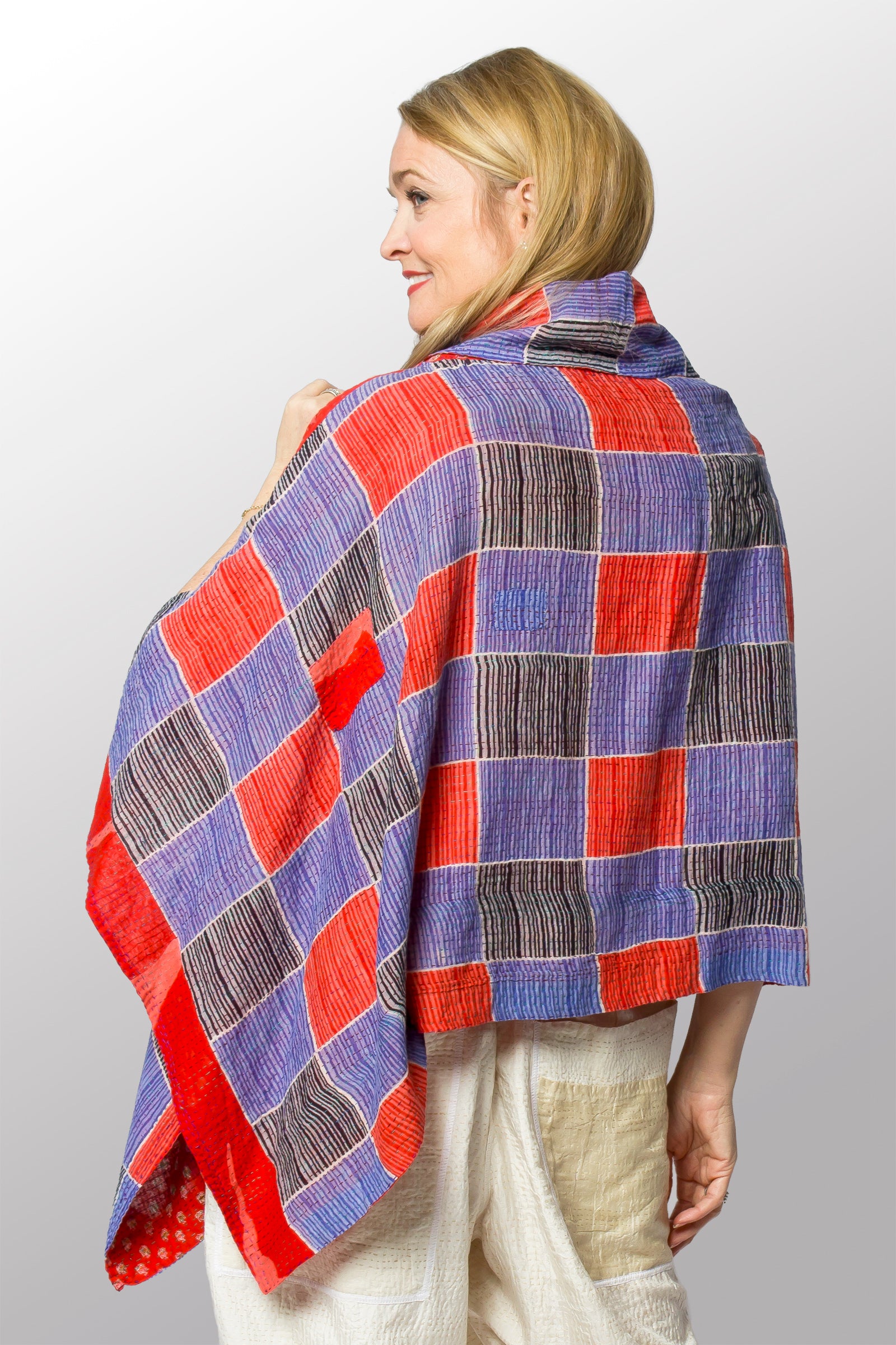 VINTAGE COTTON KANTHA COWL NECK LONG CAPE - cv2842-0005a -