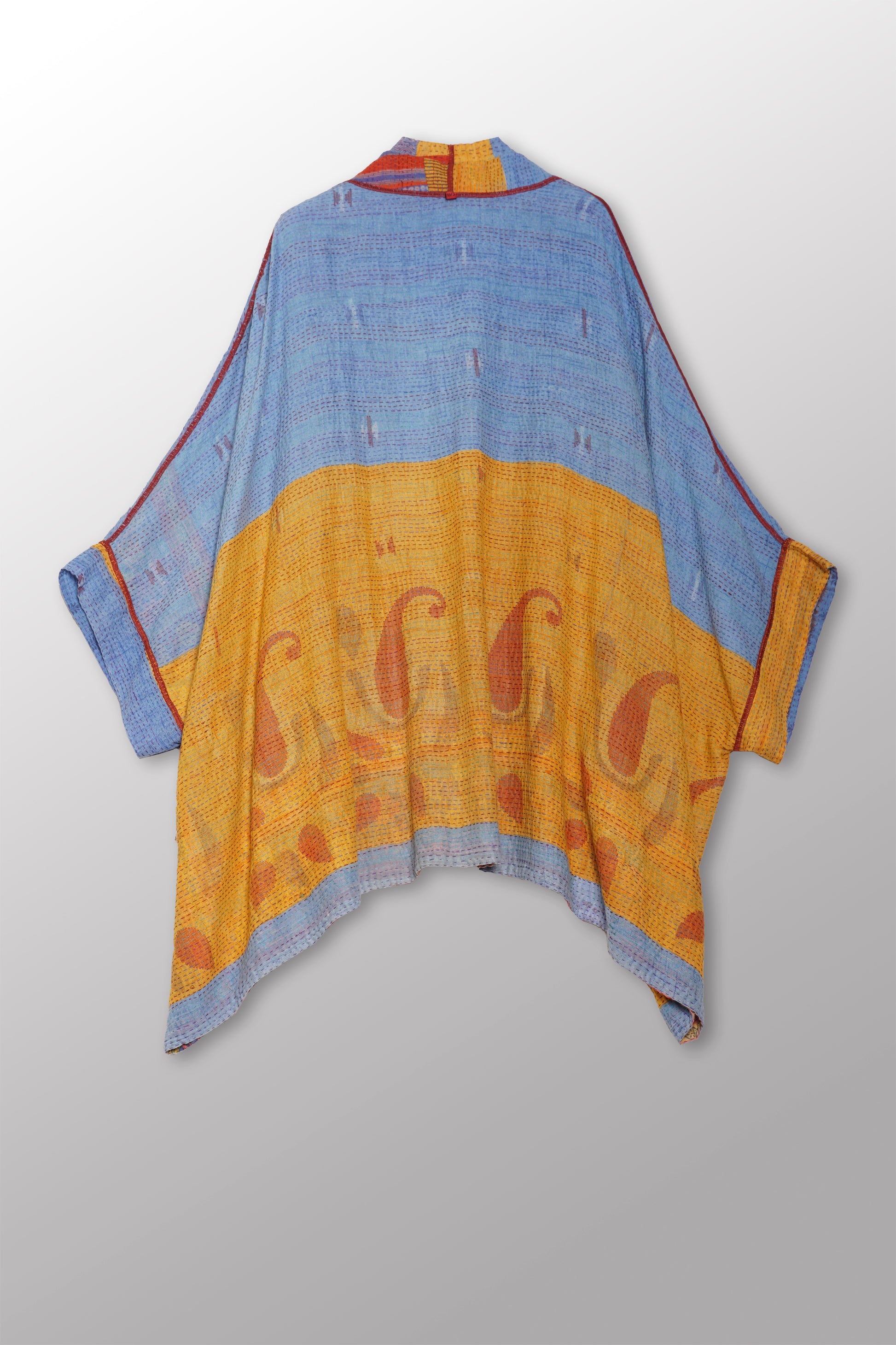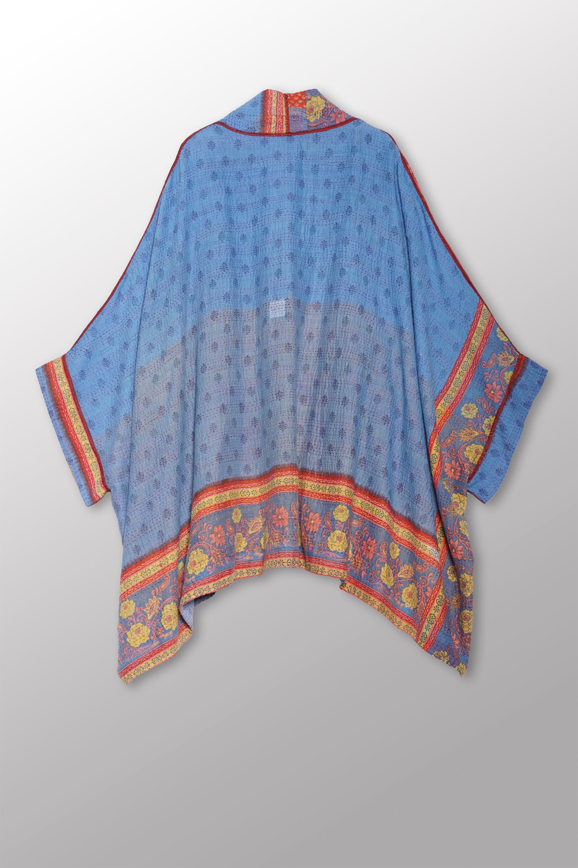 VINTAGE COTTON KANTHA DOUBLE COLLAR PONCHO - cv2323-0004a -