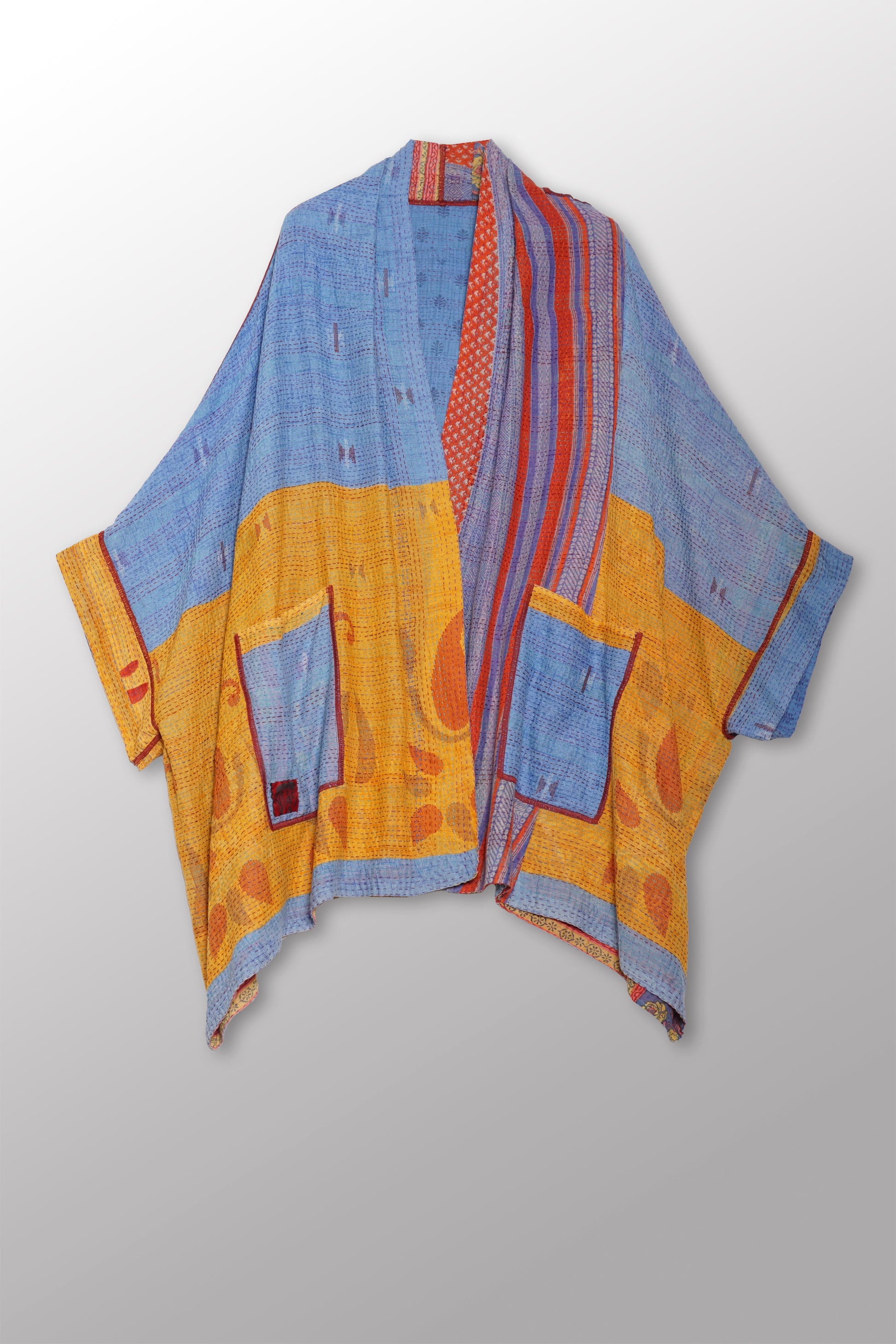 2 Layer Vintage Saris with Hand Stitches on Entire Garment - Reversible