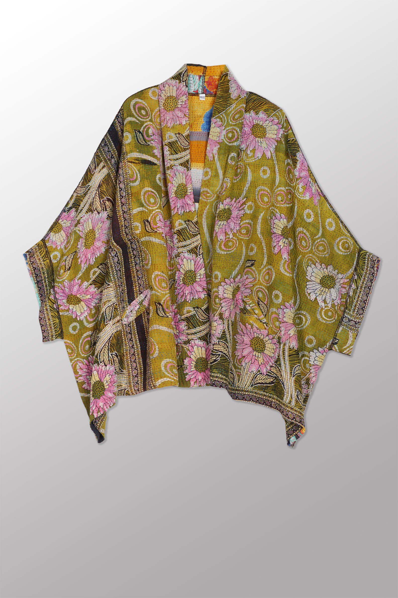 4 Layer Vintage Saris with Hand Stitches on Entire Garment - Reversible