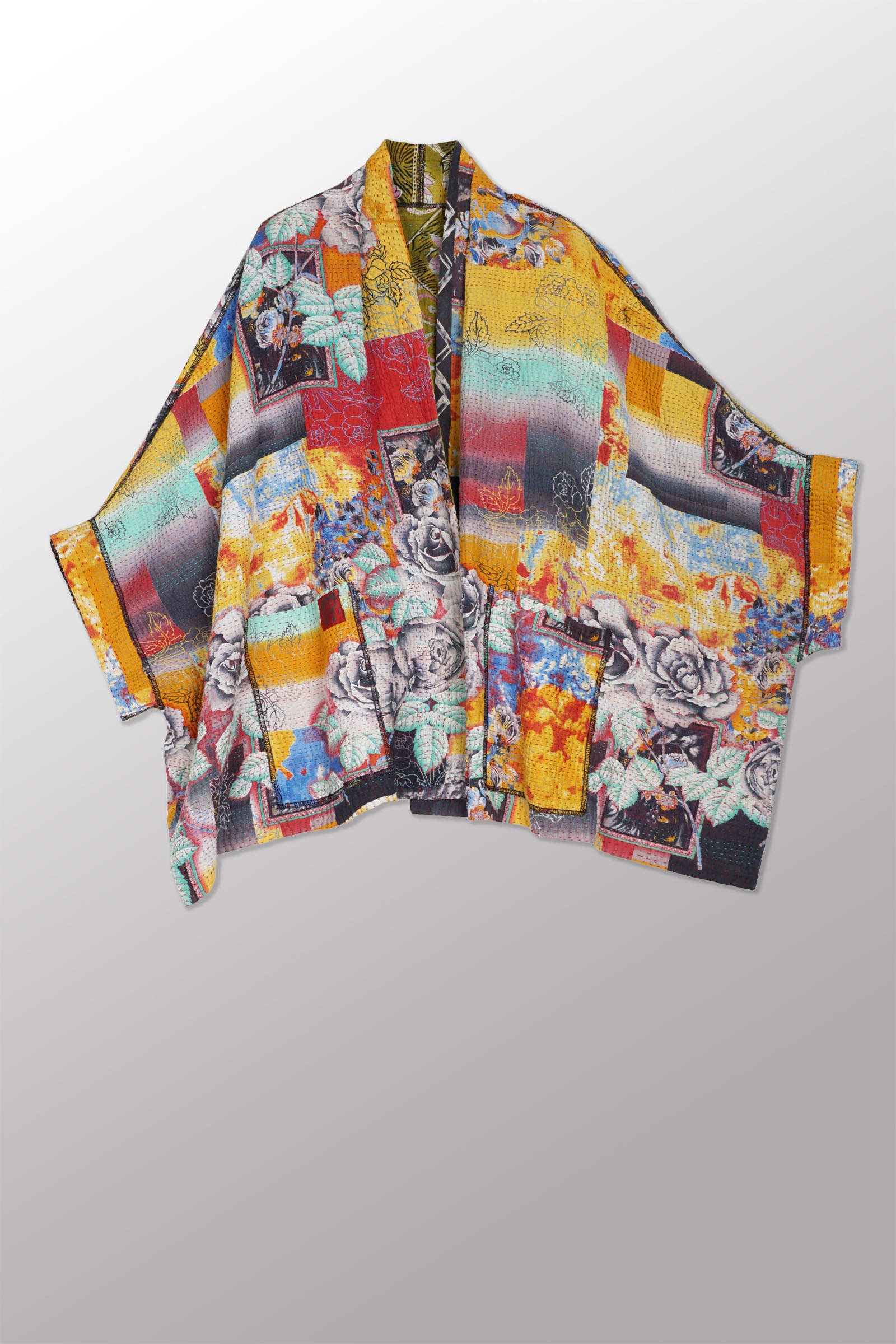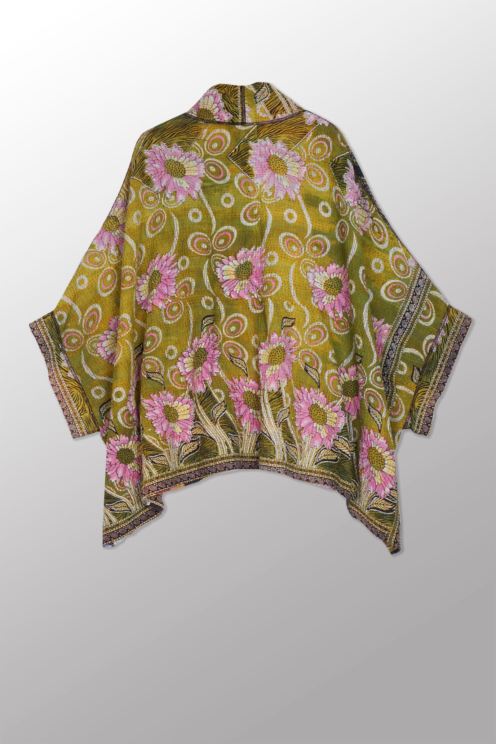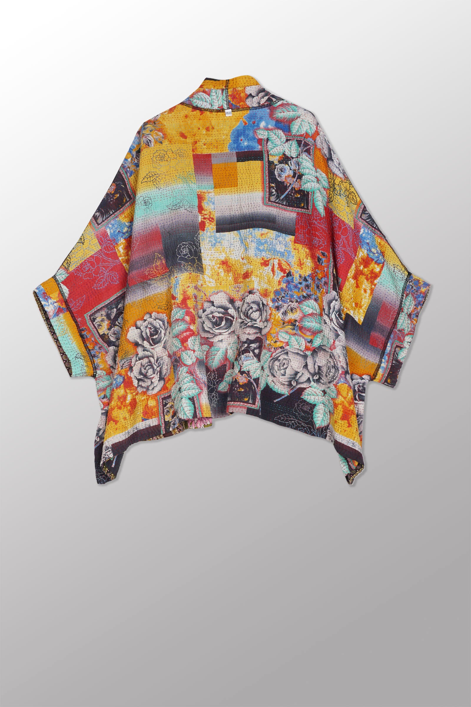 VINTAGE COTTON KANTHA DOUBLE COLLAR PONCHO - cv4323-0044a -