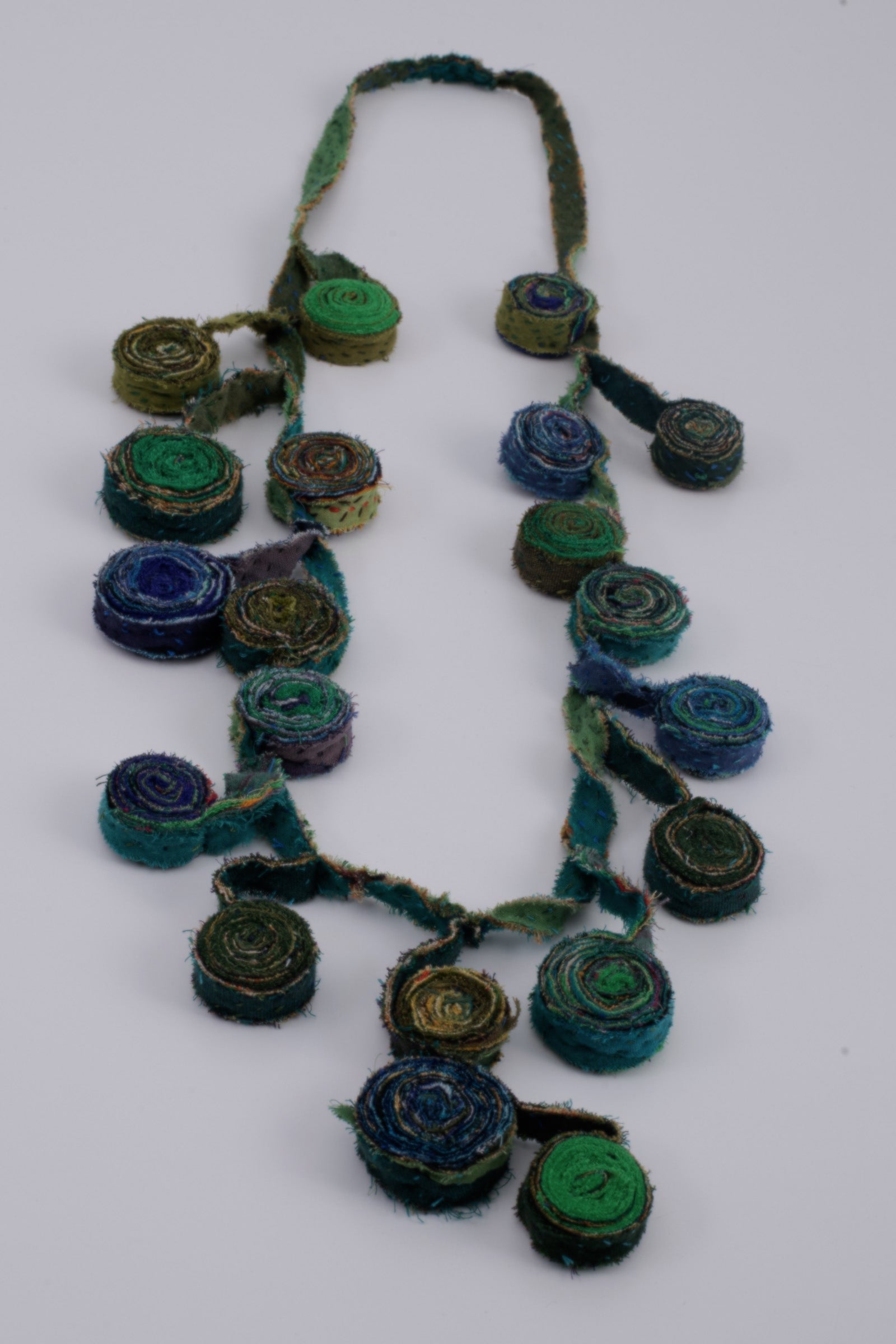 VINTAGE COTTON KANTHA EDDY LONG NECKLACE - cv2716-grn -