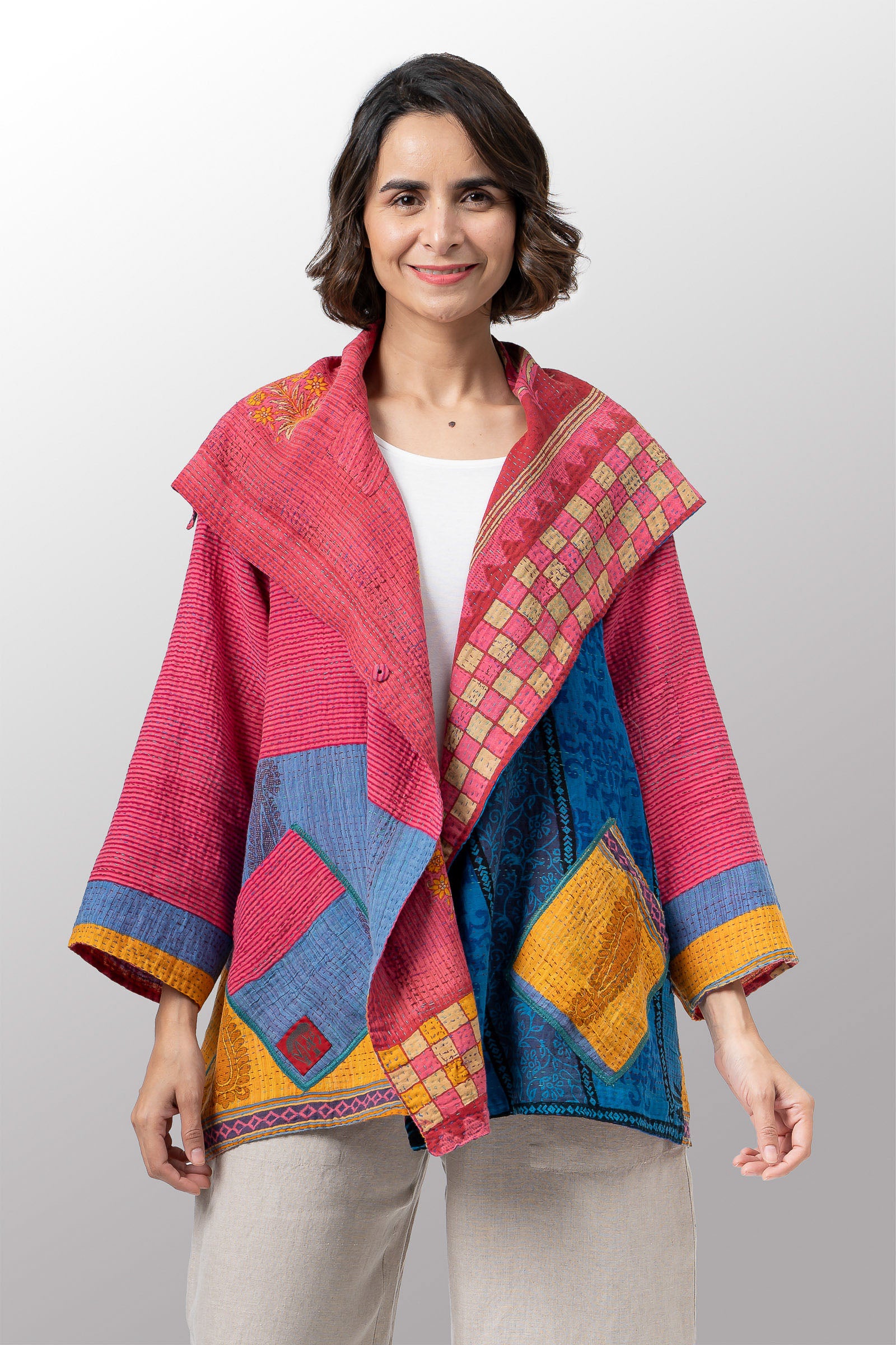 VINTAGE COTTON KANTHA FLARE JKT - cv2010-0067a -