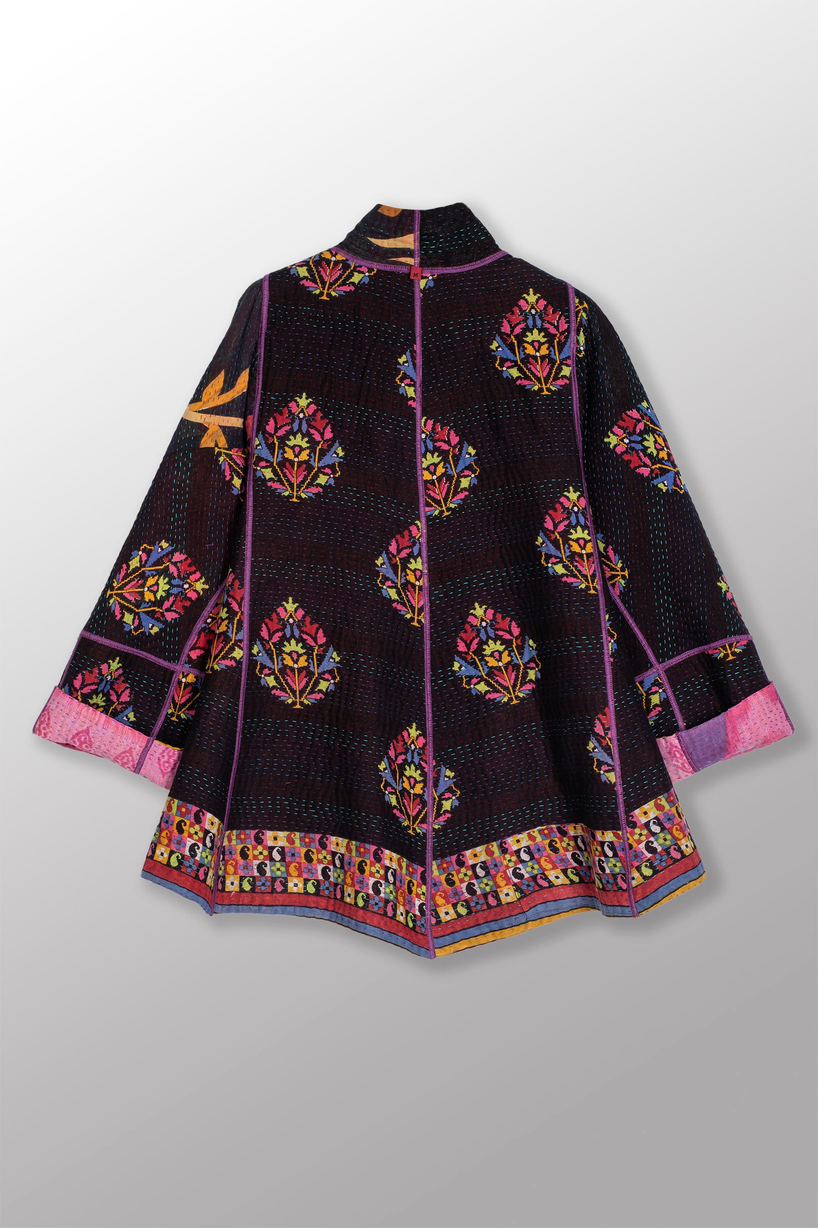 VINTAGE COTTON KANTHA FLARE SHORT JKT - cv4011-0128m -