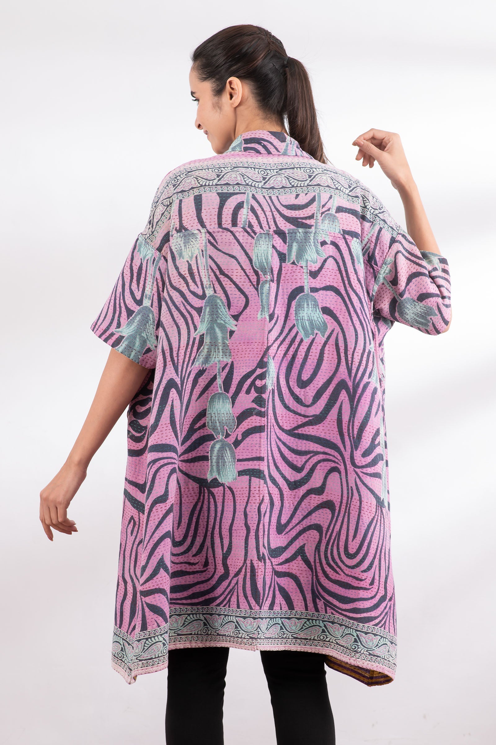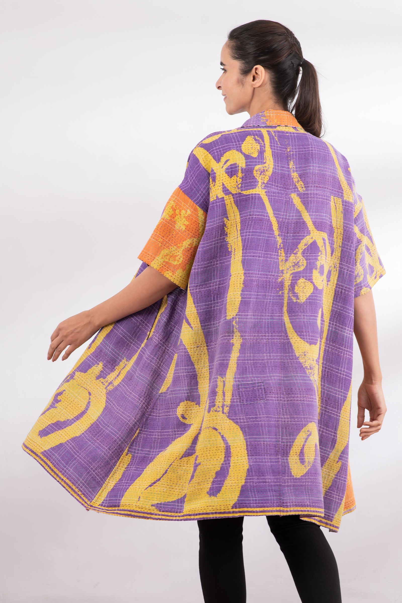 2 Layer Vintage Saris with Hand Stitches on Entire Garment - Reversible