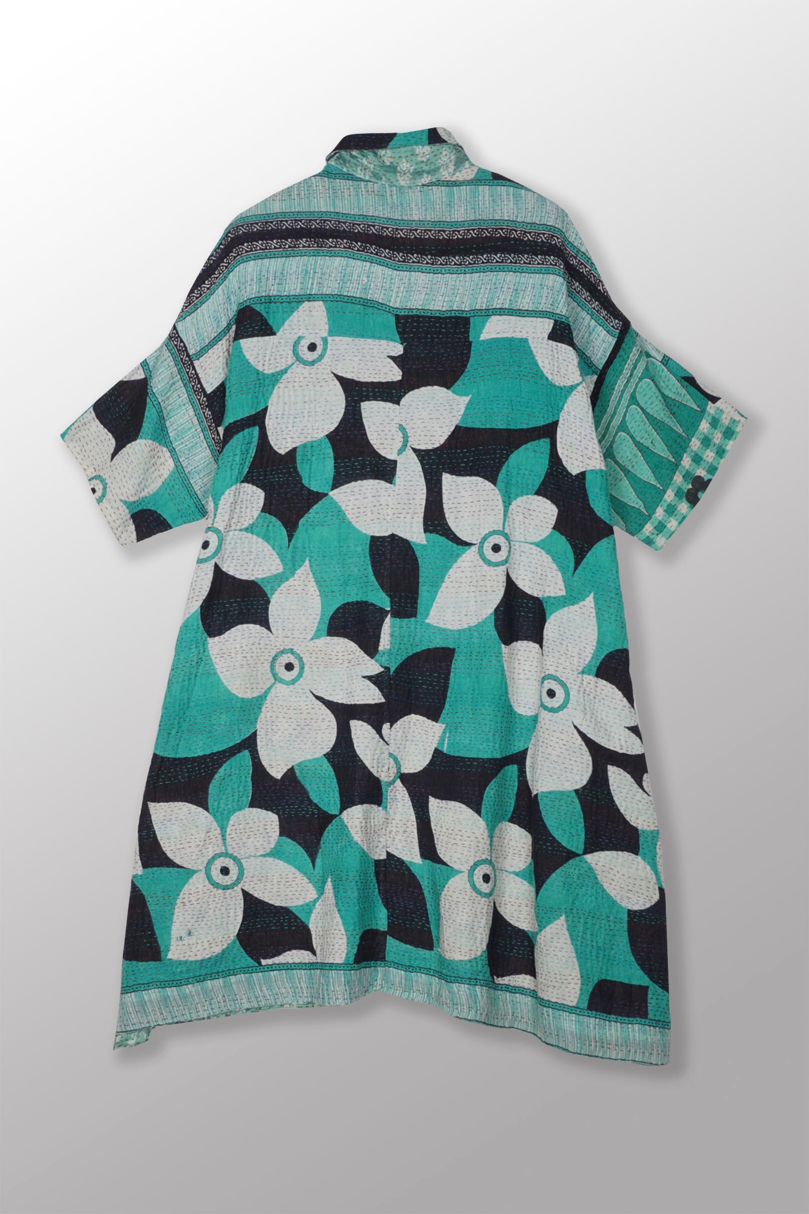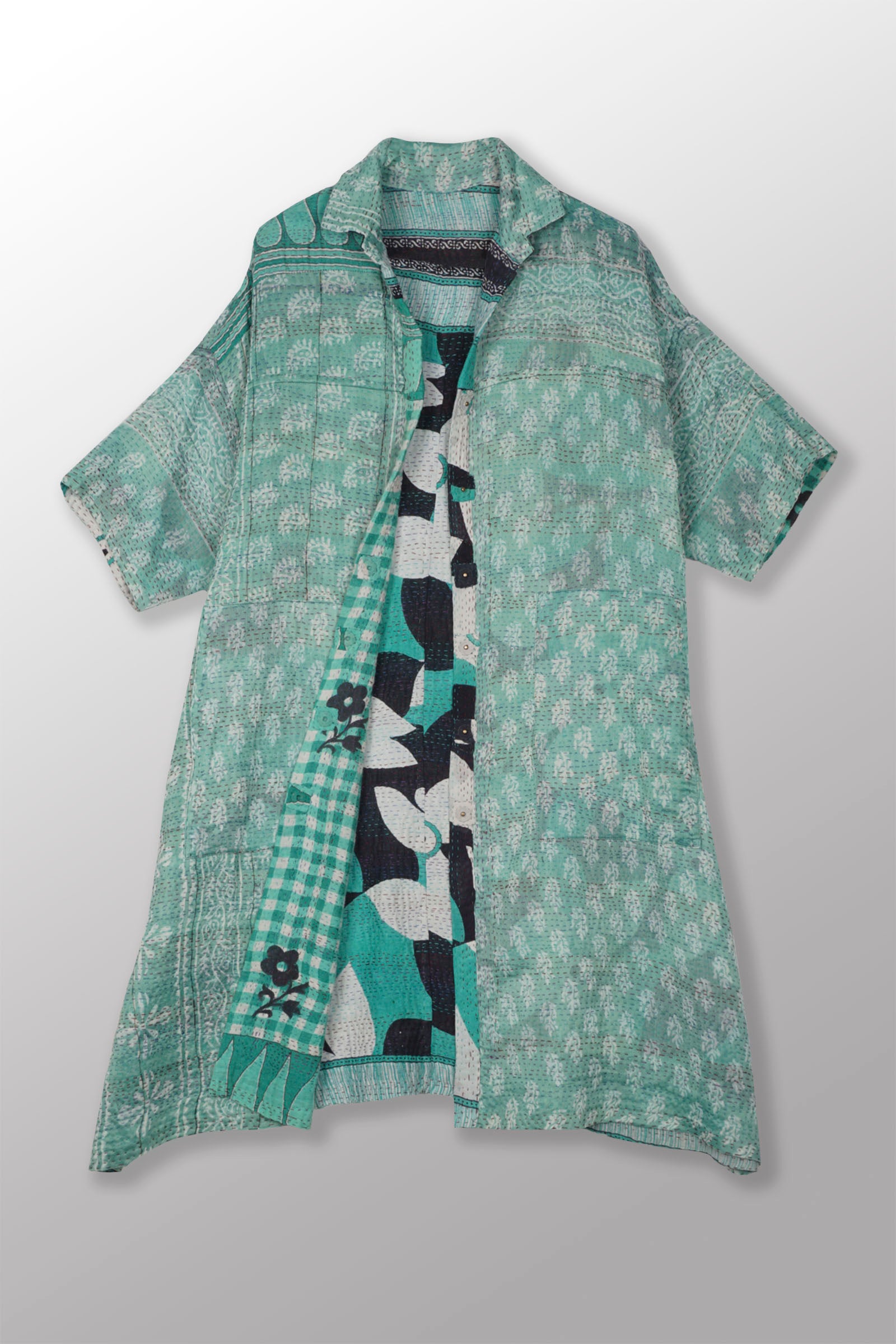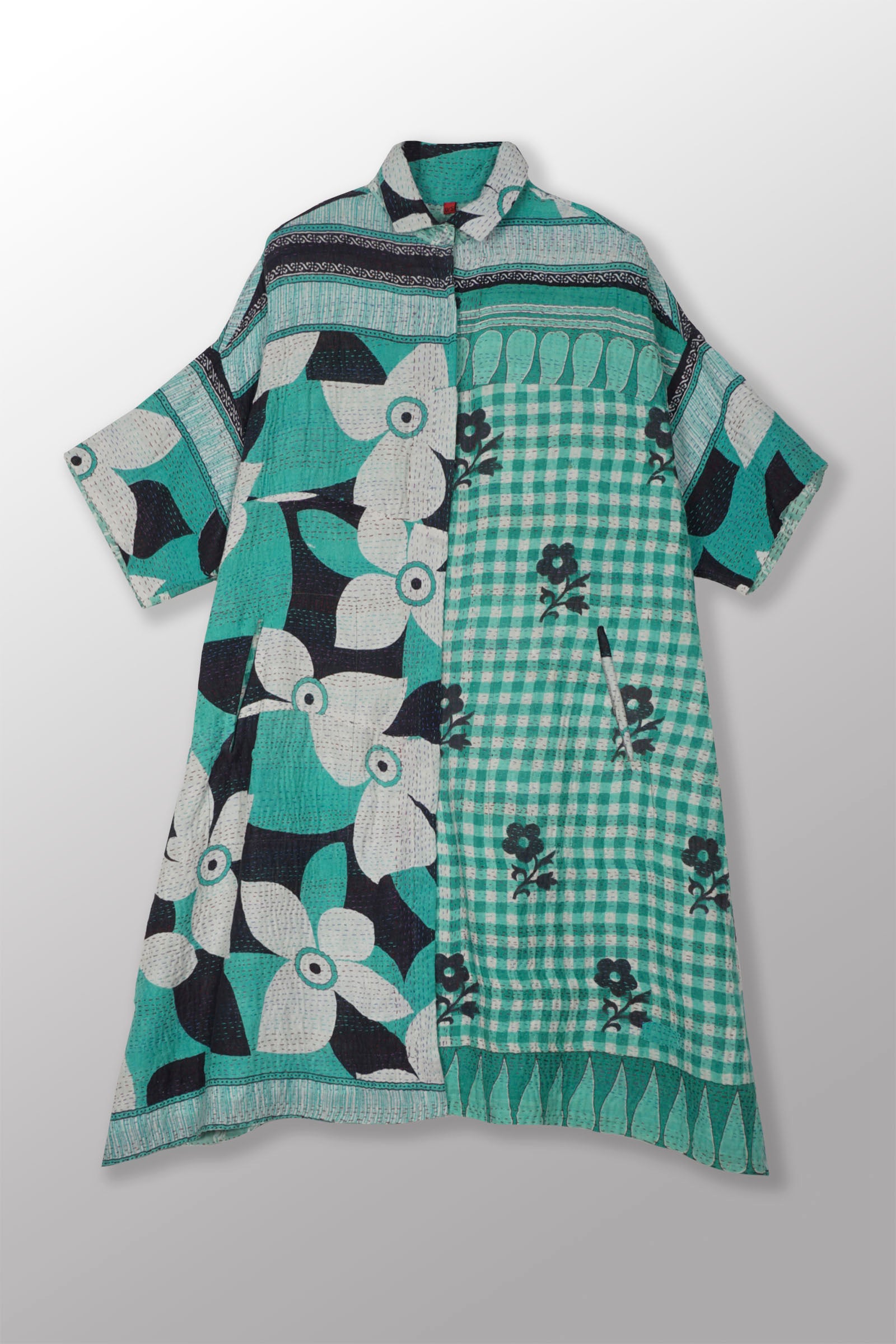 VINTAGE COTTON KANTHA HALF SLV. SHIRT DRESS - cv2429-0016a -