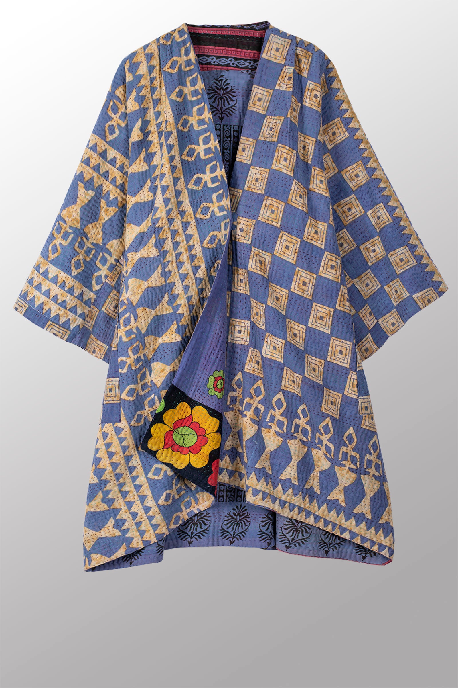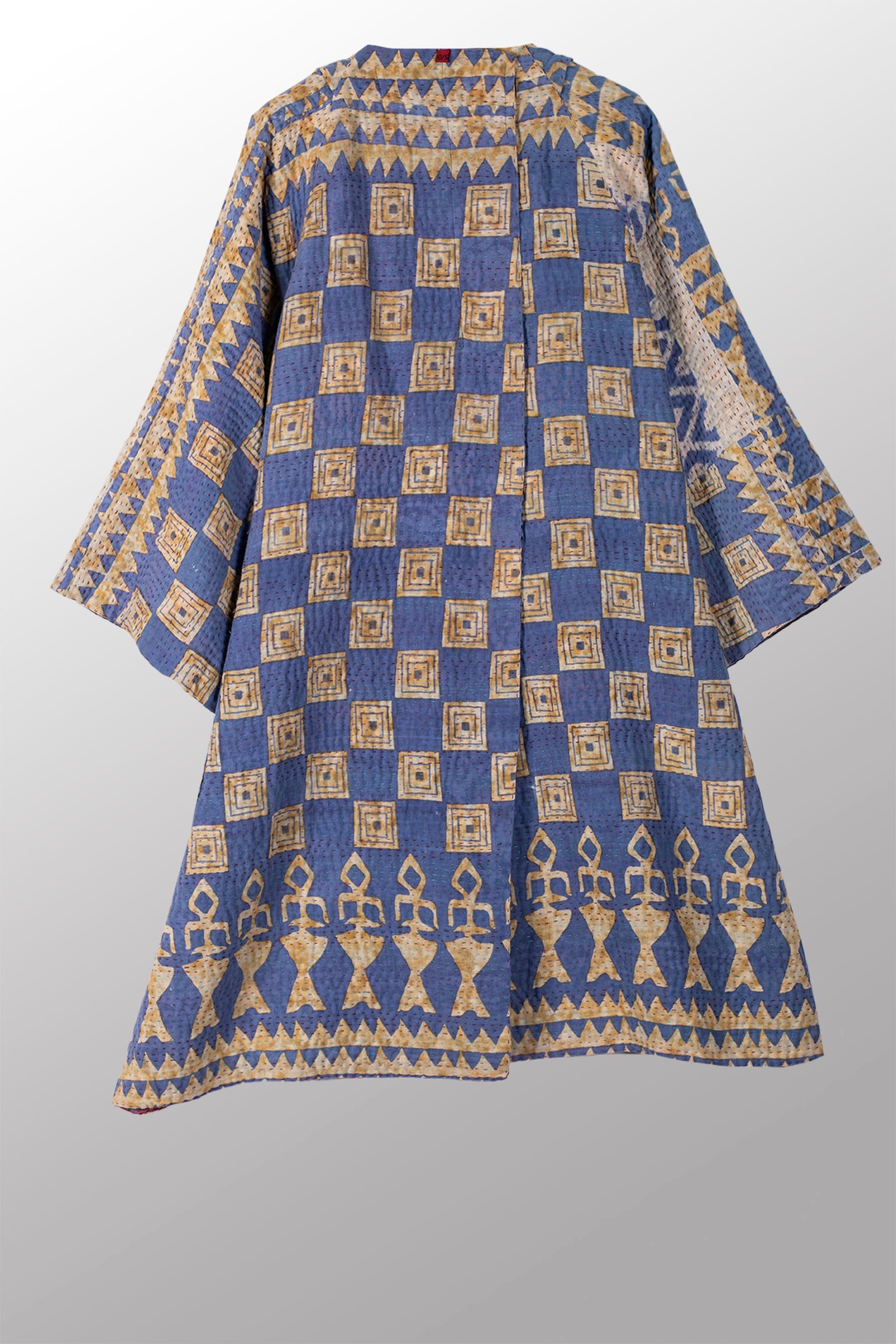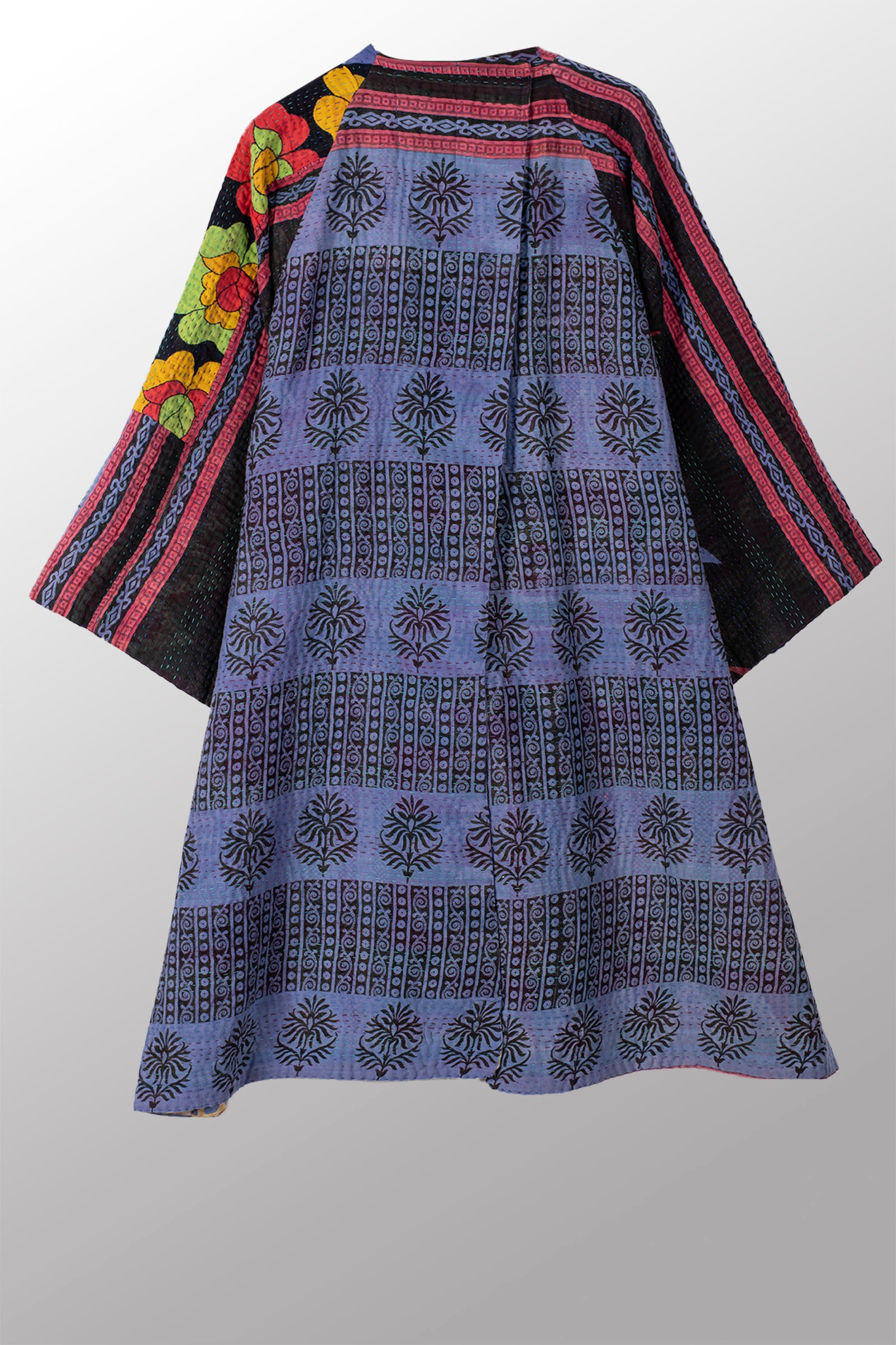VINTAGE COTTON KANTHA KIMONO DUSTER - cv4317-0034a -