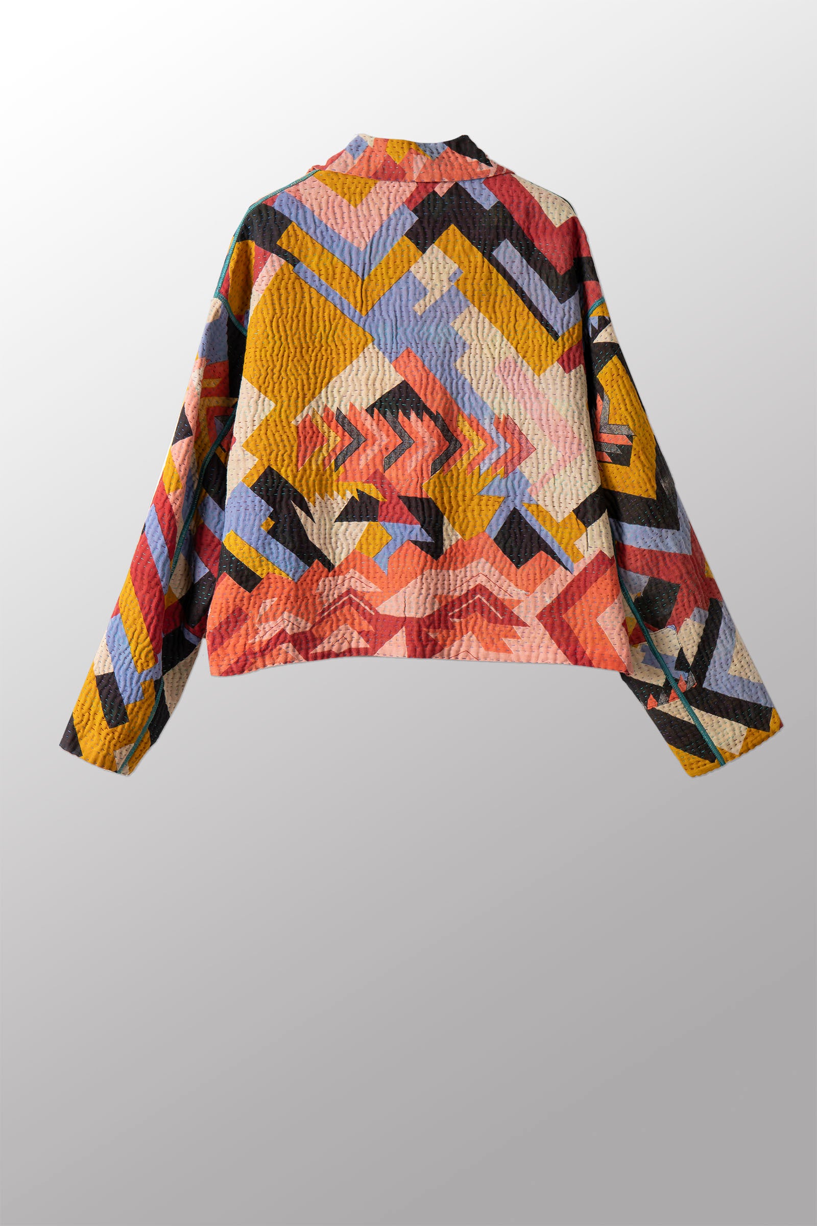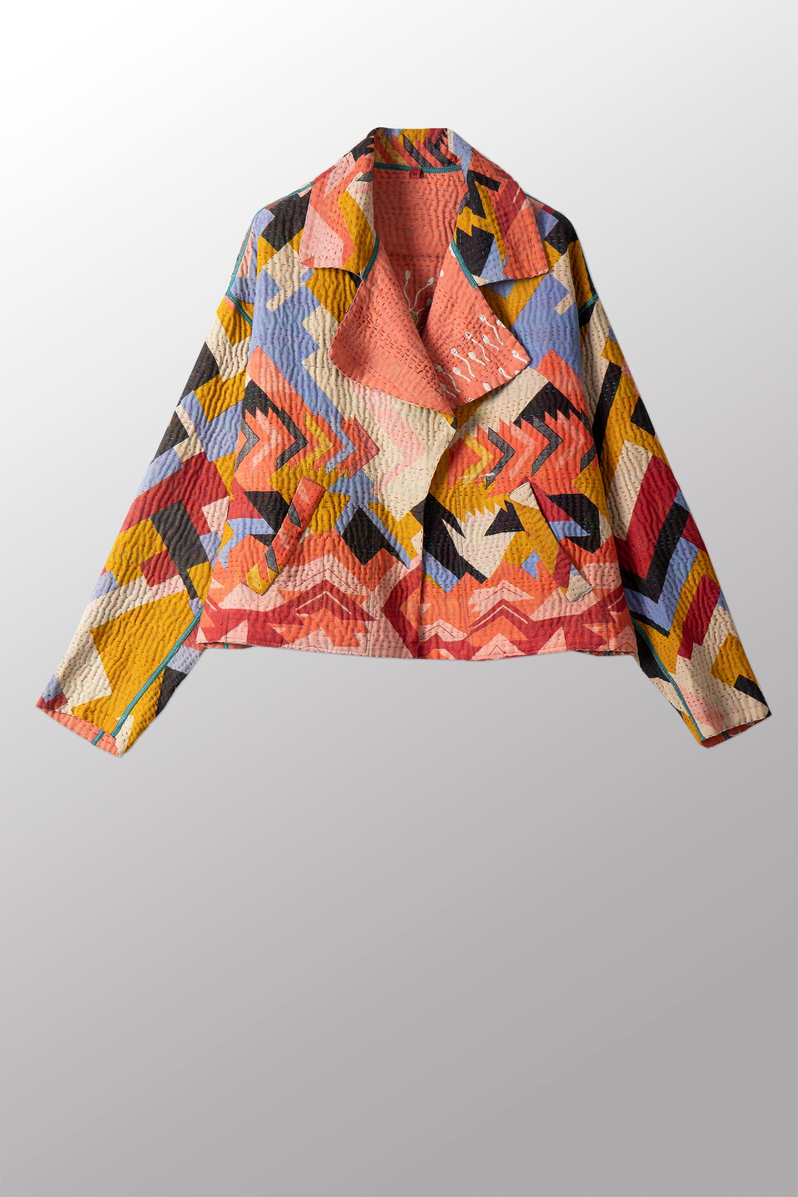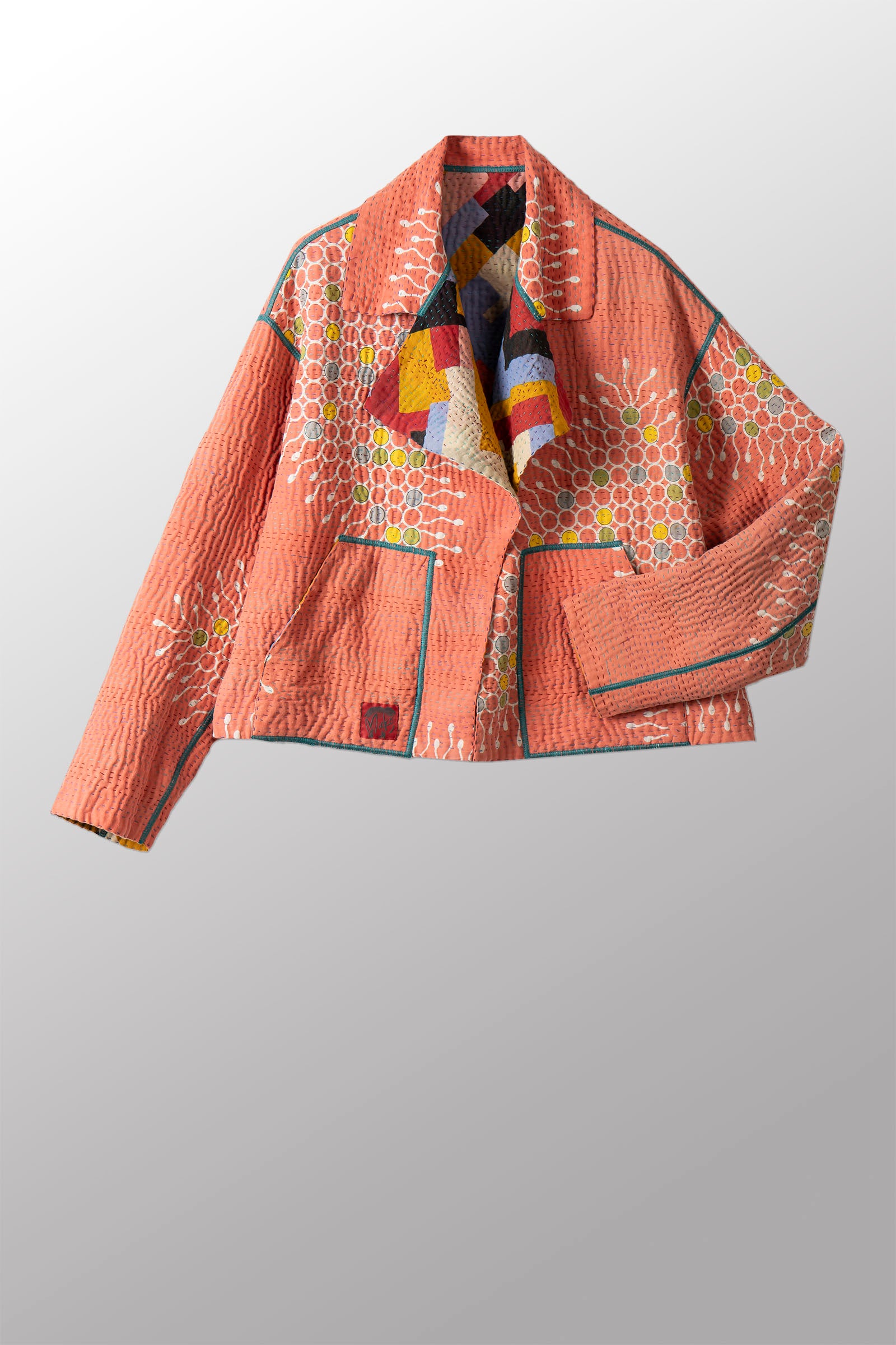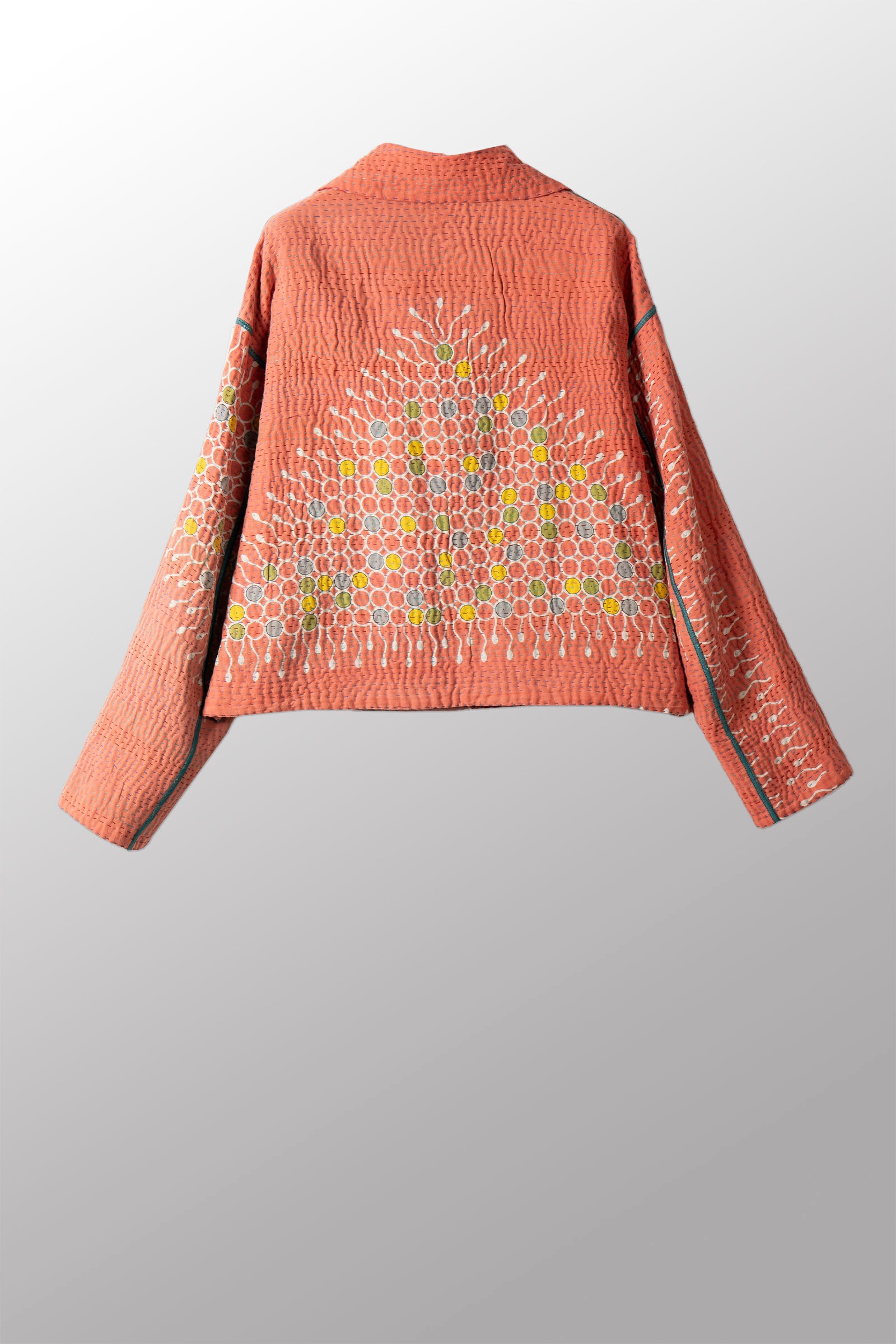 VINTAGE COTTON KANTHA LAPELED SINGLE SHORT JACKET - cv4087-0002m -