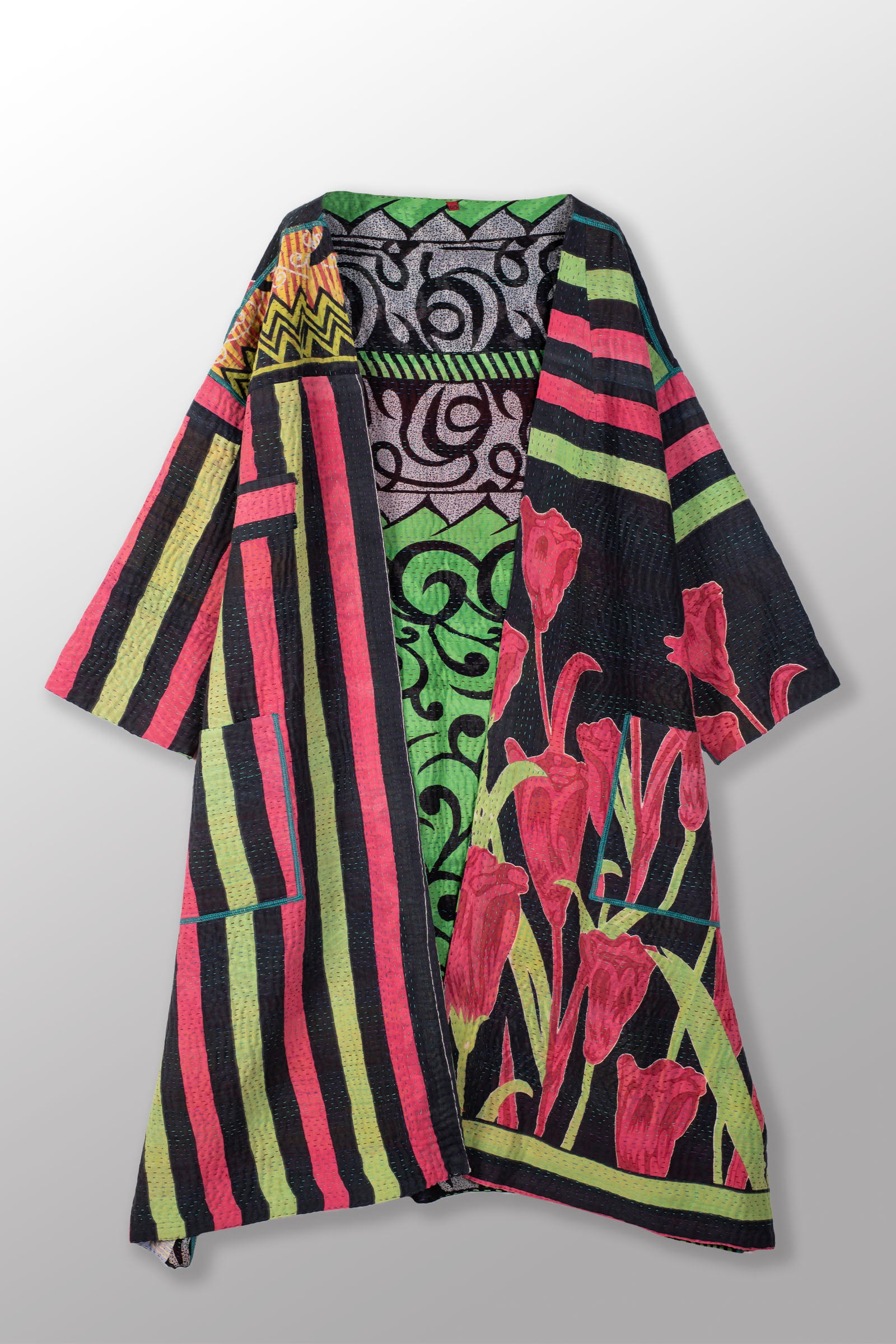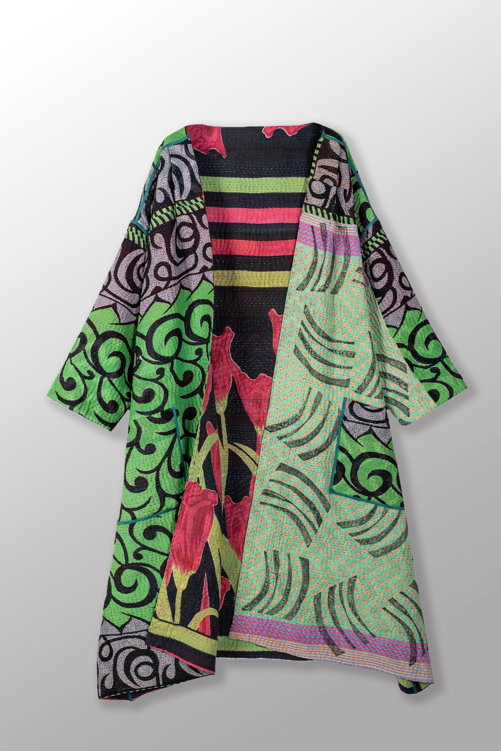 VINTAGE COTTON KANTHA LONG DUSTER - cv4328-0007a -