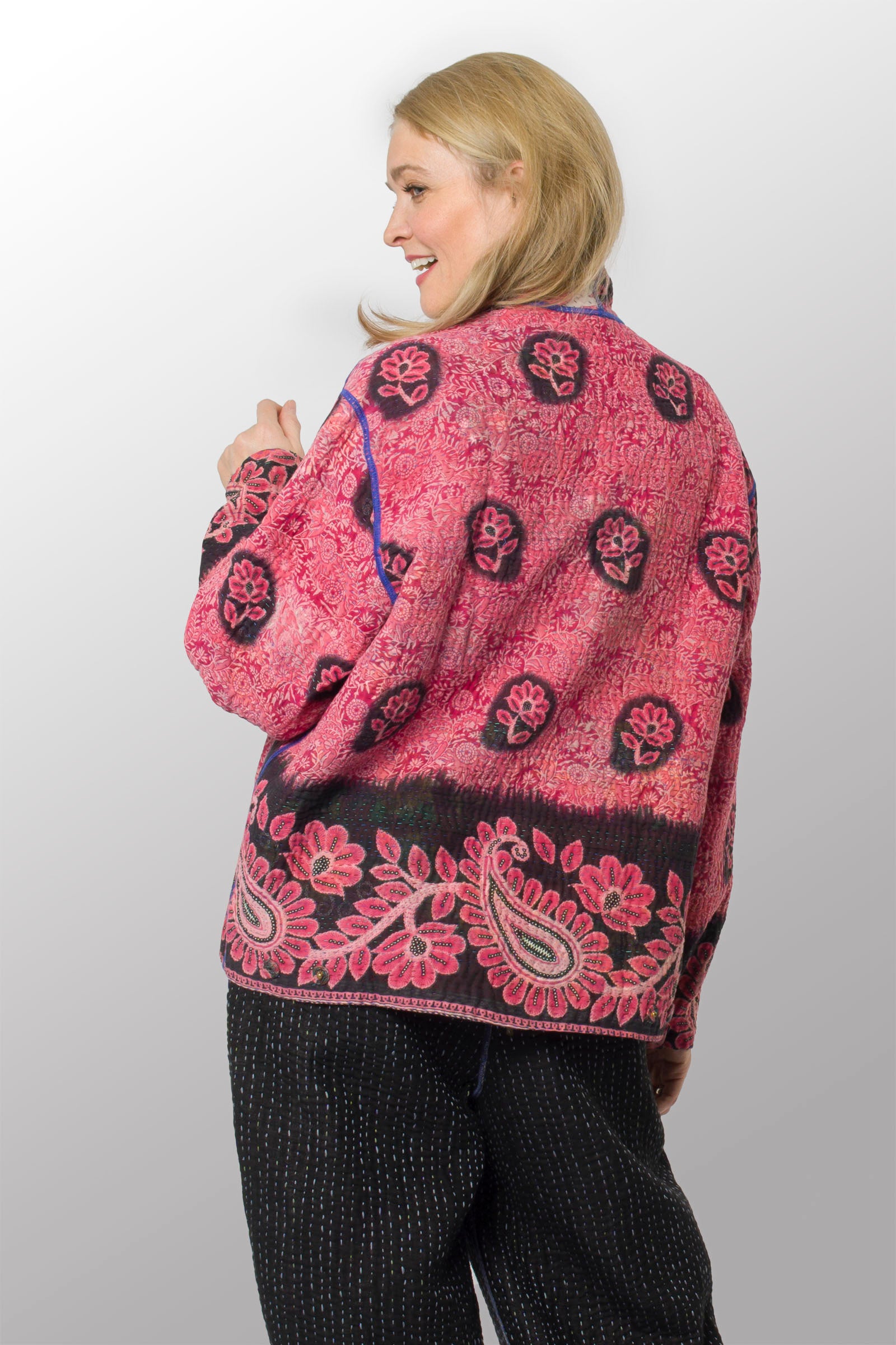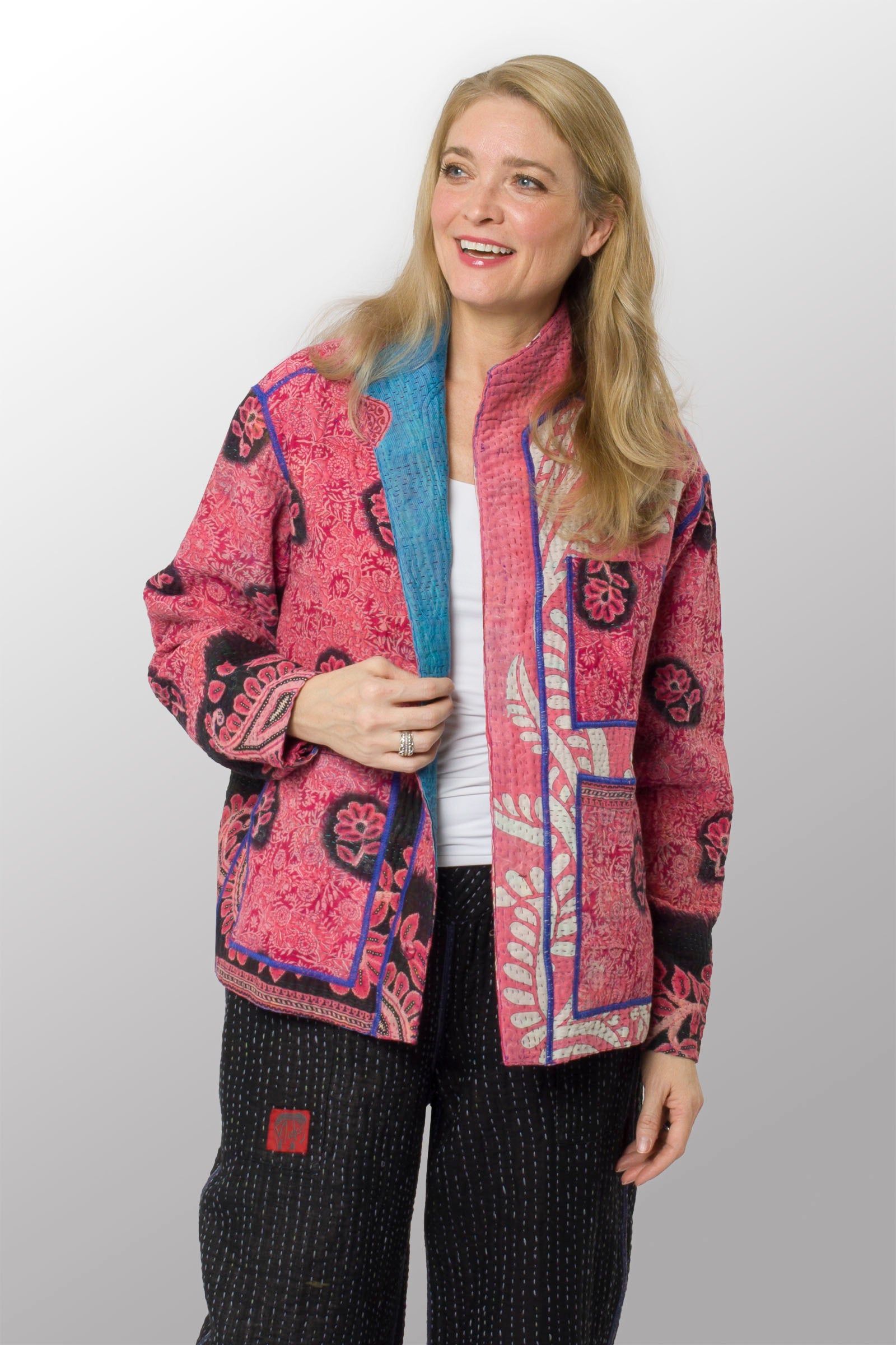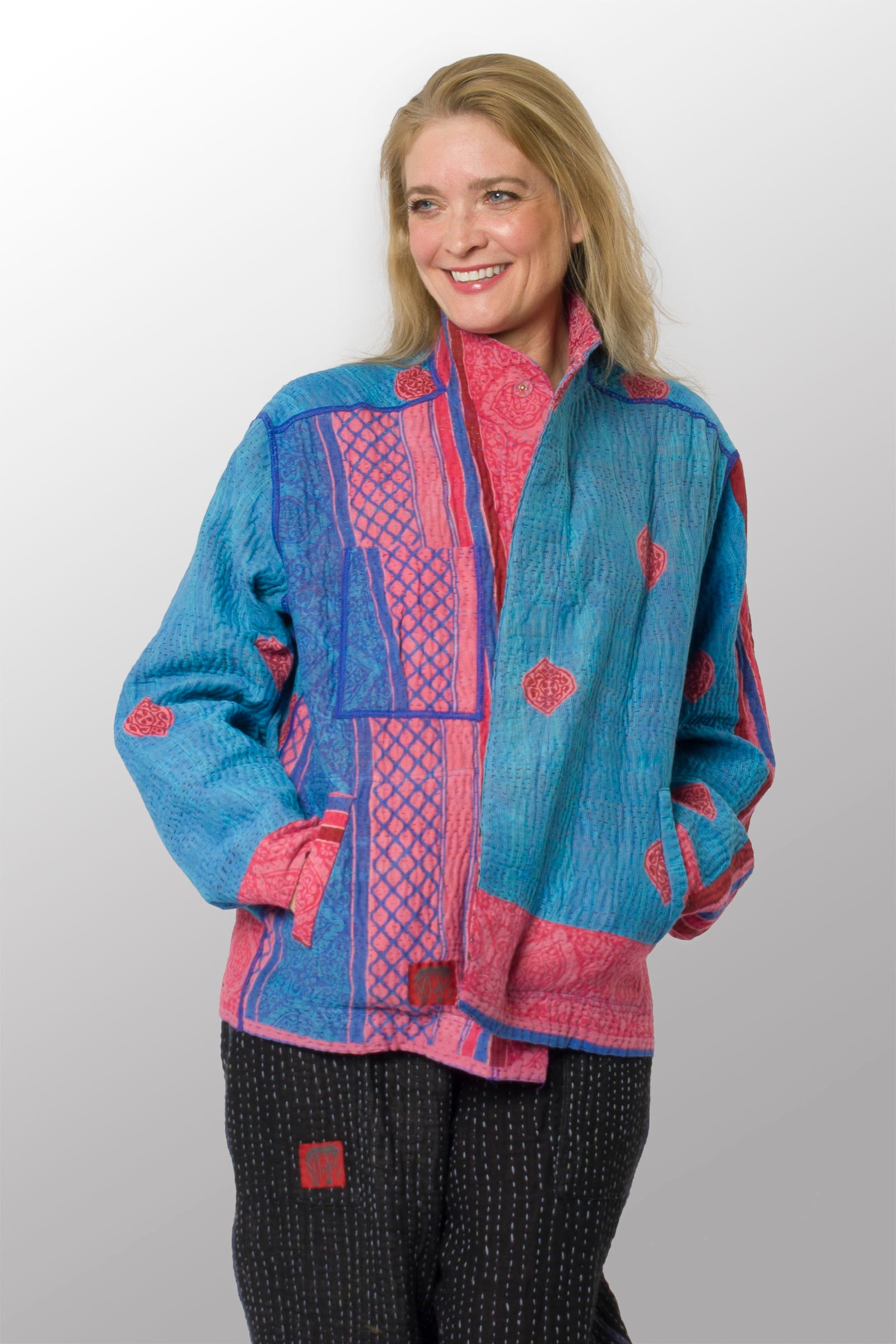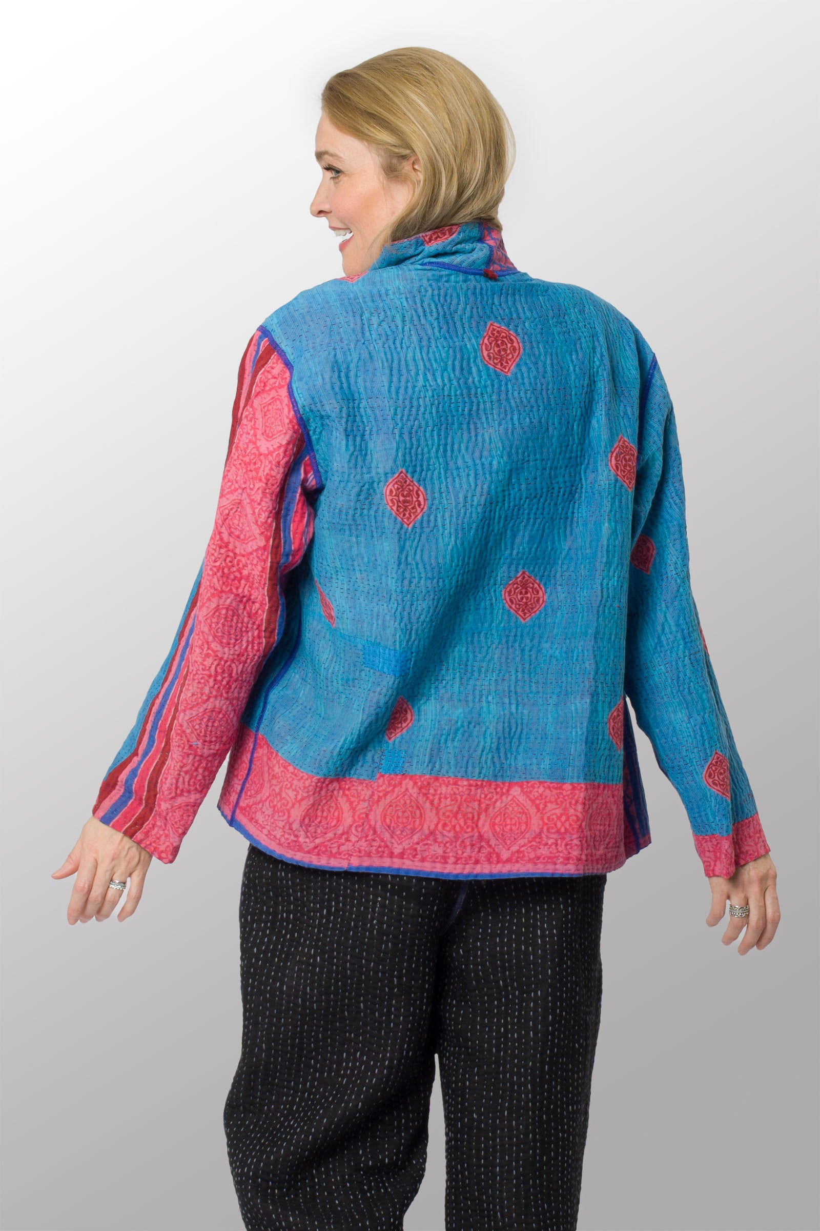 4 Layer Vintage Saris with Hand Stitches on Entire Garment - Reversible