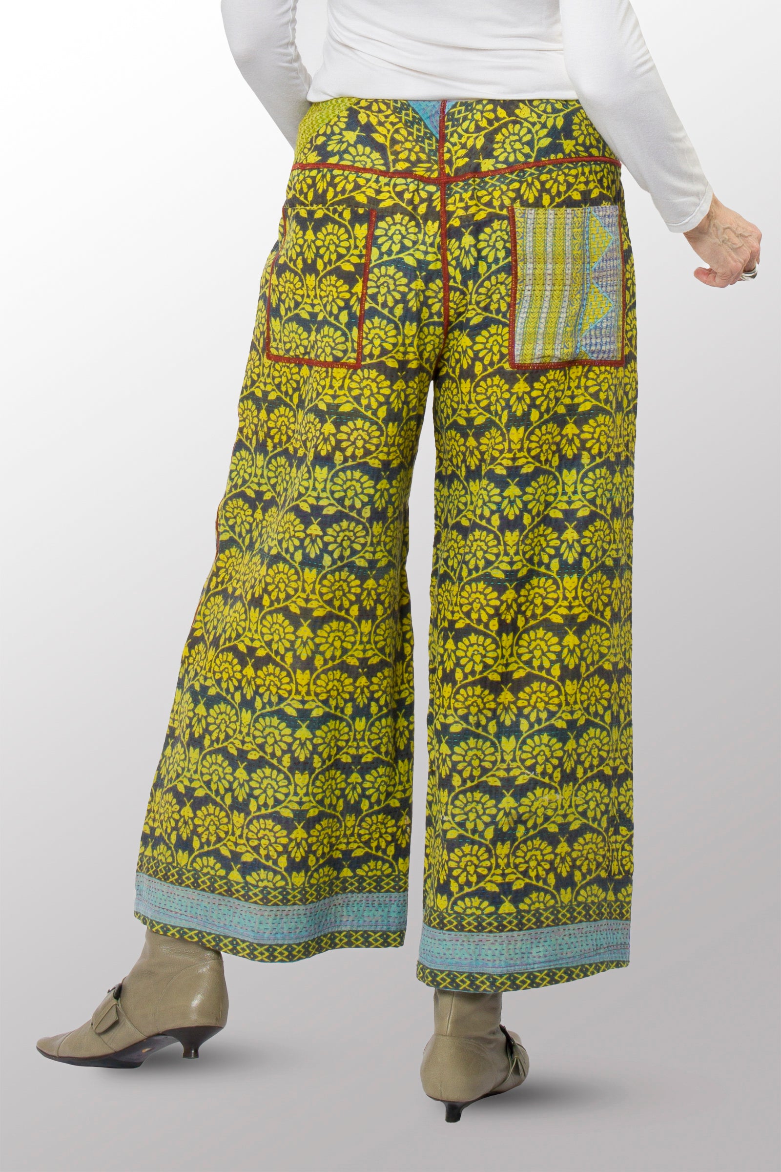 VINTAGE COTTON KANTHA MID RISE WIDE LEG PANTS - cv2665-0003m -