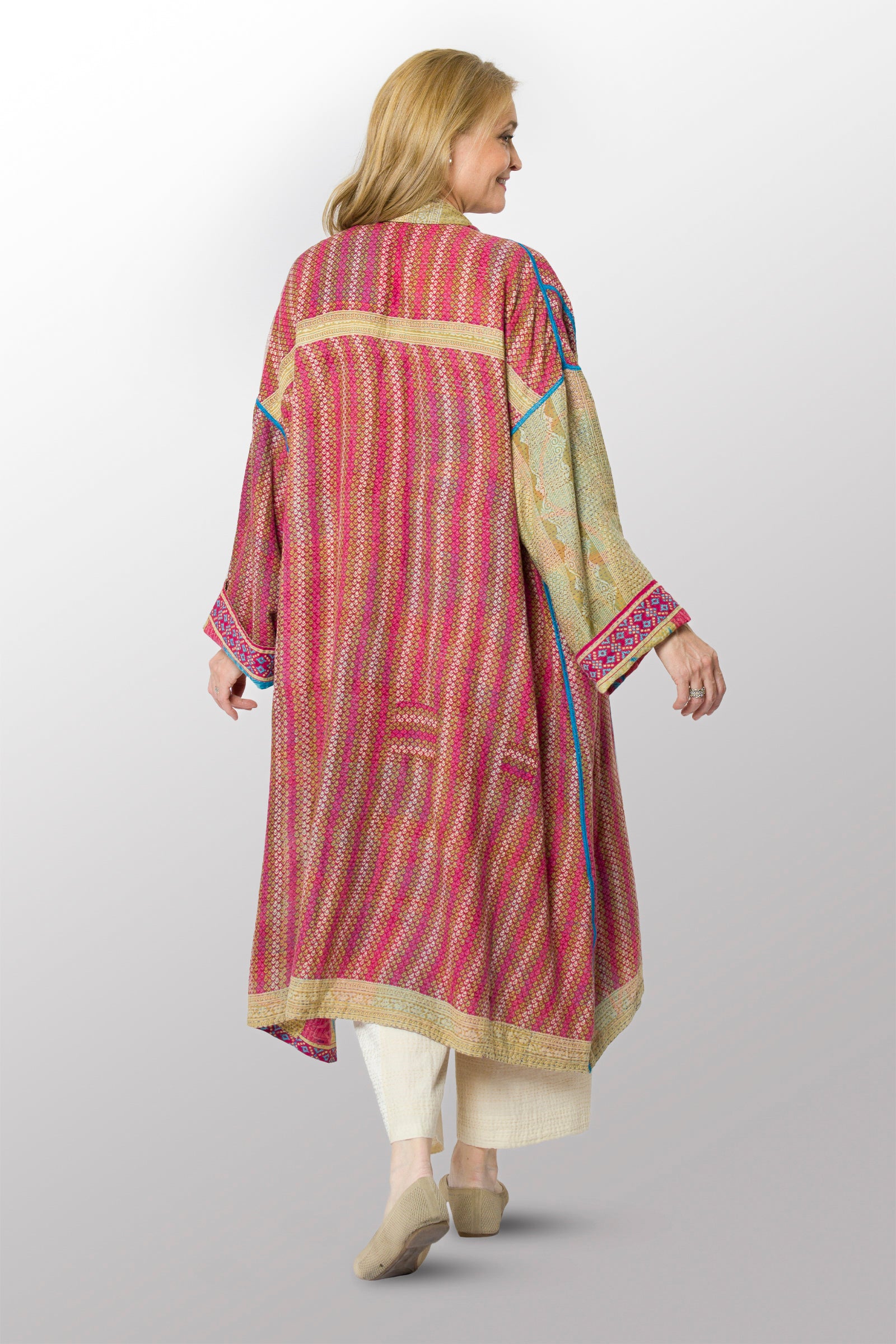 2 Layer Vintage Saris with Hand Stitches on Entire Garment - Reversible