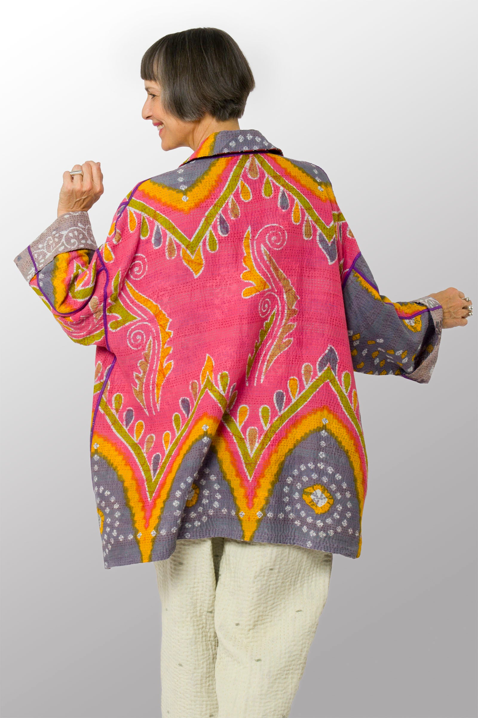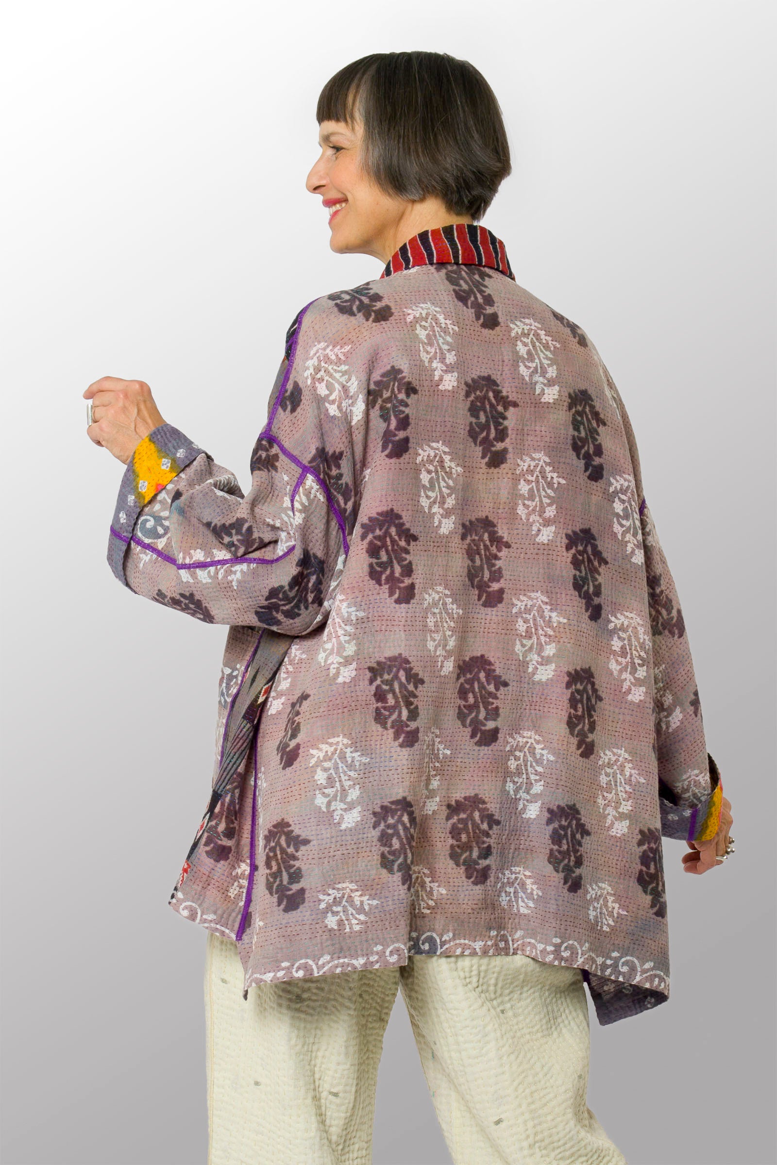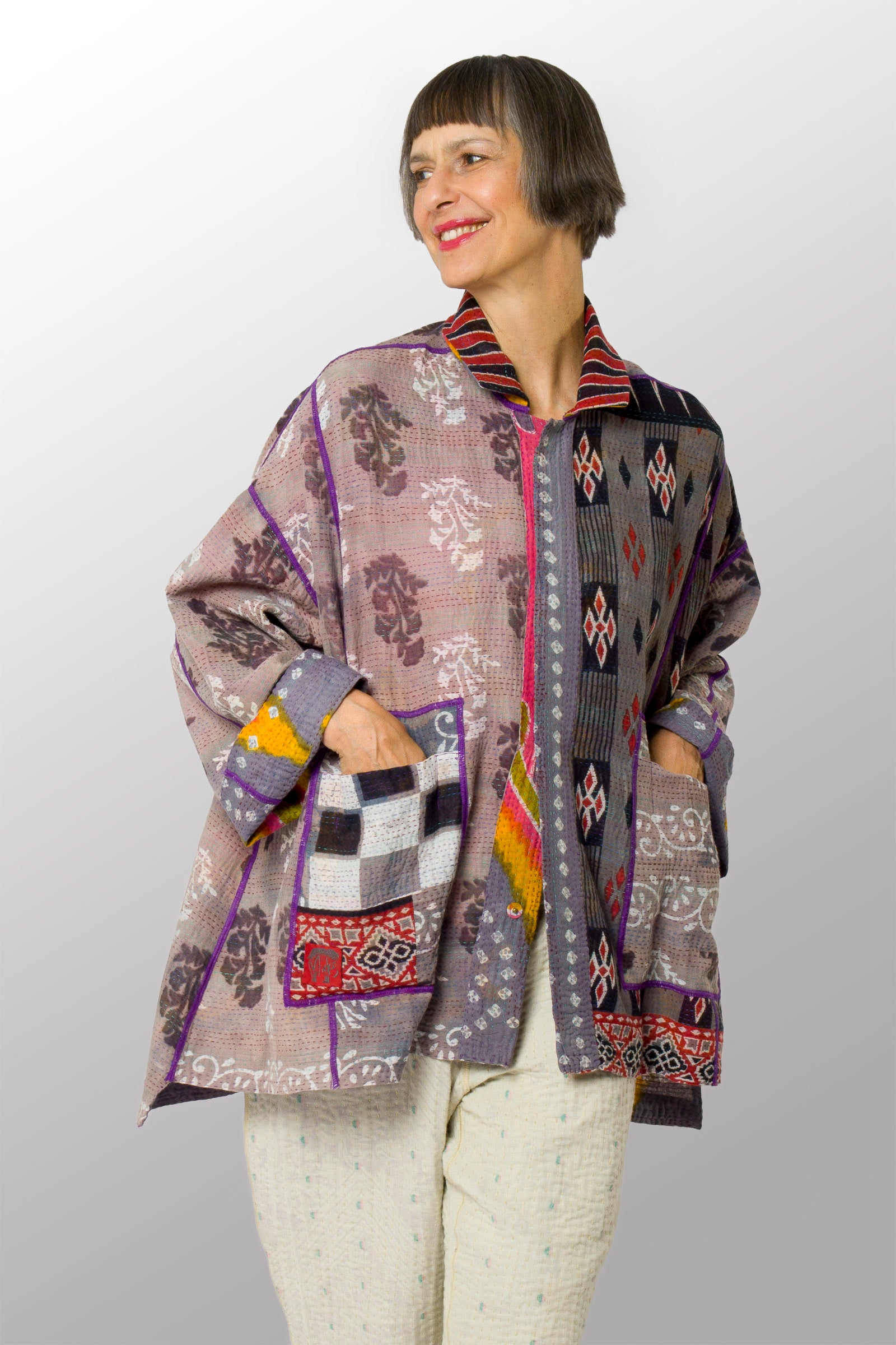 VINTAGE COTTON KANTHA OVERSIZED MINI COAT - cv2332-0007a -