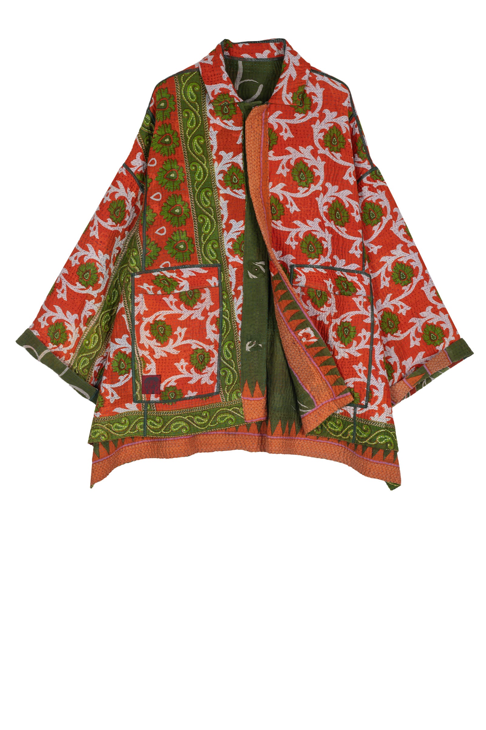 4 Layer Vintage Saris with Hand Stitches on Entire Garment - Reversible