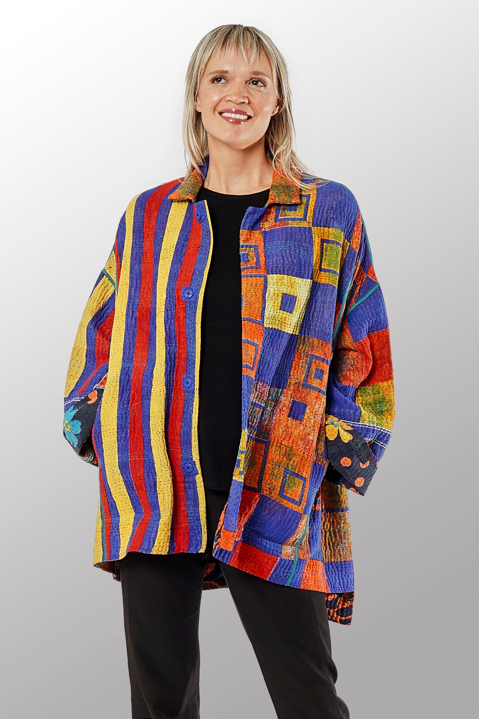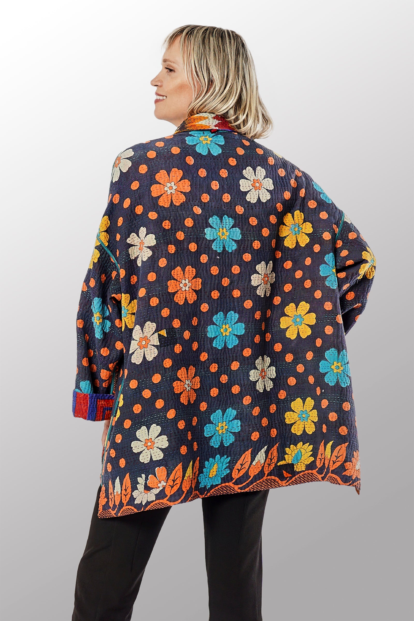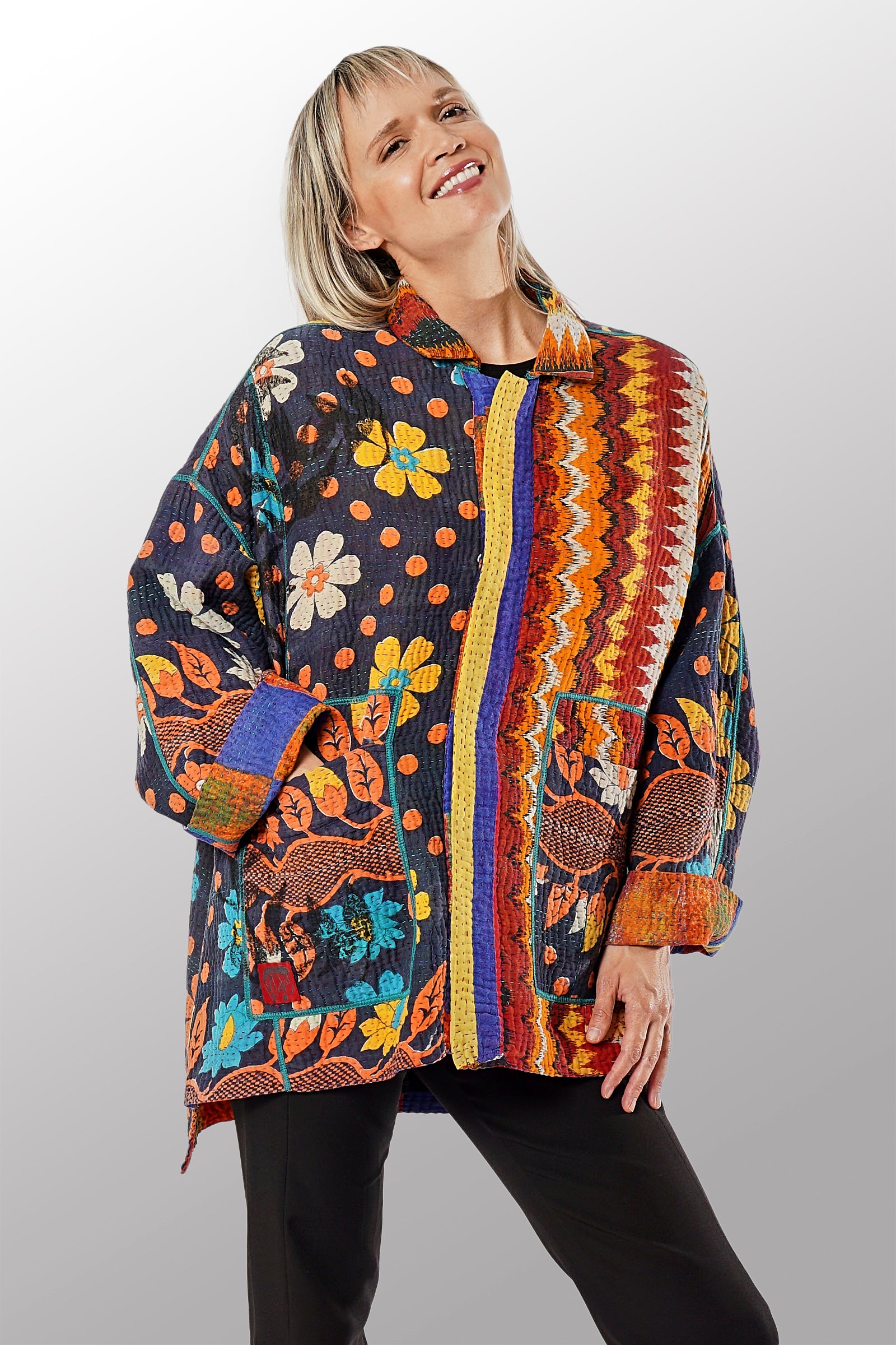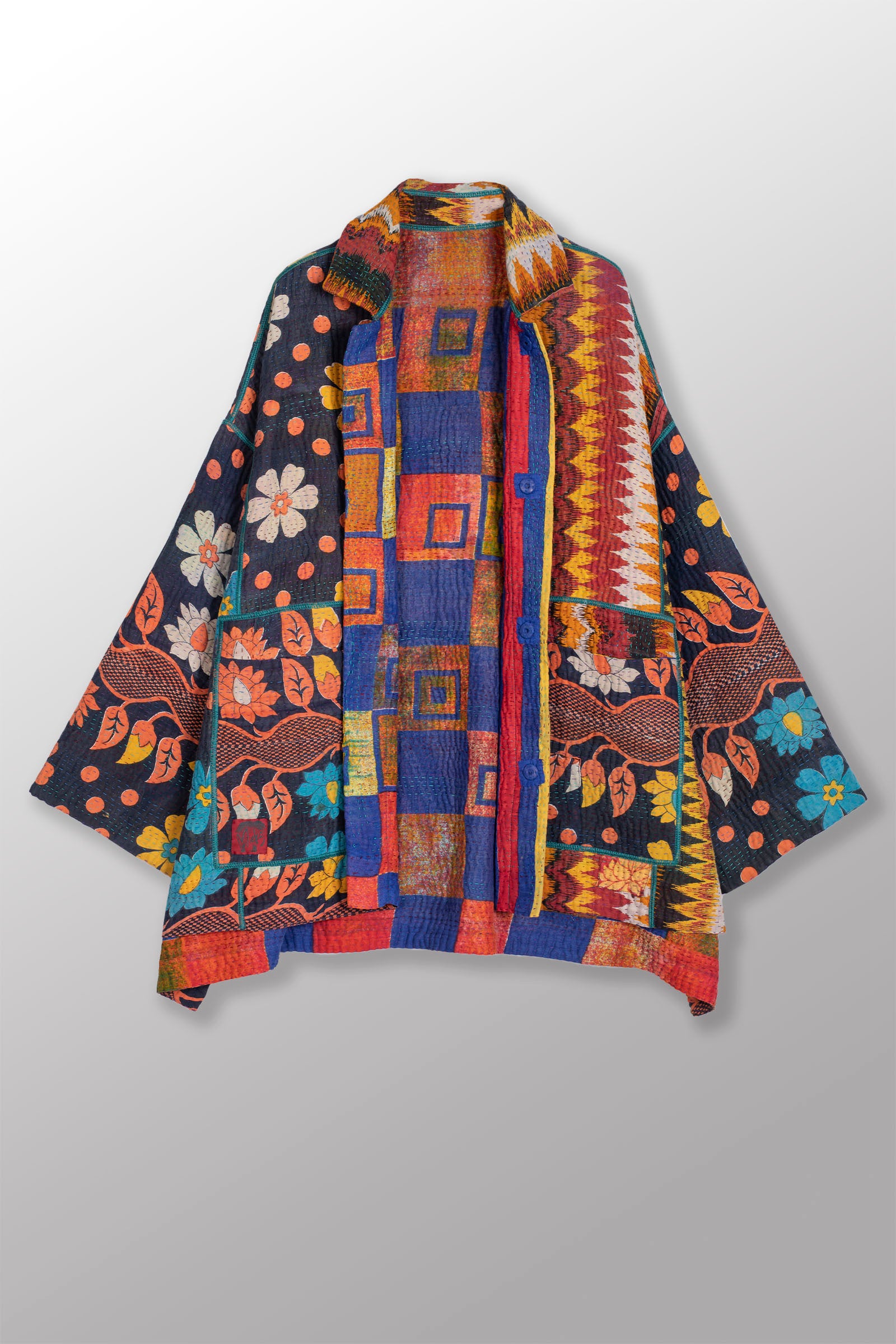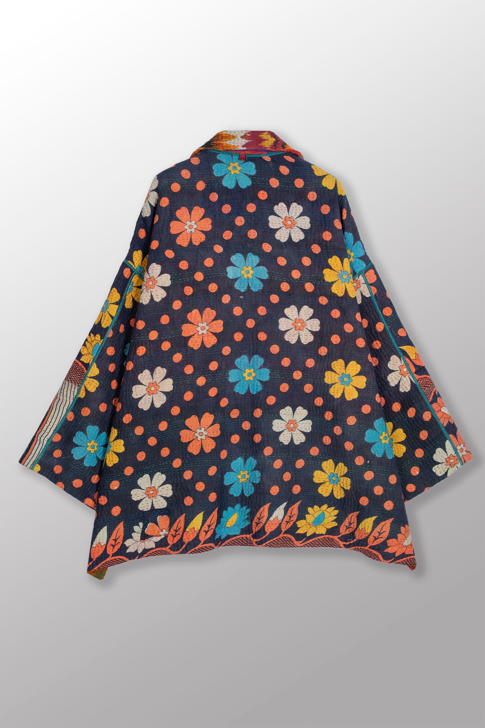 VINTAGE COTTON KANTHA OVERSIZED MINI COAT - cv4332-0035a -