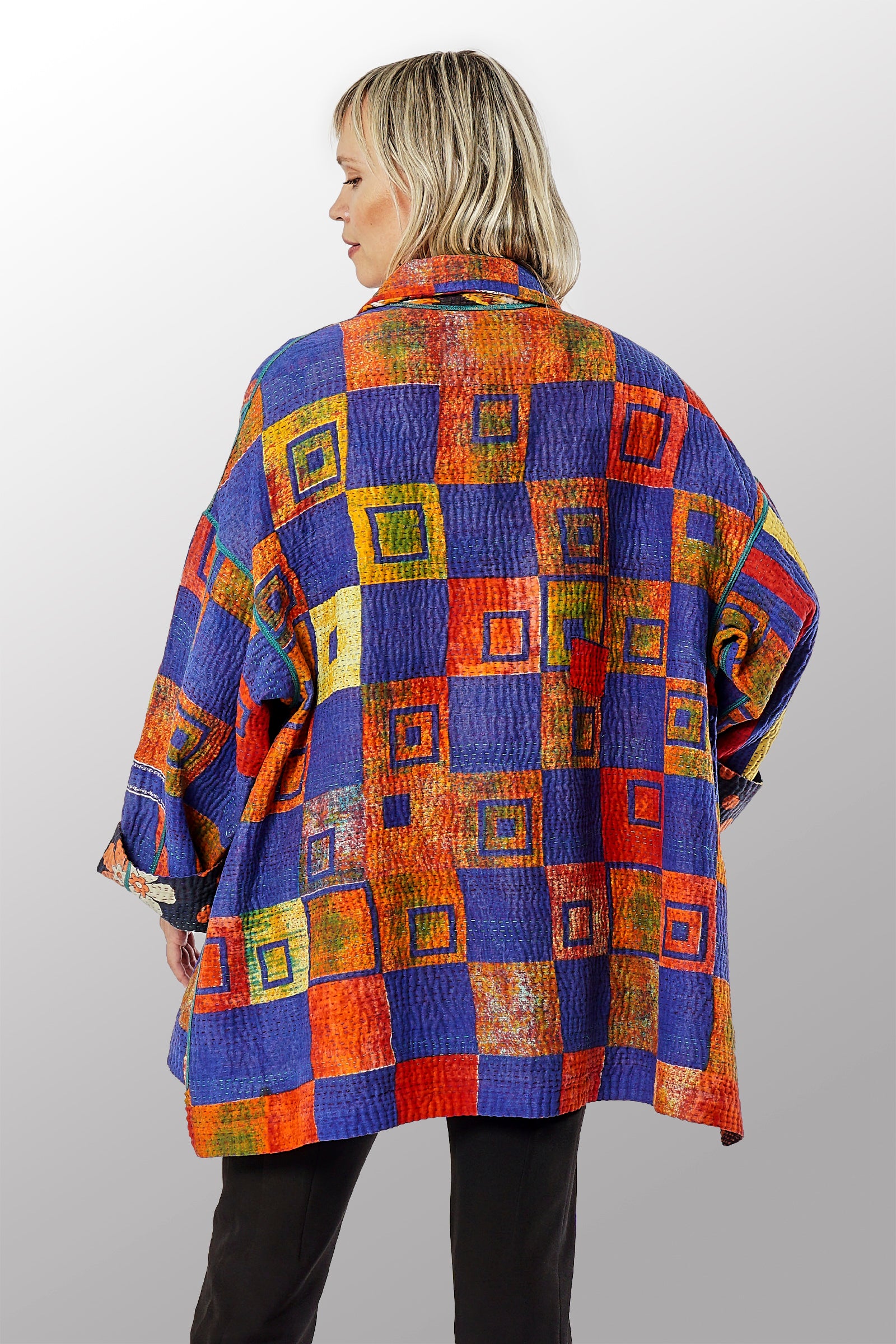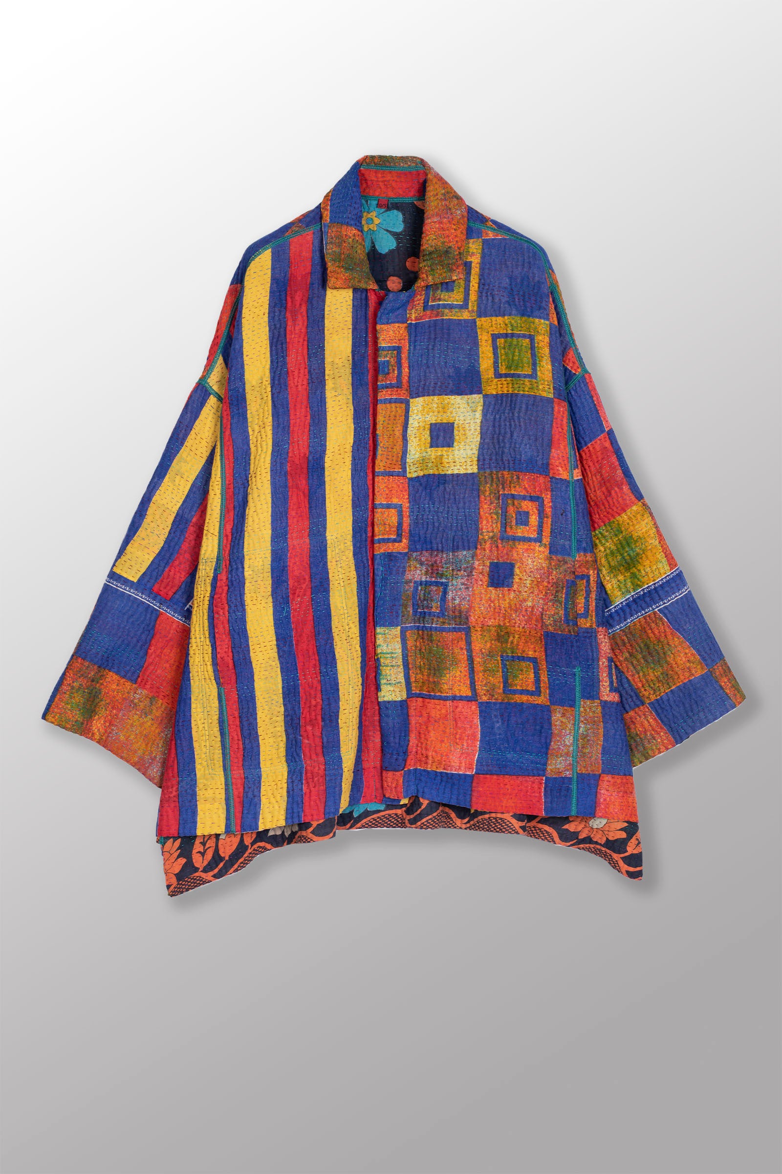 4 Layer Vintage Saris with Hand Stitches on Entire Garment - Reversible